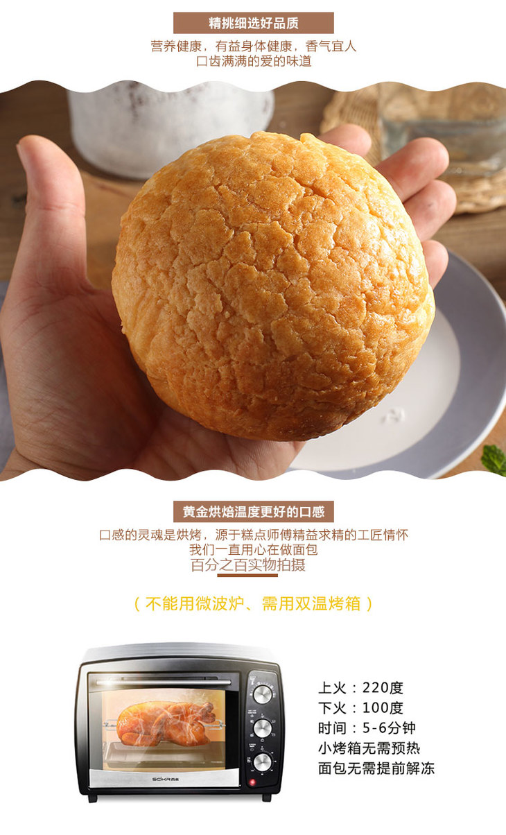 达玲 9cm菠萝包 6个/包 面包/牛角包/黑面包(可夹冰激凌/芝士)