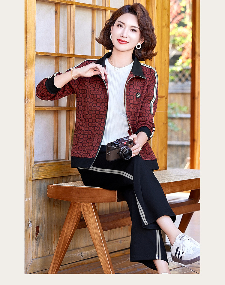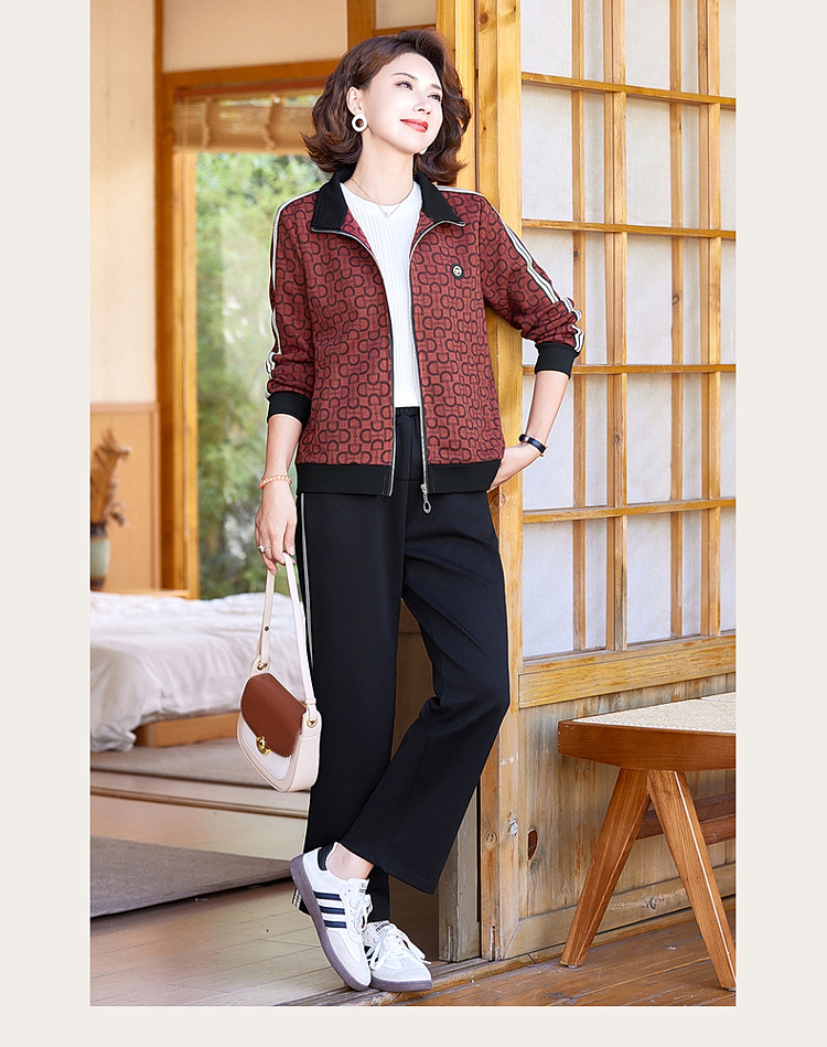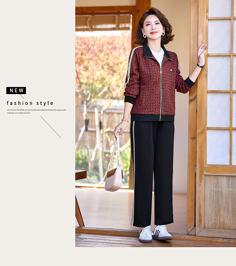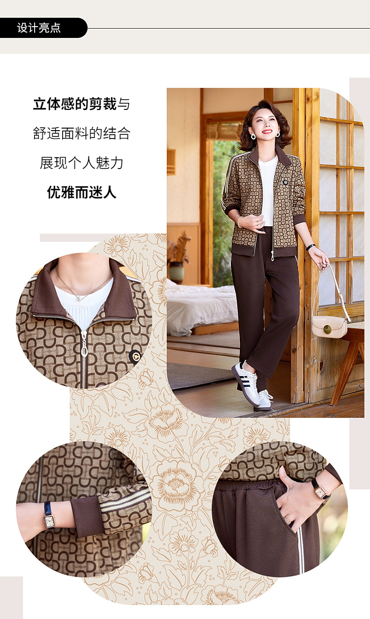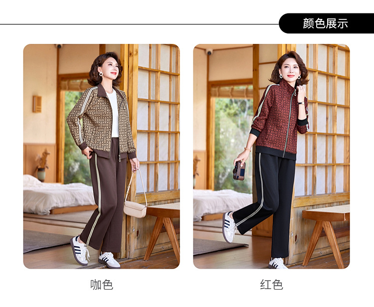 MC628中老年休闲运动套装女春秋50岁女人穿搭洋气大码中年妈妈秋装穿搭