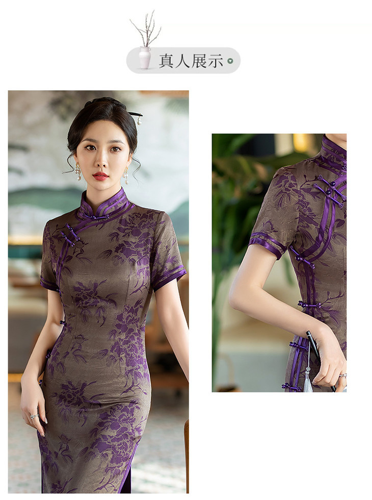 SYG-785新中式日常妈妈三分袖旗袍女春秋款复古2024年新款旗袍修身礼服