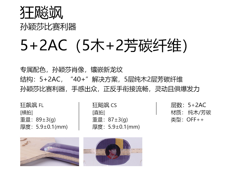 红双喜乒乓球拍底板狂飚飒-孙颖莎狂飙飒碳素兵乓球底板