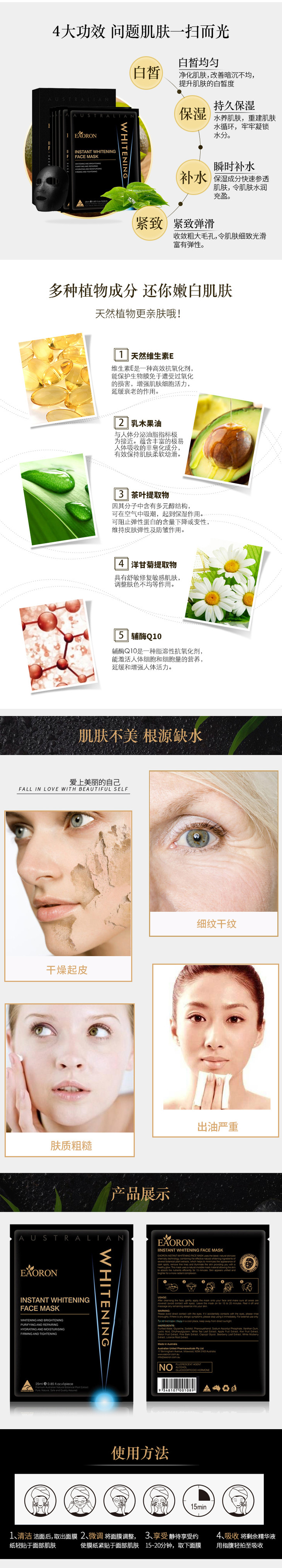 现货 Eaoron水光针胶原蛋白黑面膜5片