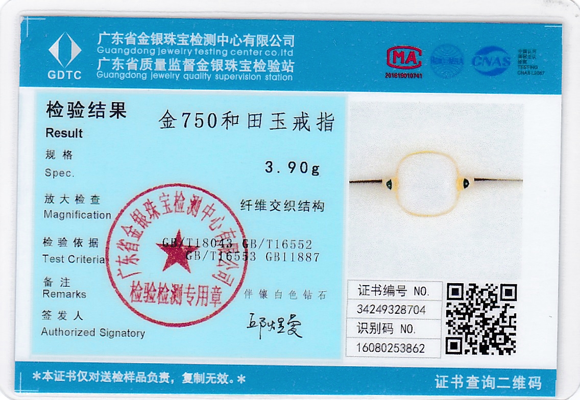 18K古法黄金和田玉俄料(白玉)方糖镶钻戒指/单面方形13*13mm/伴镶翡翠(圈口请备注留言)