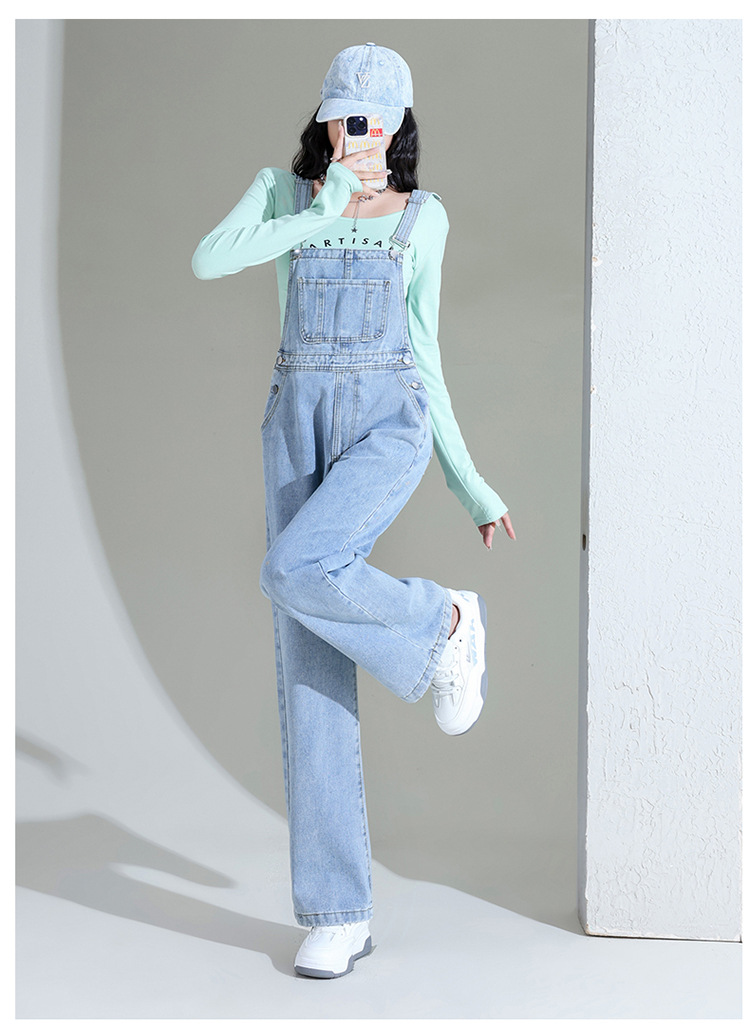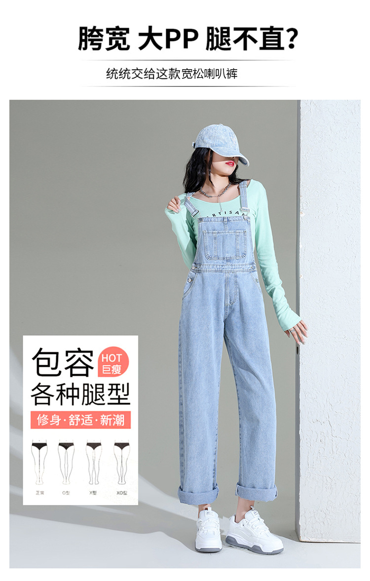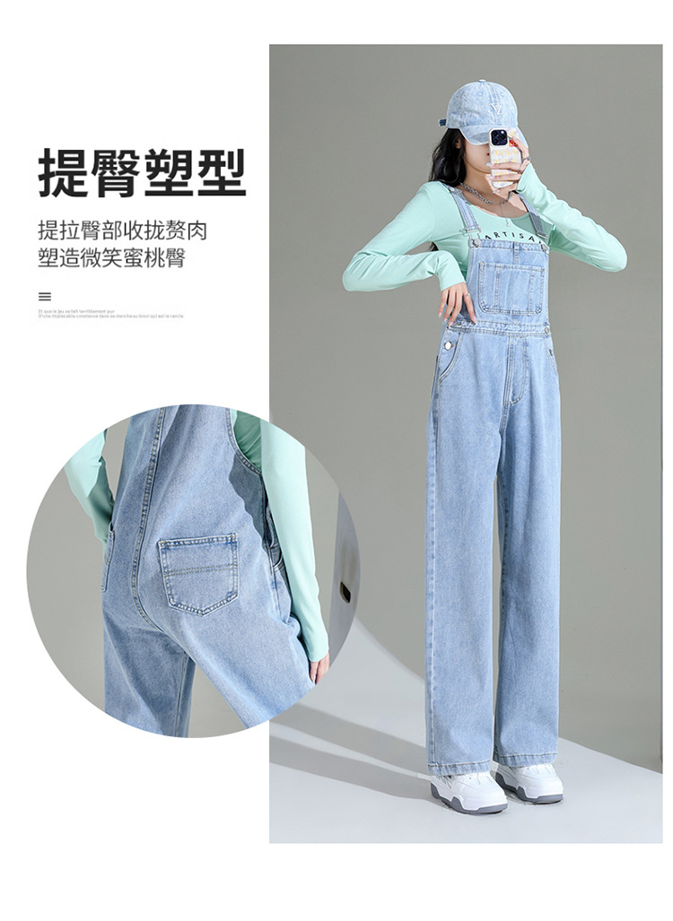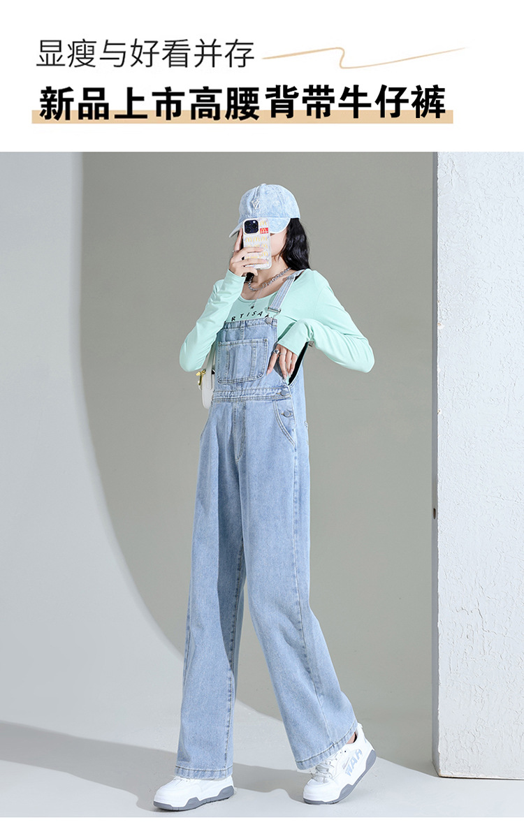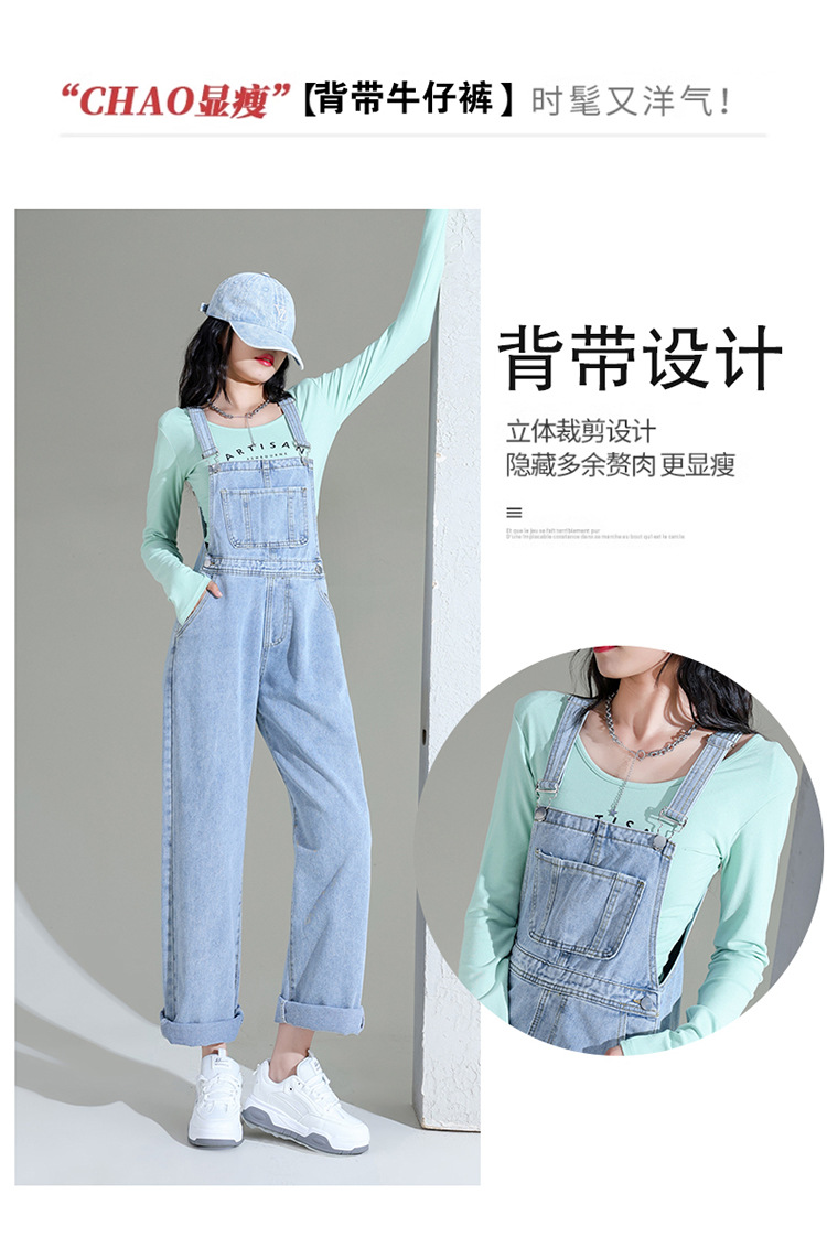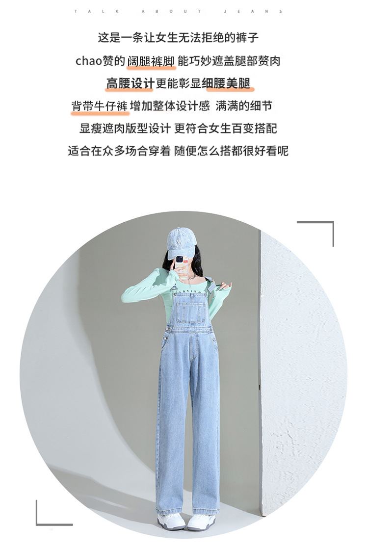 百媚生 春季牛仔阔腿背带裤小个子牛仔裤C719