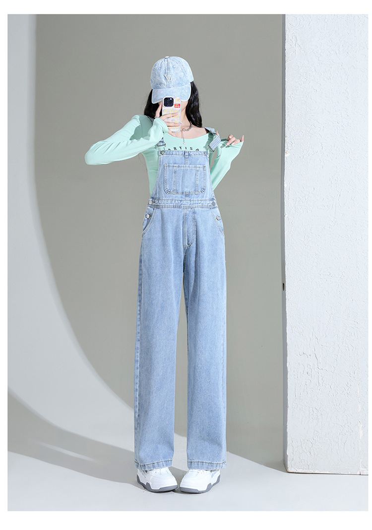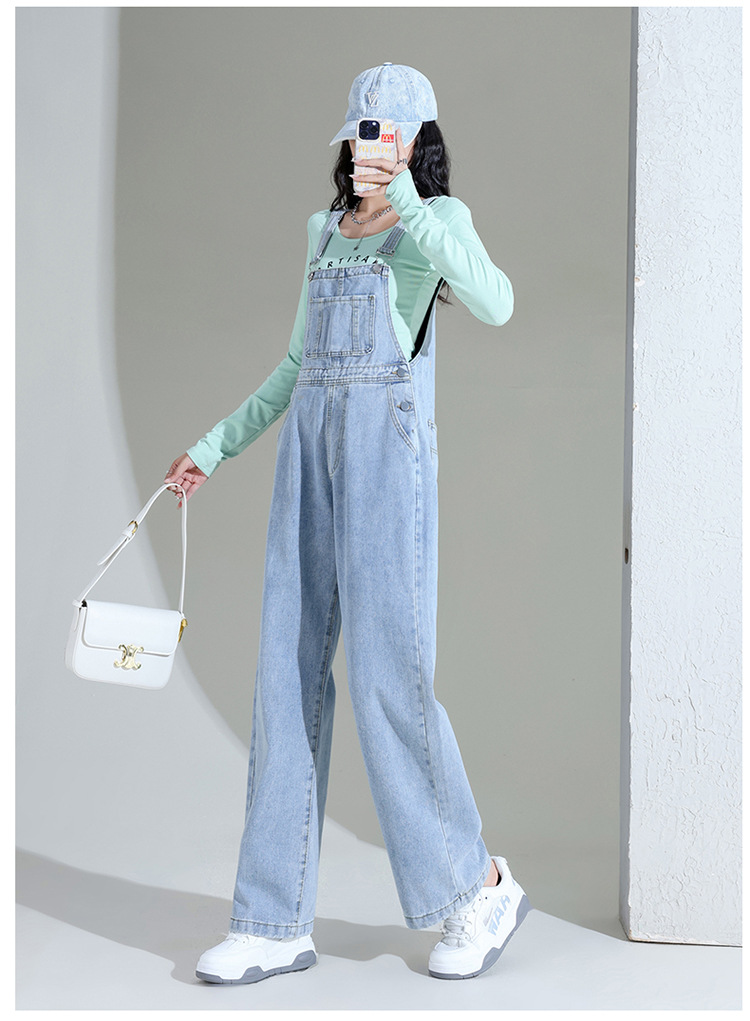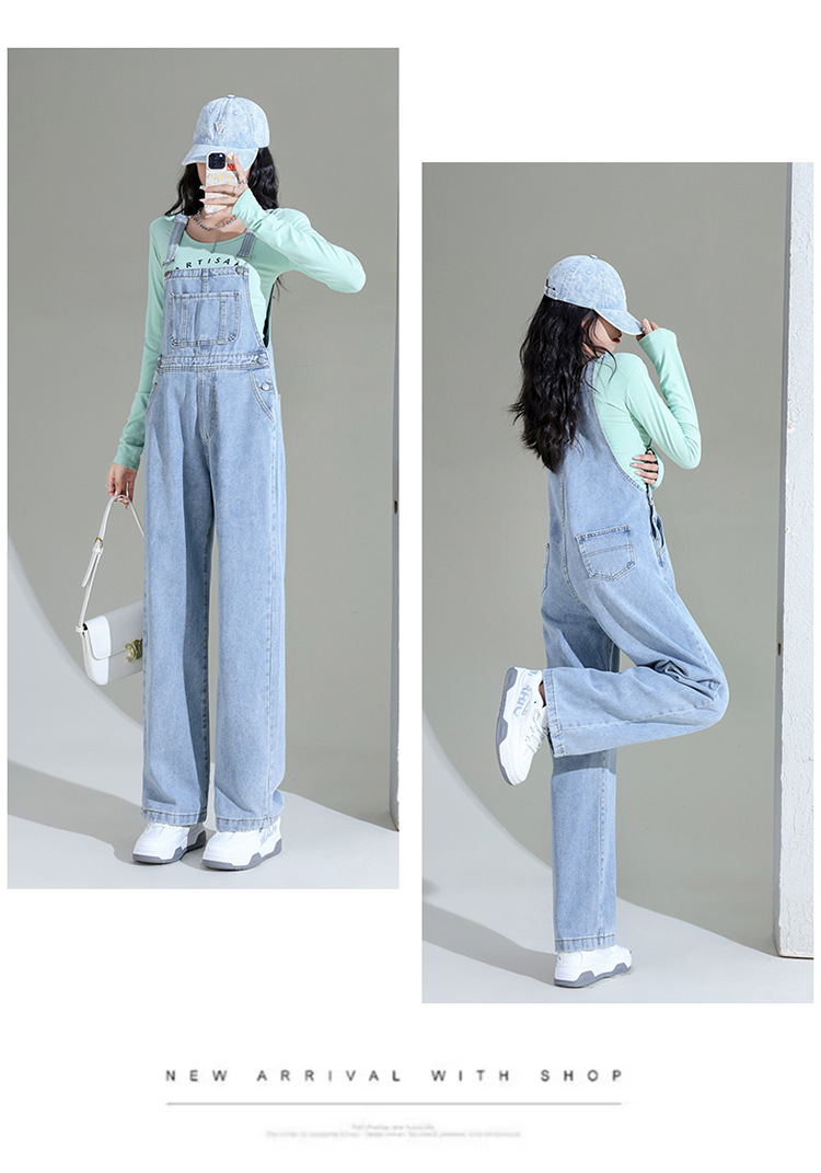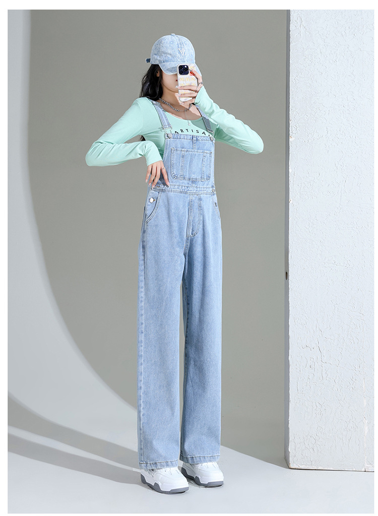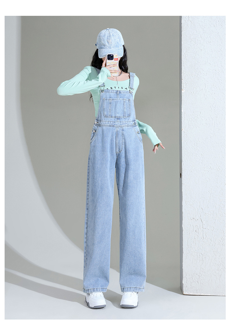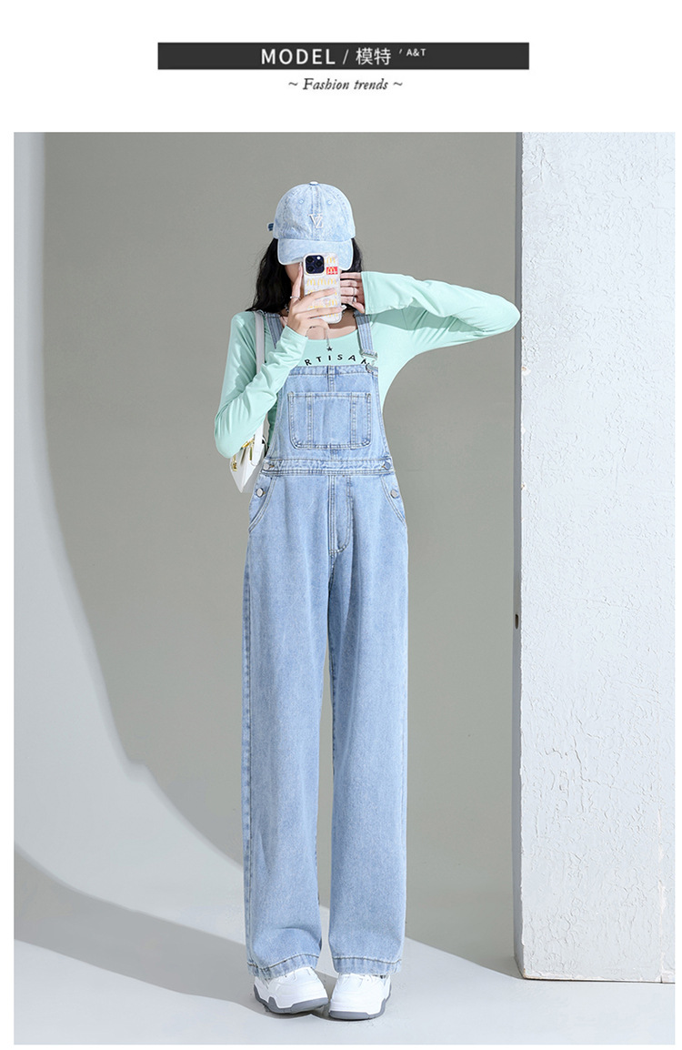 百媚生 春季牛仔阔腿背带裤小个子牛仔裤C719