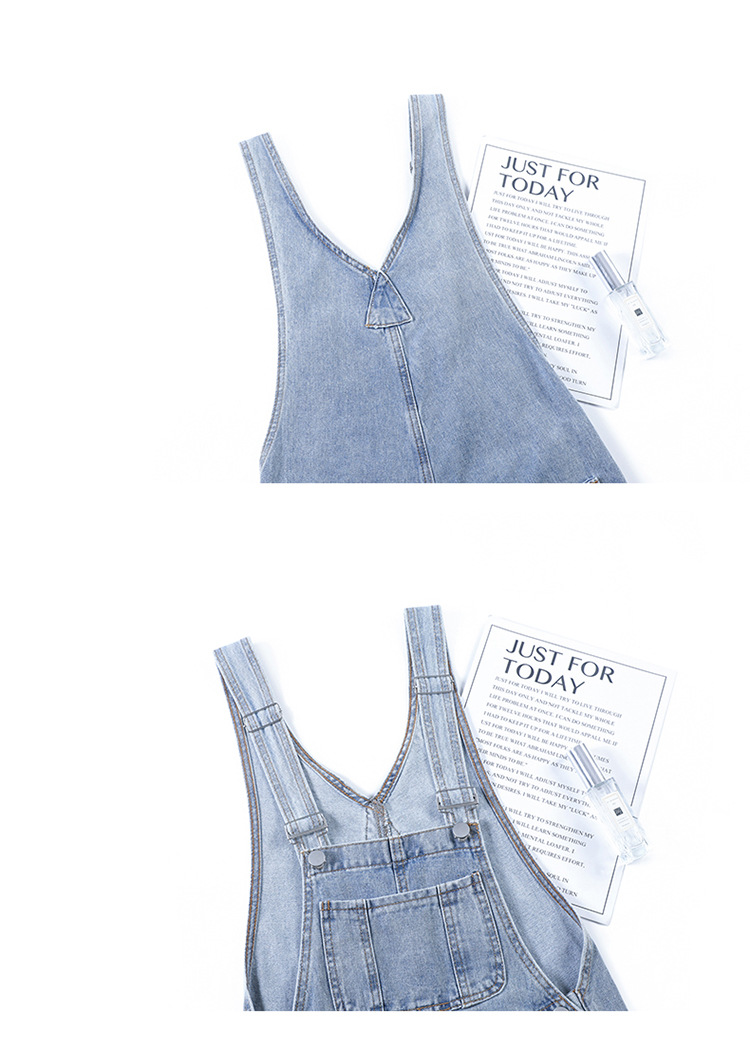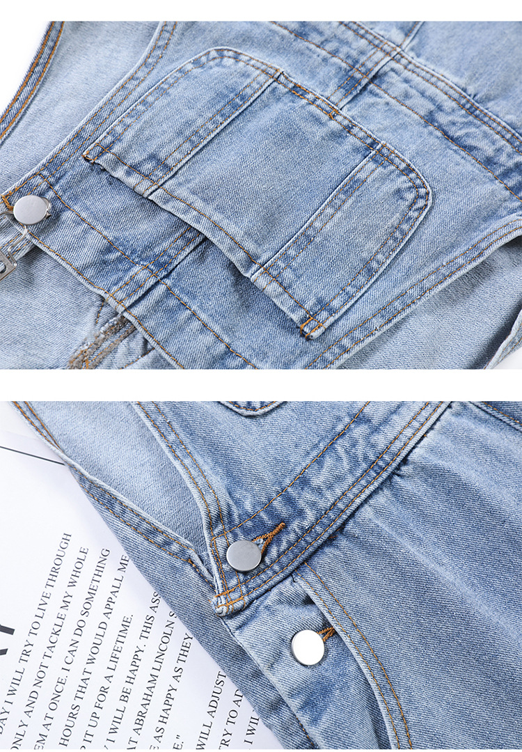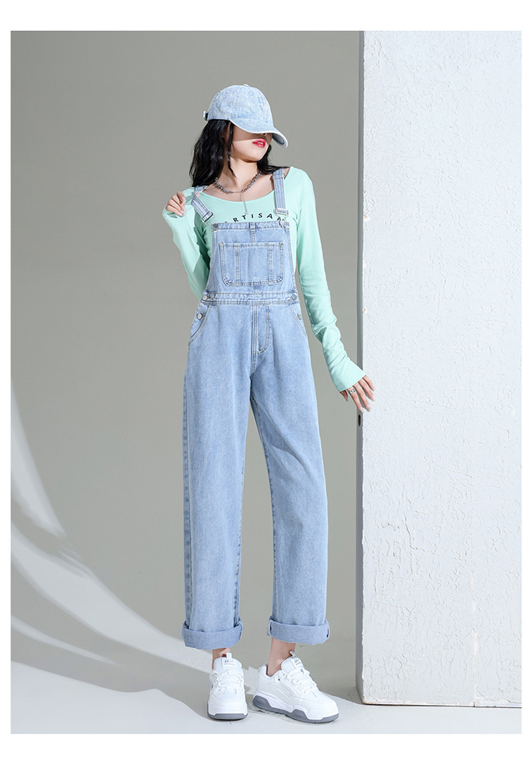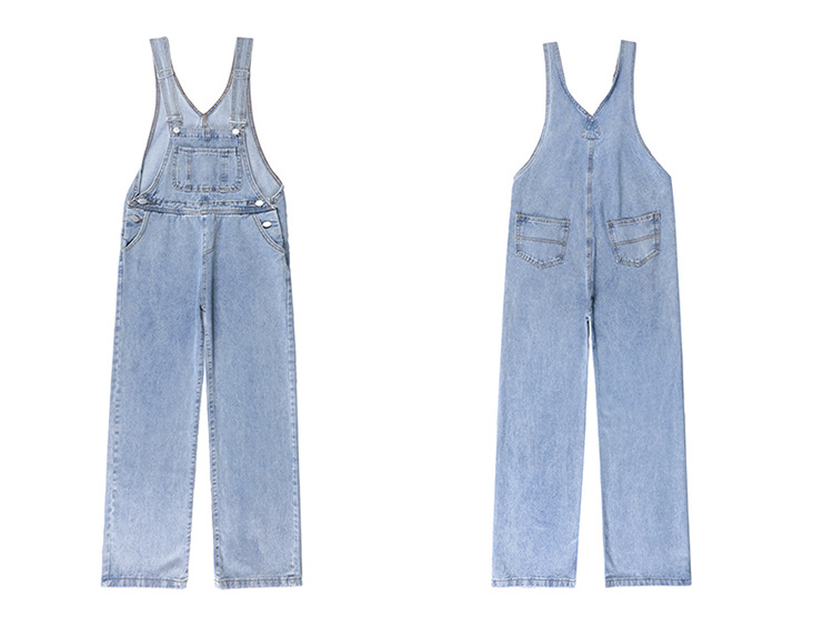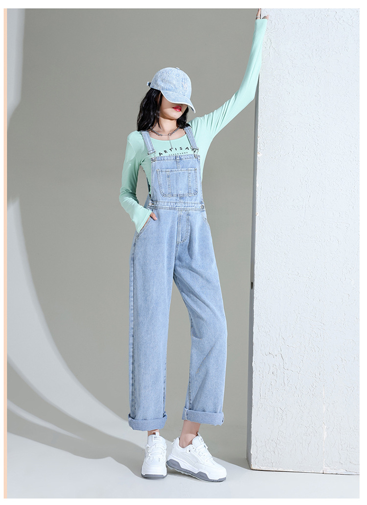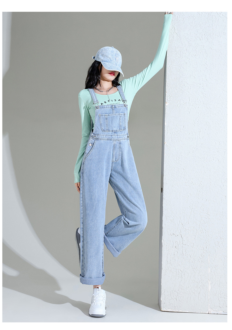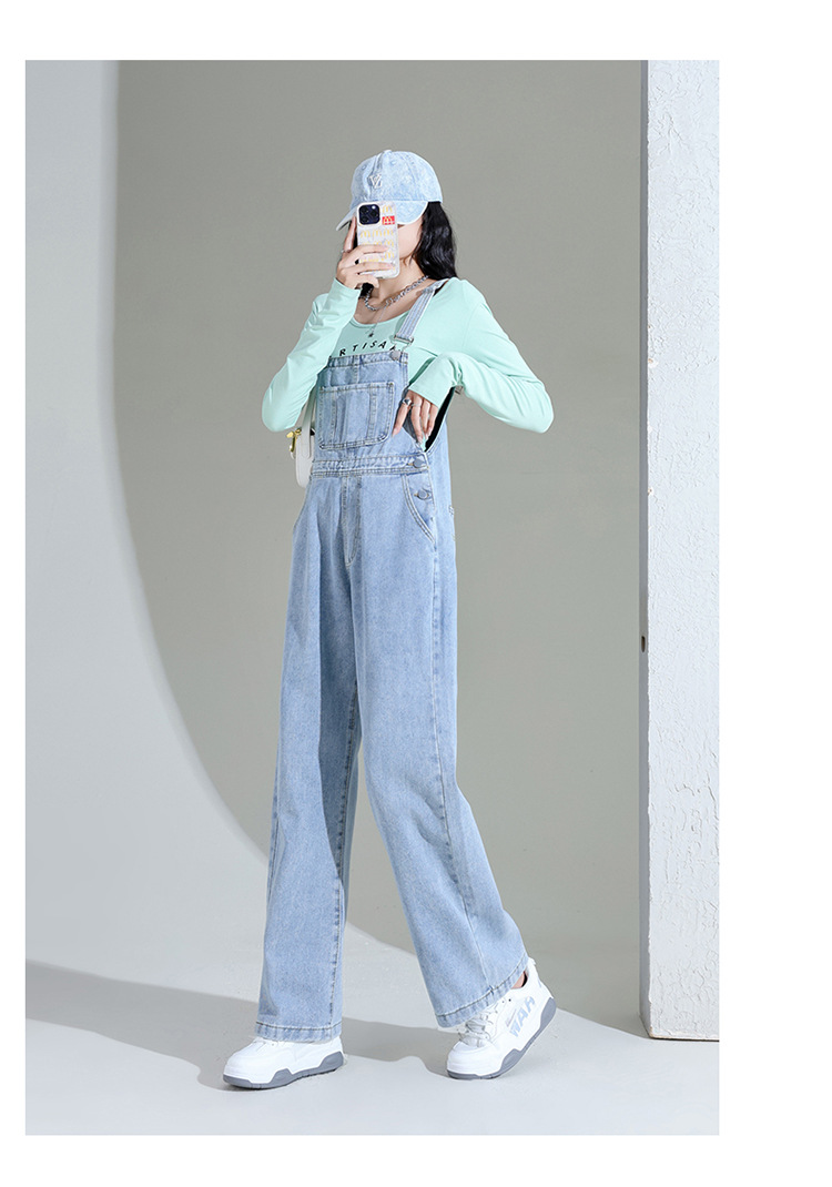 百媚生 春季牛仔阔腿背带裤小个子牛仔裤C719