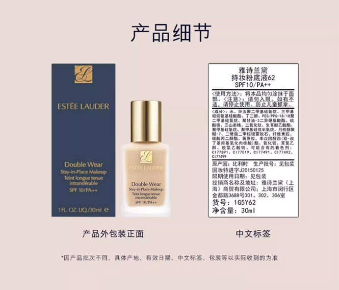 雅诗兰黛持妆粉底液17SPF10/PA++30ml{专柜渠道}