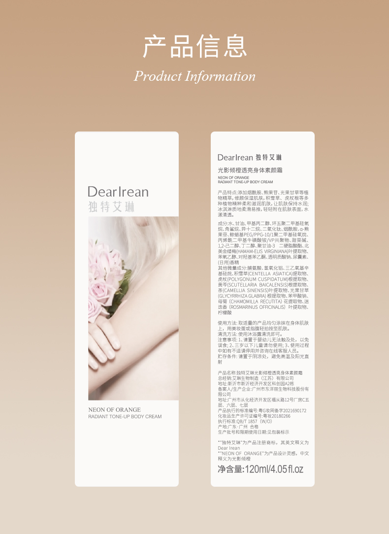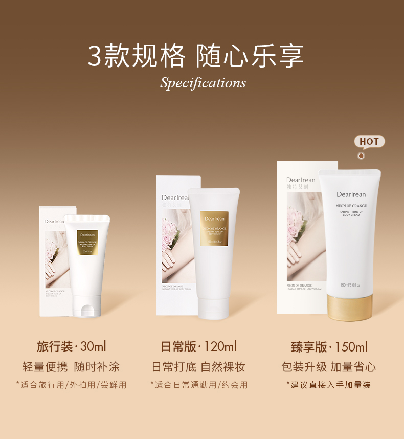 【热卖榜】独特艾琳(Dear lrean)身体素颜霜自然提亮滋润保湿防水汗遮瑕不假白不粘腻120ml