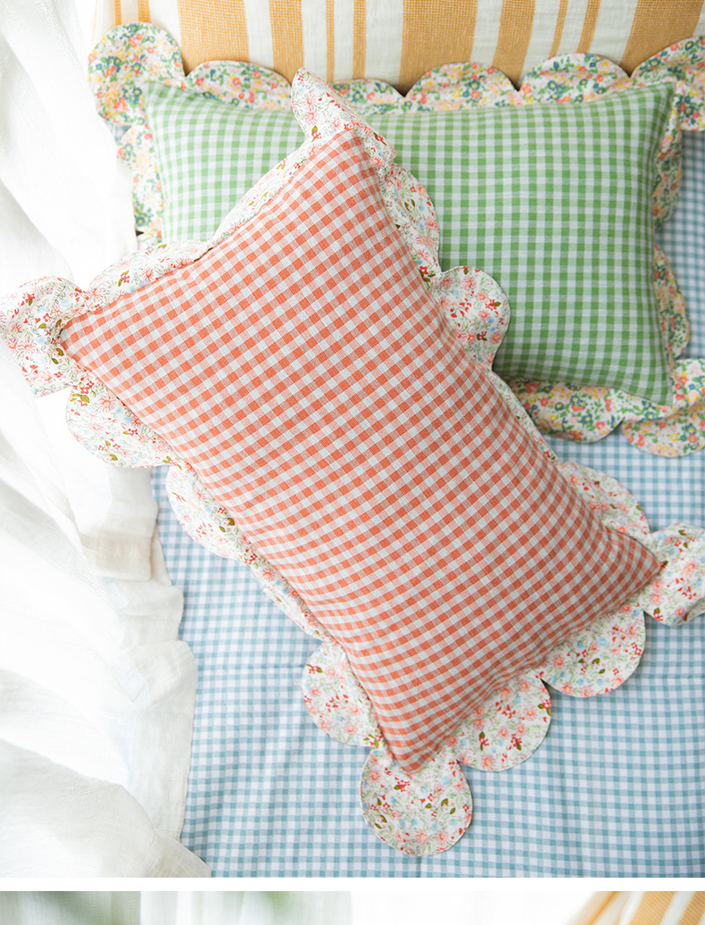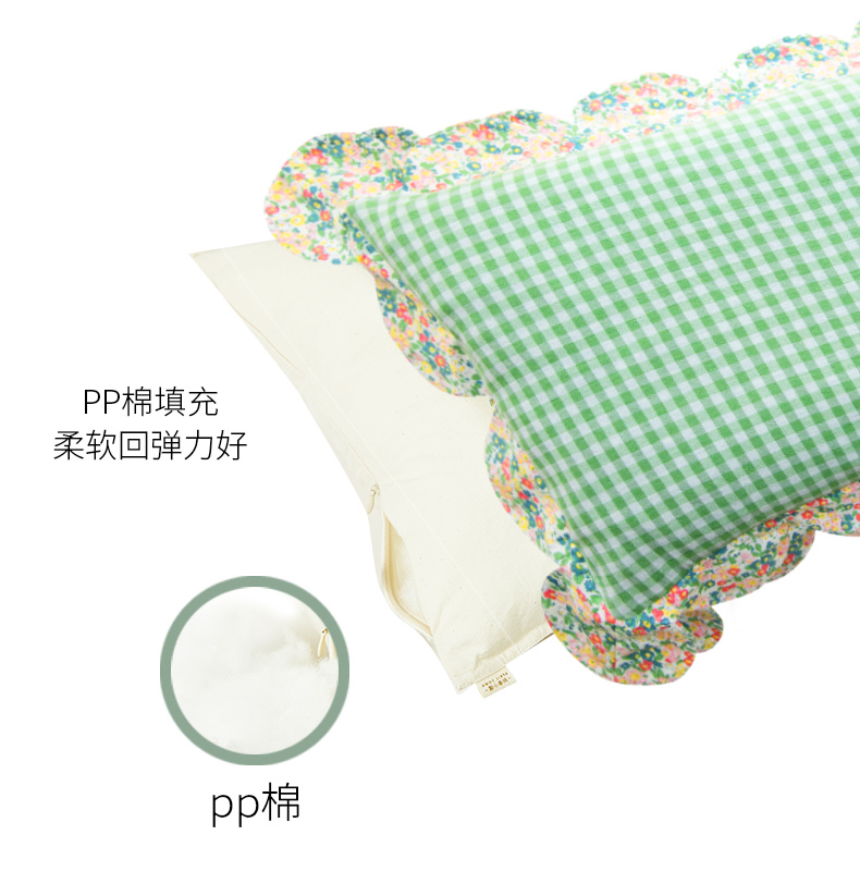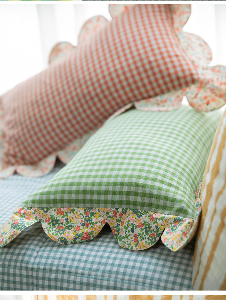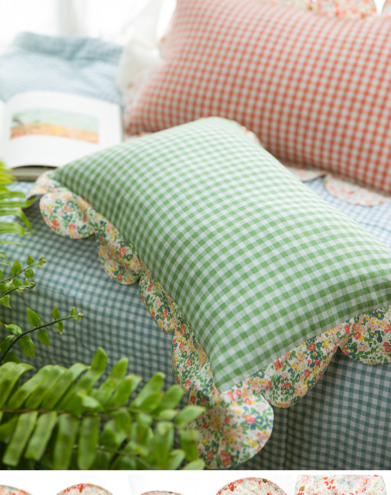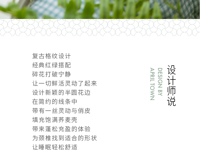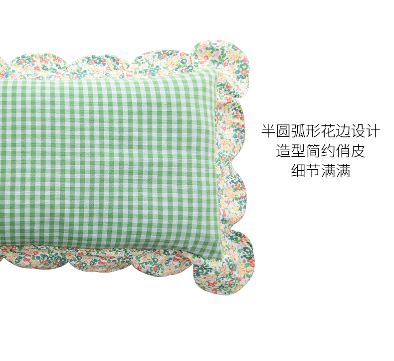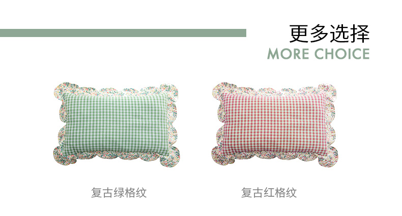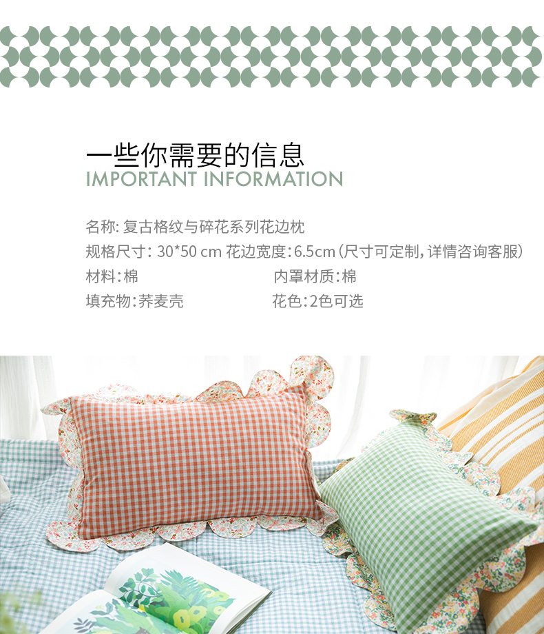 复古格纹与碎花系列花边枕全荞麦壳成人护颈枕