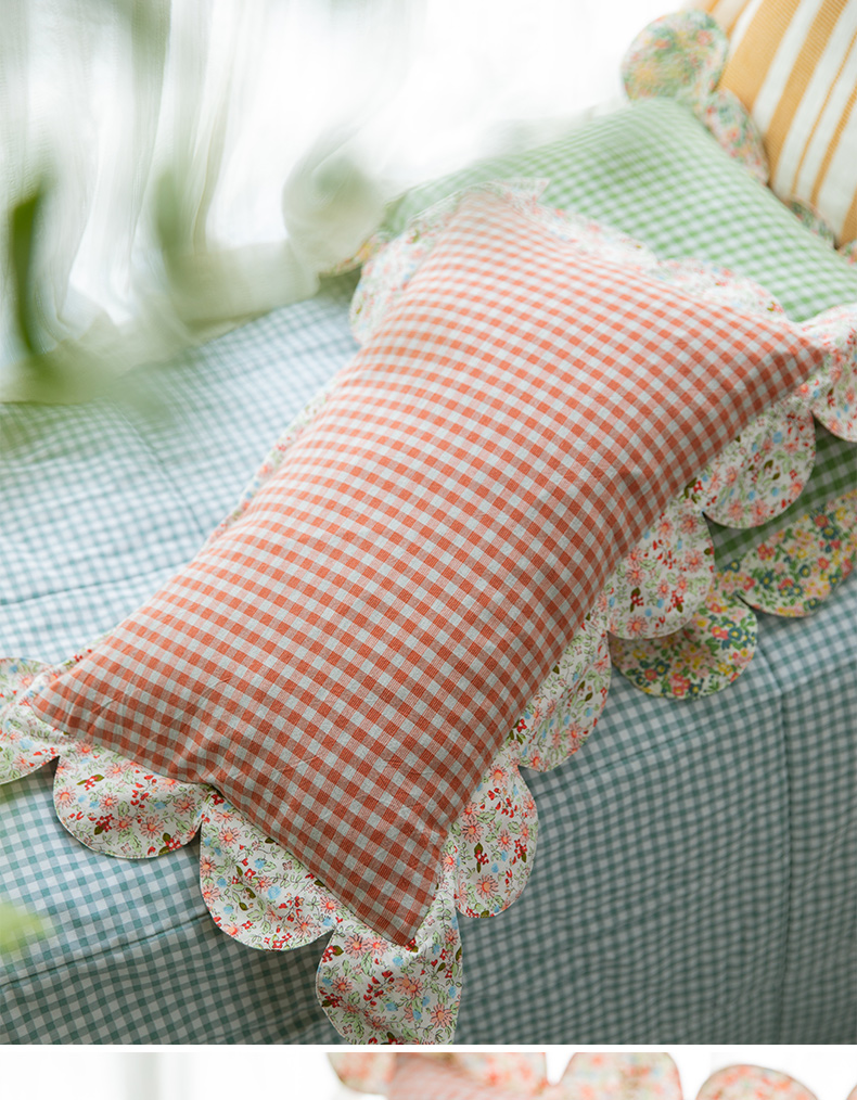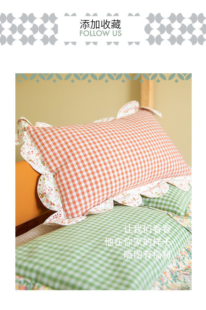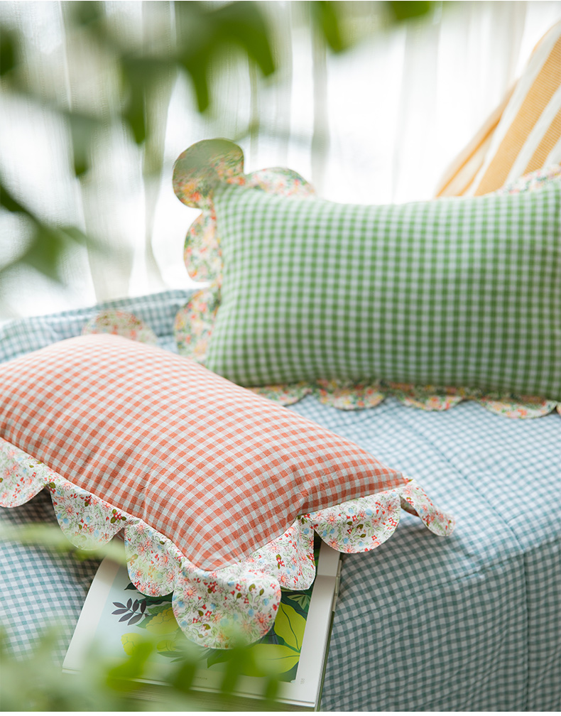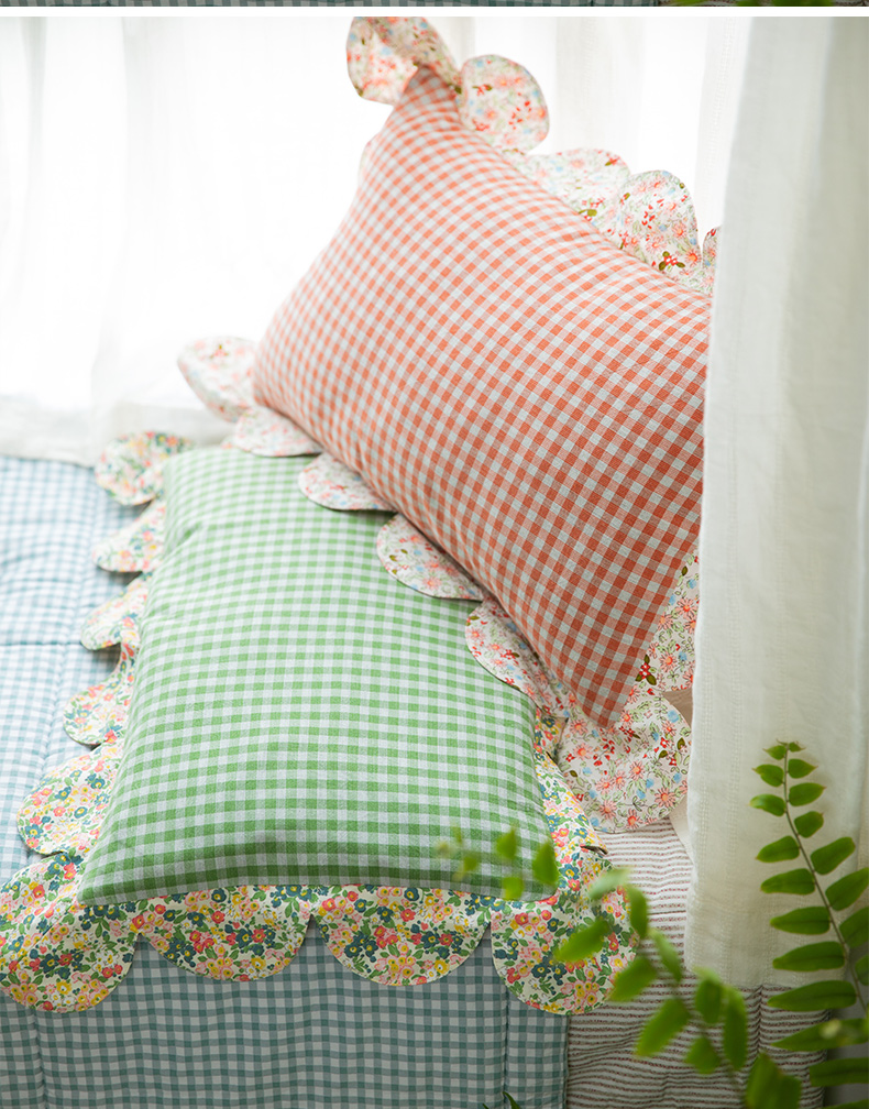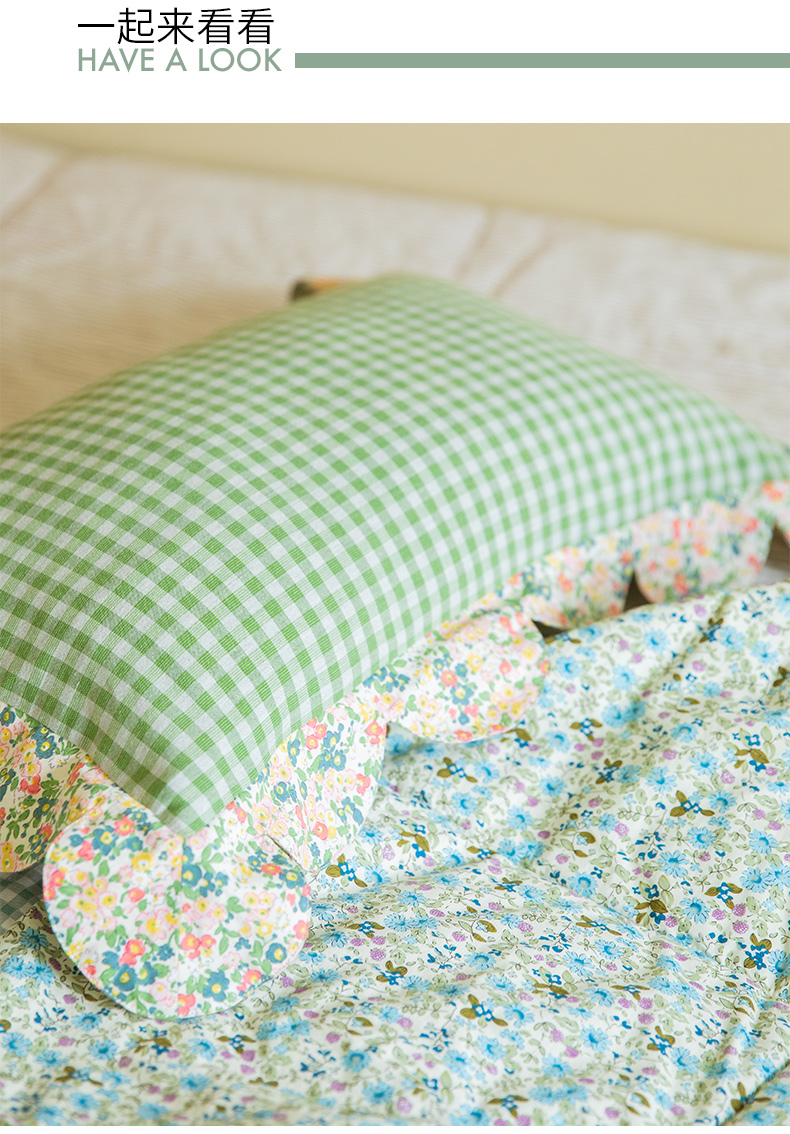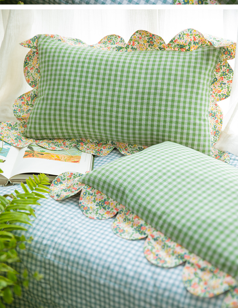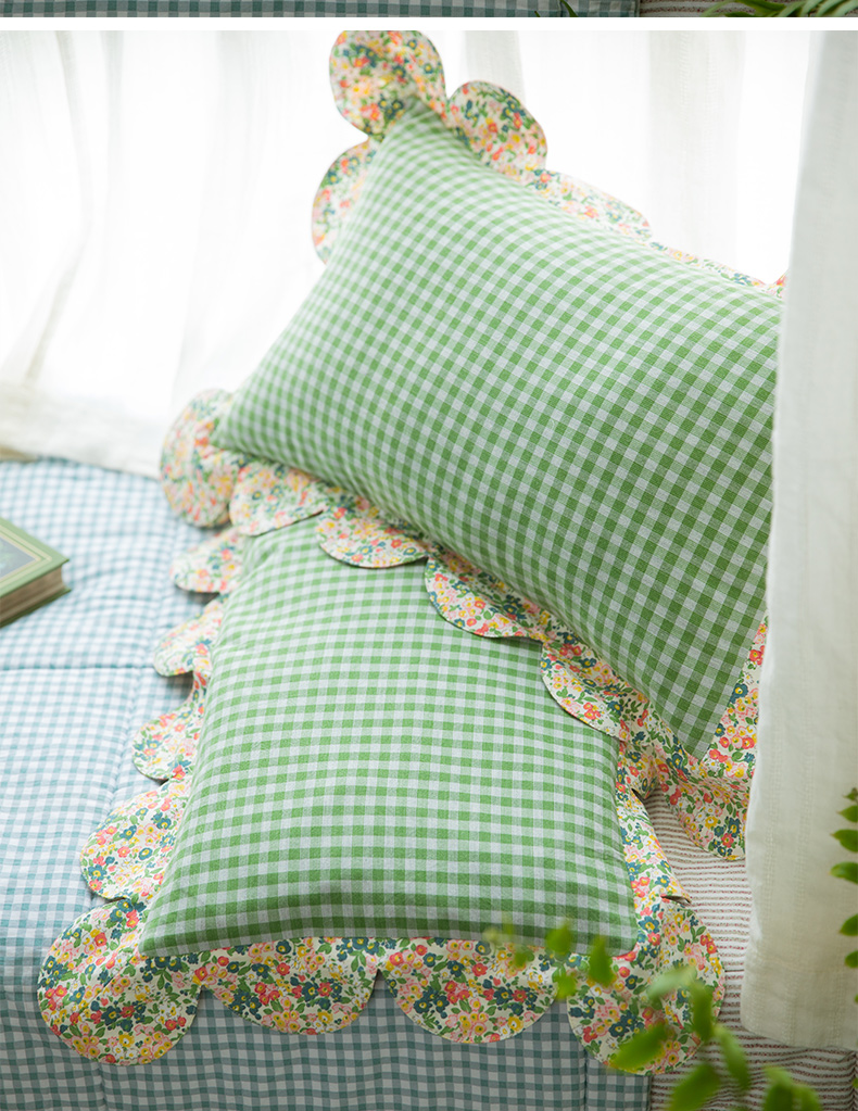 复古格纹与碎花系列花边枕全荞麦壳成人护颈枕