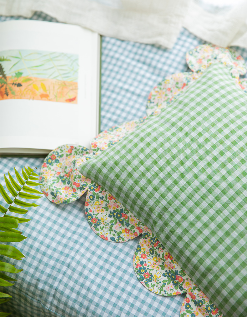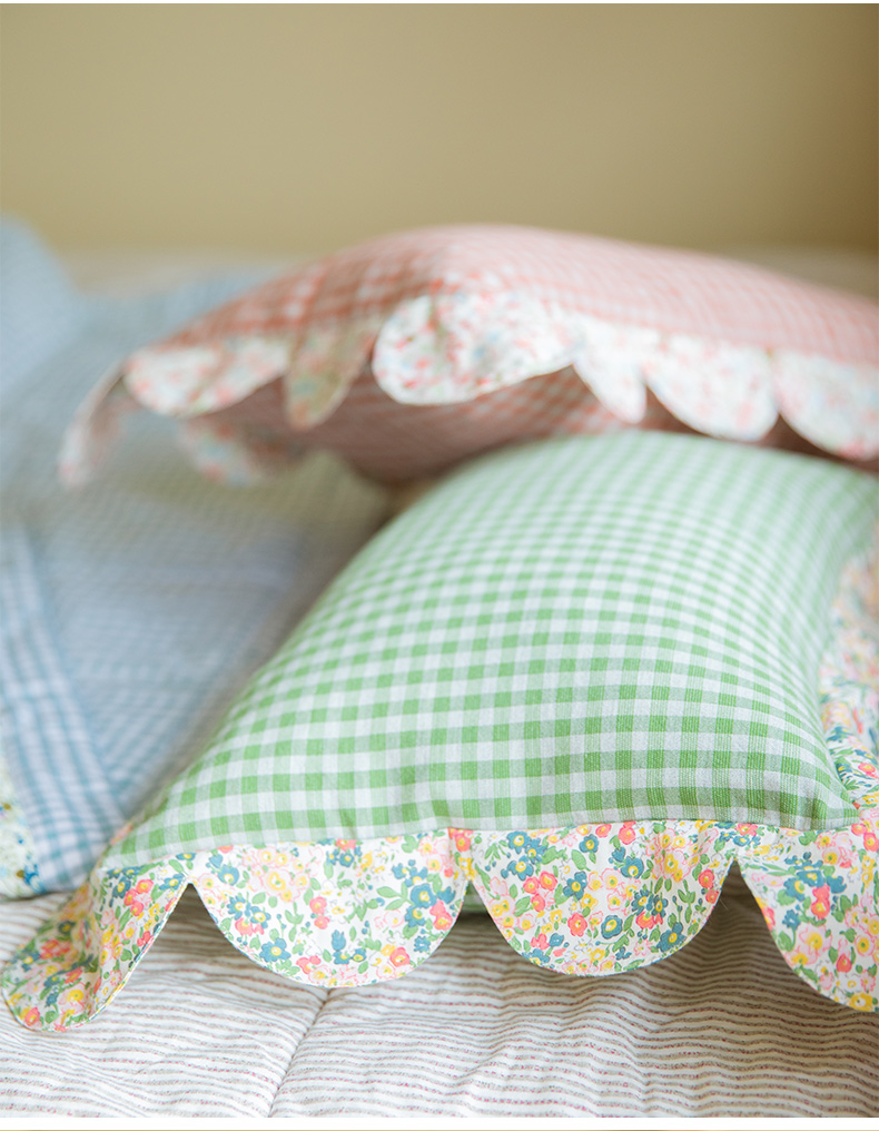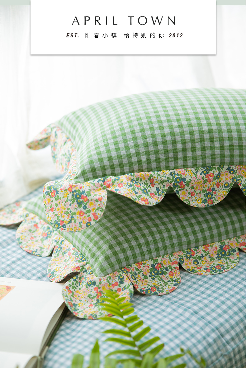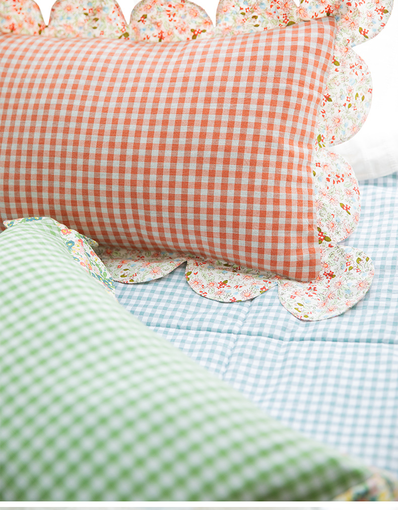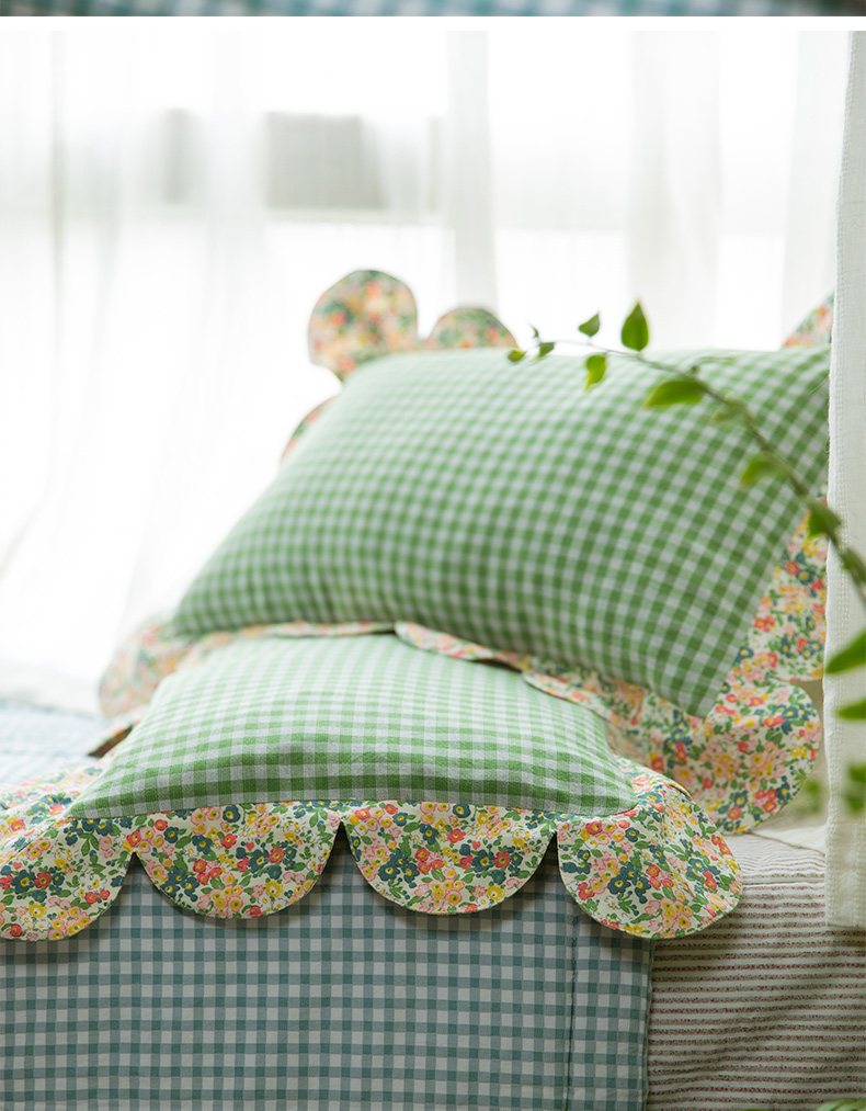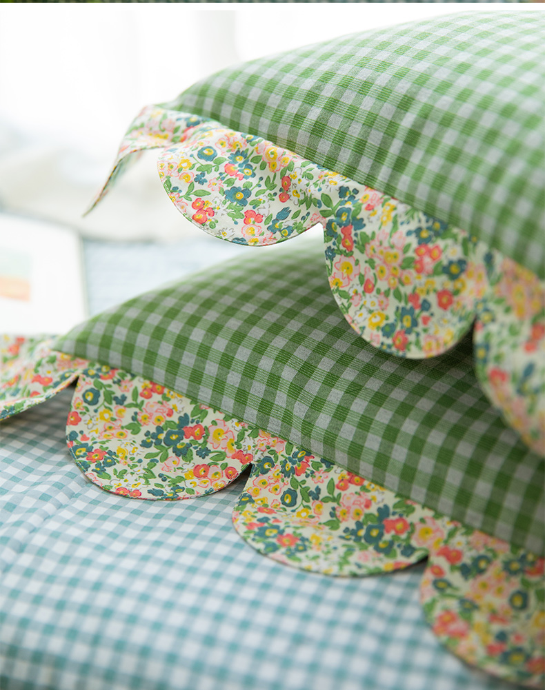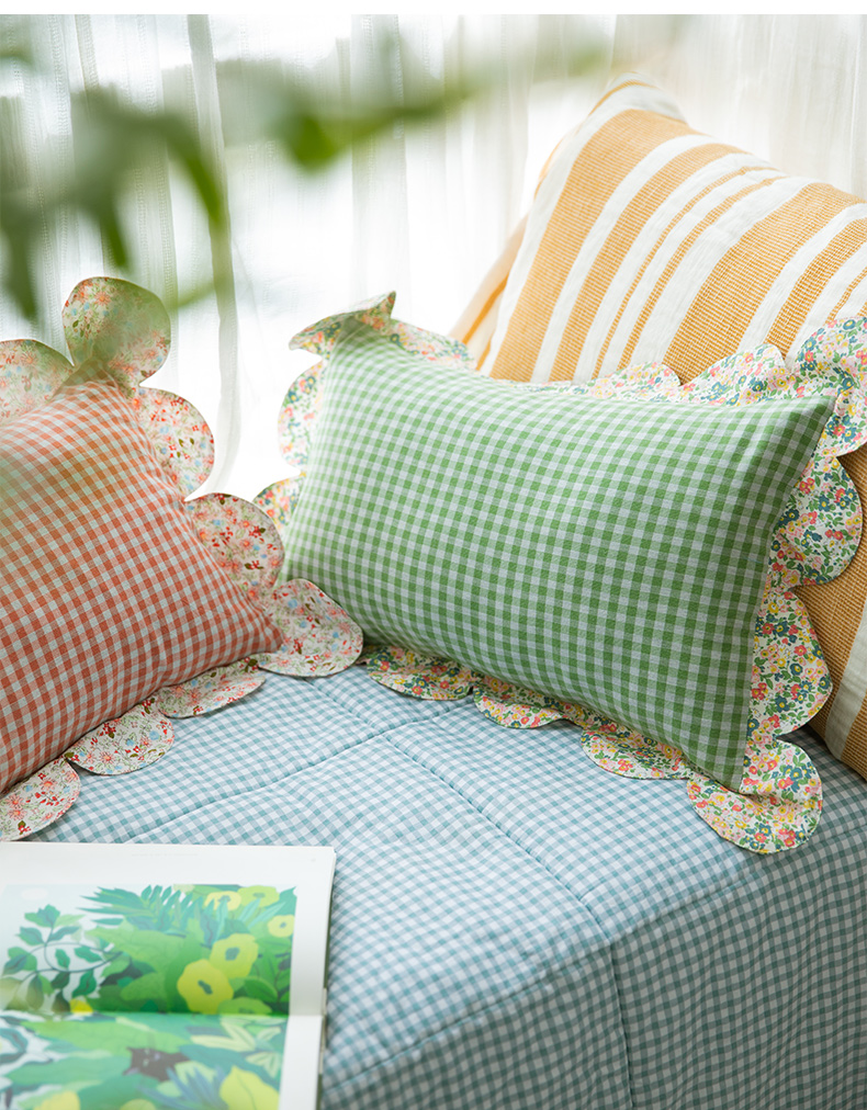 复古格纹与碎花系列花边枕全荞麦壳成人护颈枕