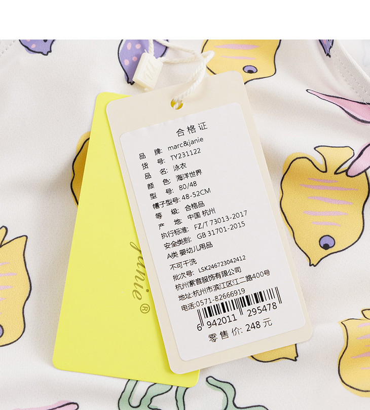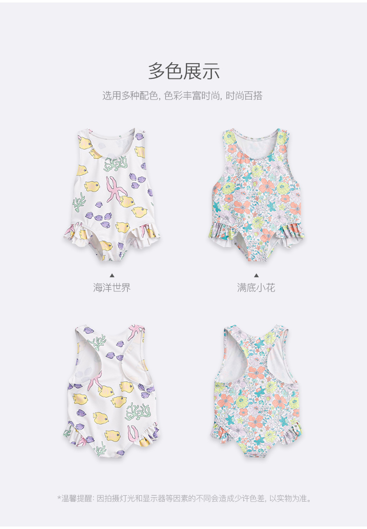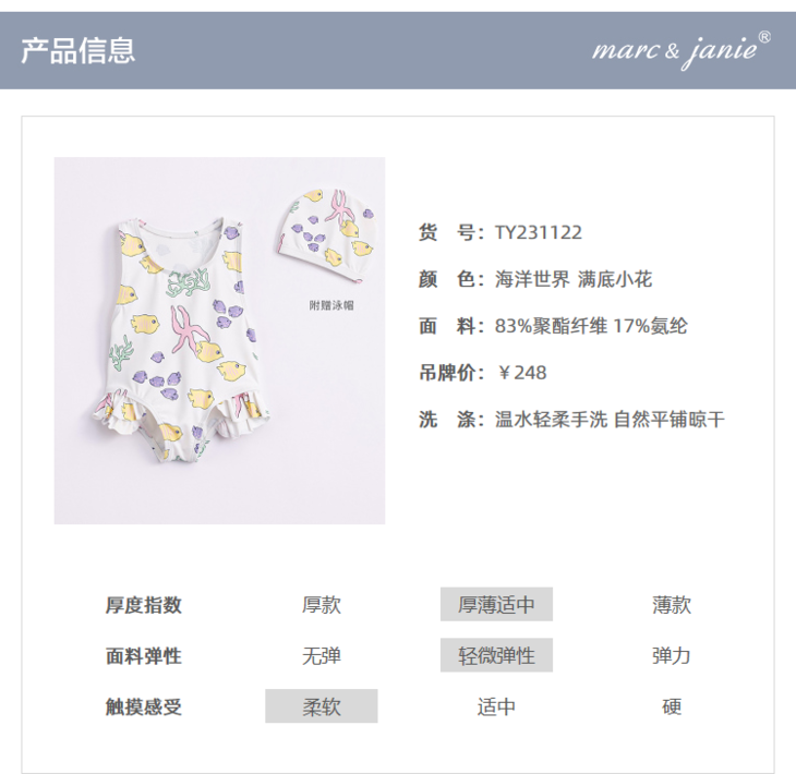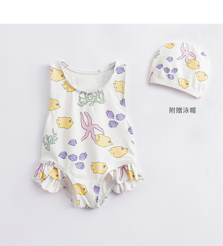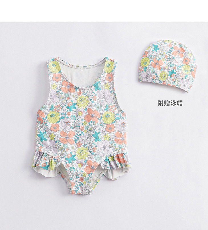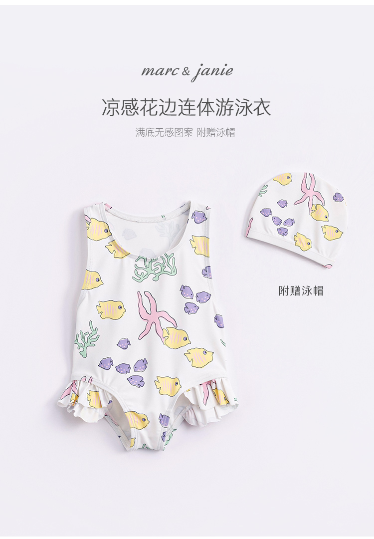 【凉感防晒】马克珍妮夏装新款女童弹力泳衣泳帽连体游泳衣231122