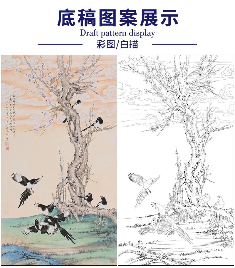 吕大卫花鸟工笔画白描底稿《梅雀图》临摹勾线高清打印稿A683
