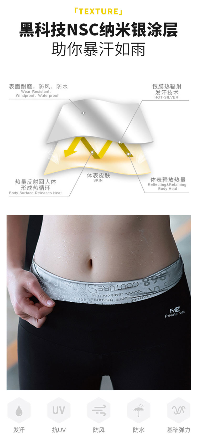 【买2立减10买3立减25】字母暴汗裤 塑腰裤女轻盈聚热跑步运动减脂加倍发汗健身