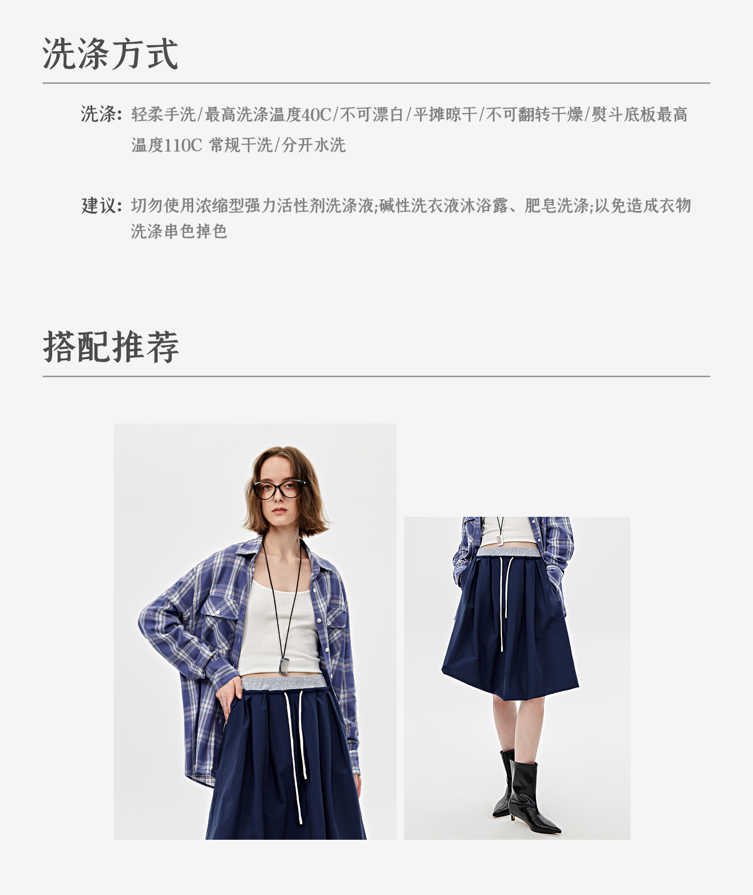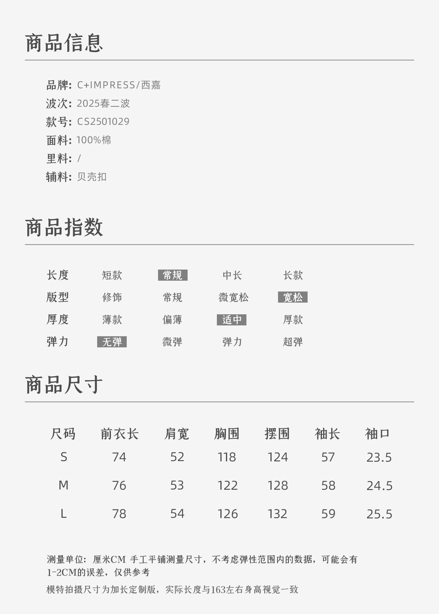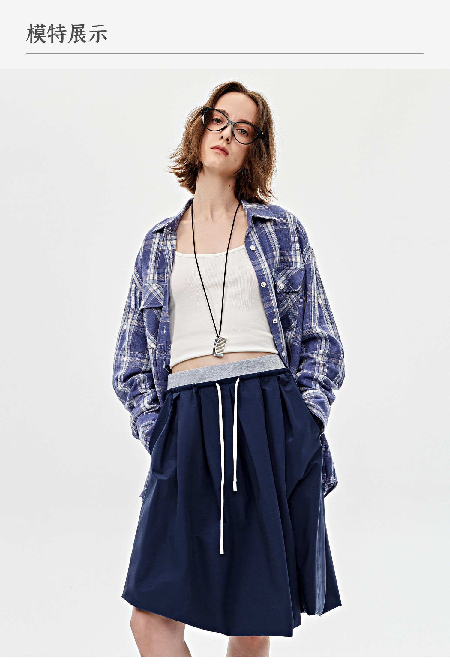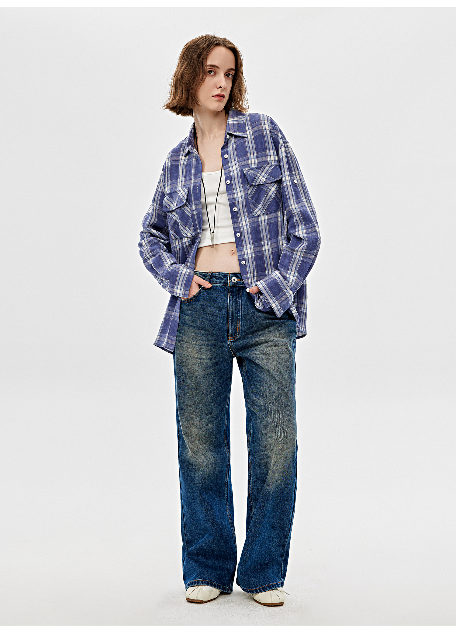 C+IMPRESS西嘉|全棉仿麻蓝色格子衬衫女2025春季新款长袖上衣衬衣CS2501029