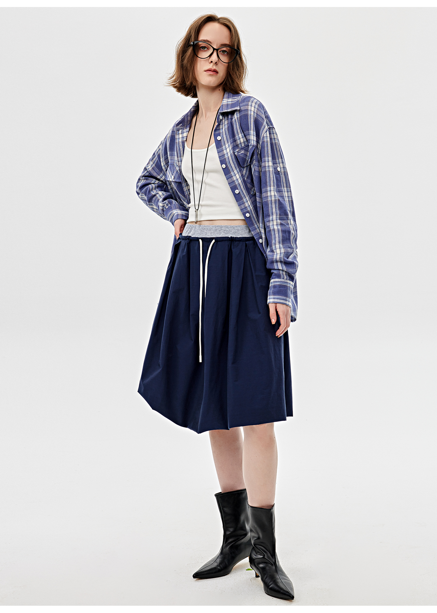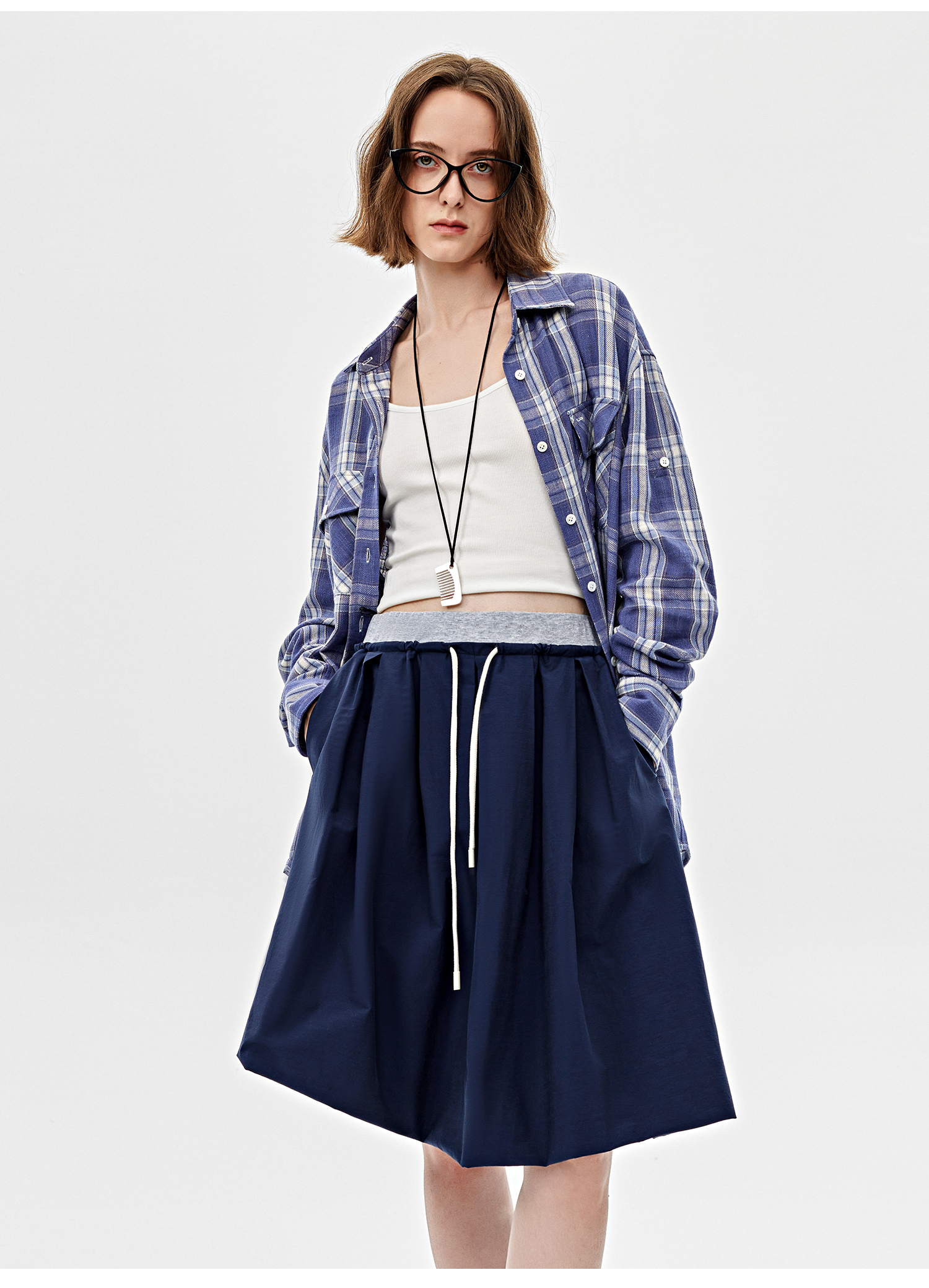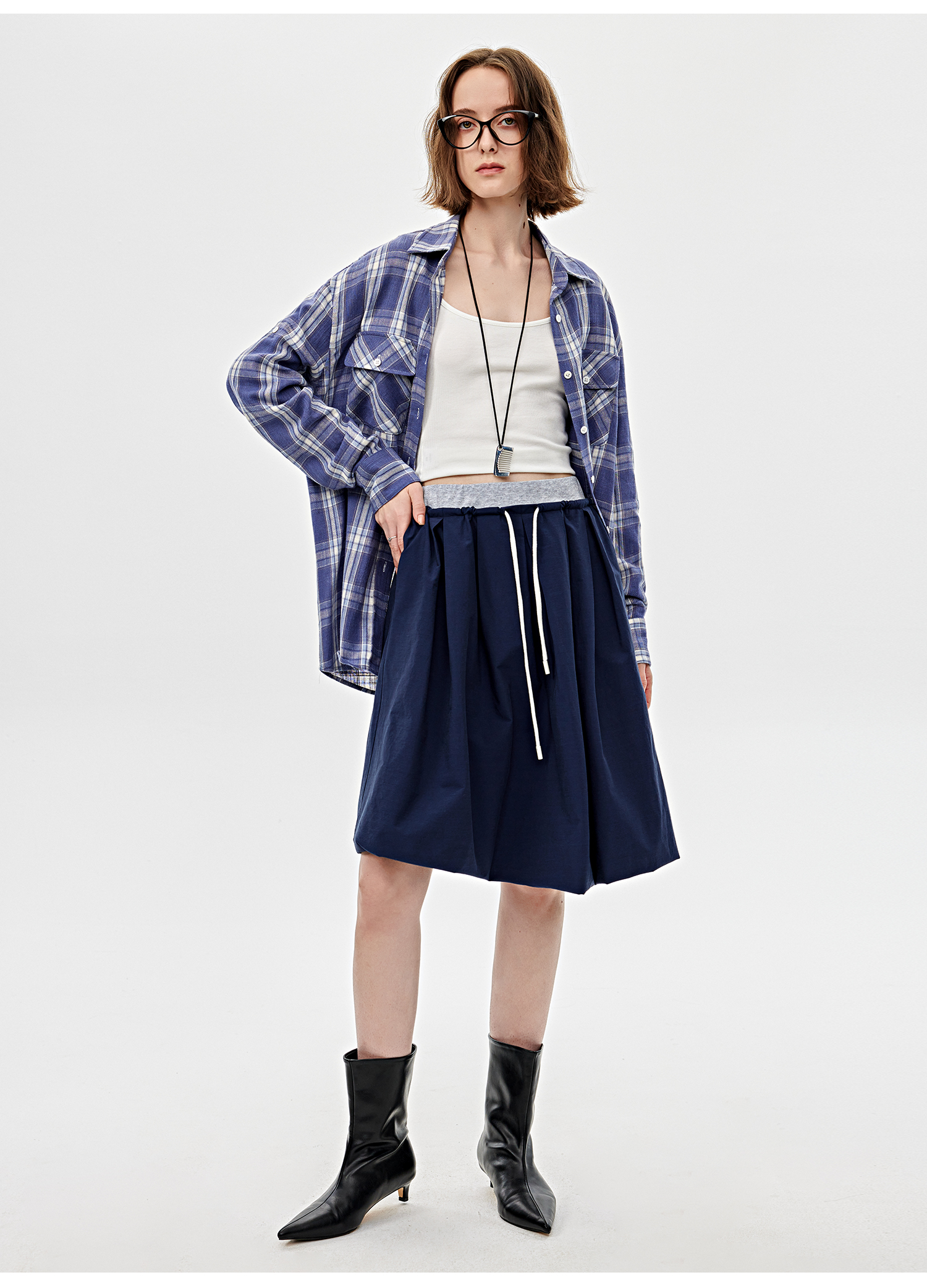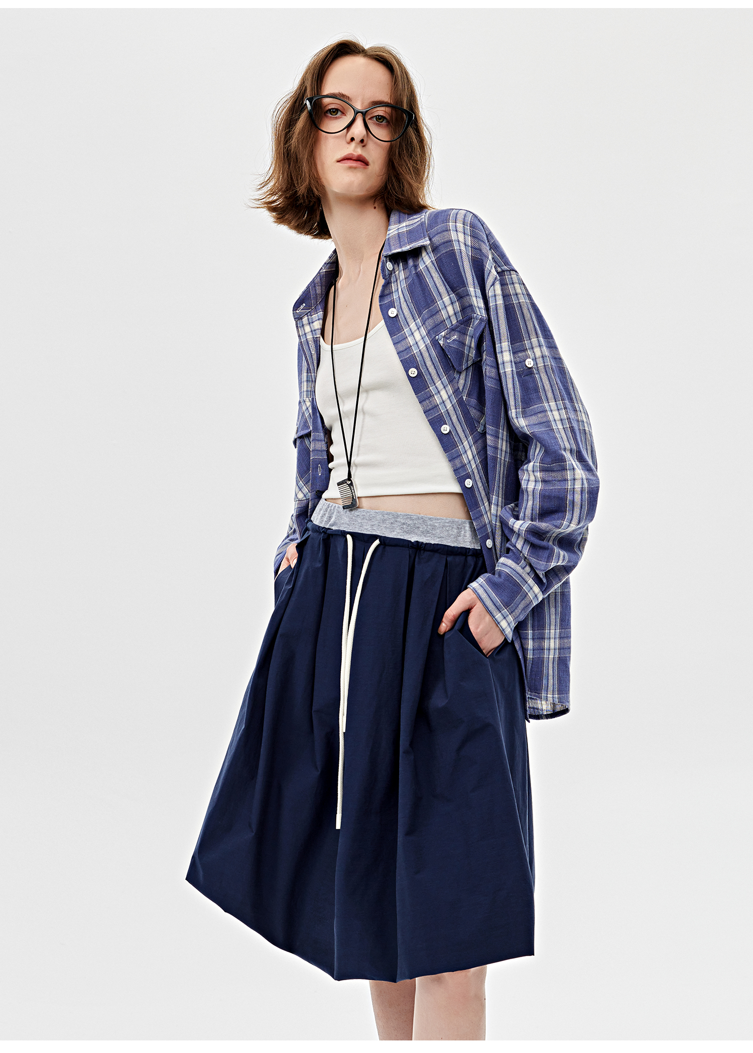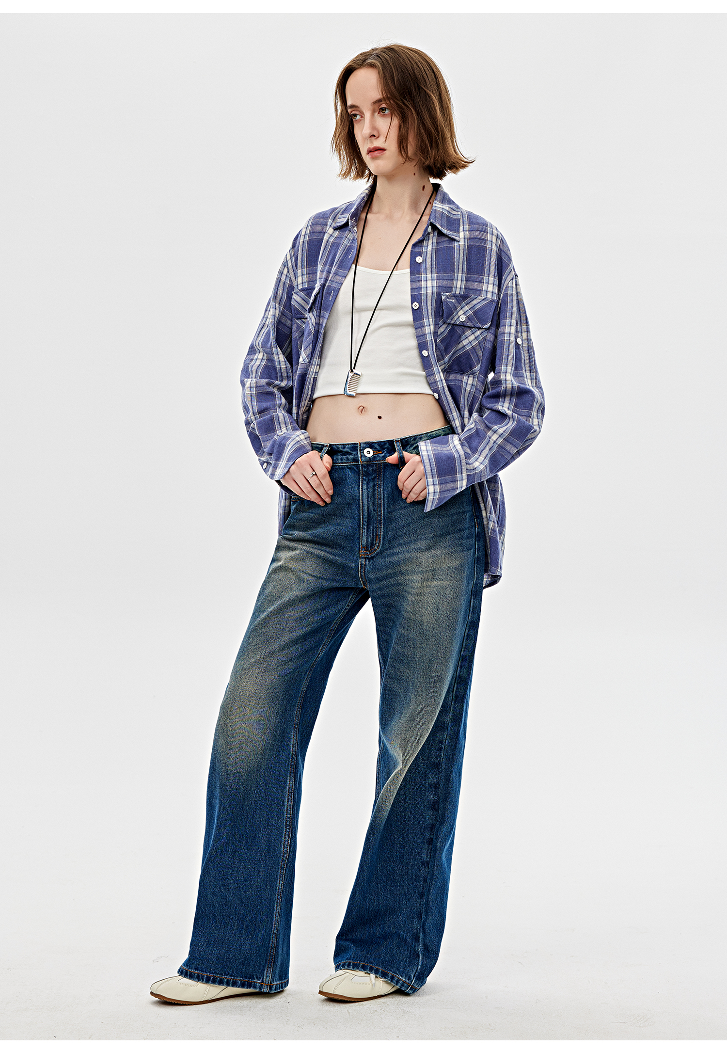 C+IMPRESS西嘉|全棉仿麻蓝色格子衬衫女2025春季新款长袖上衣衬衣CS2501029