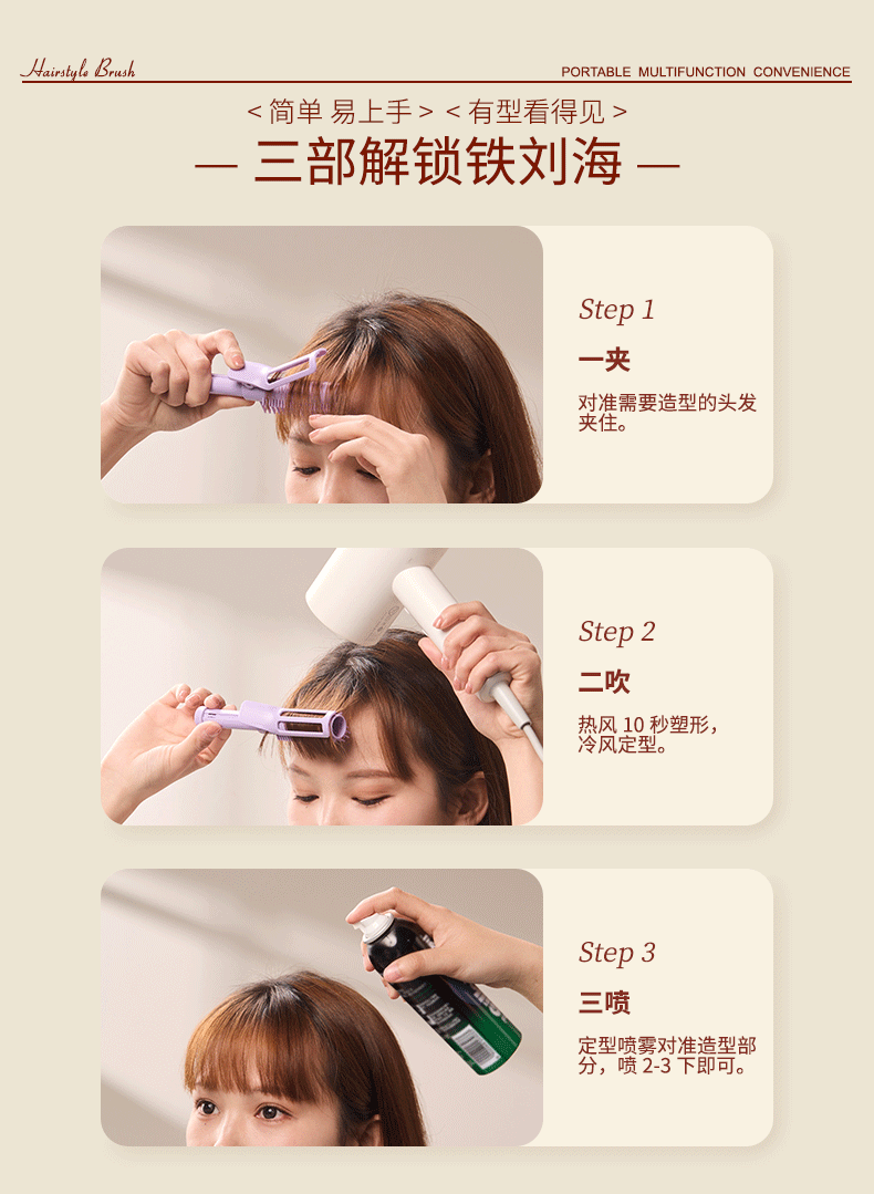 【双重模式❗小巧便捷】自主设计高颅顶可伸缩卷发梳造型梳便携烫发棒烫发夹美发梳。xa