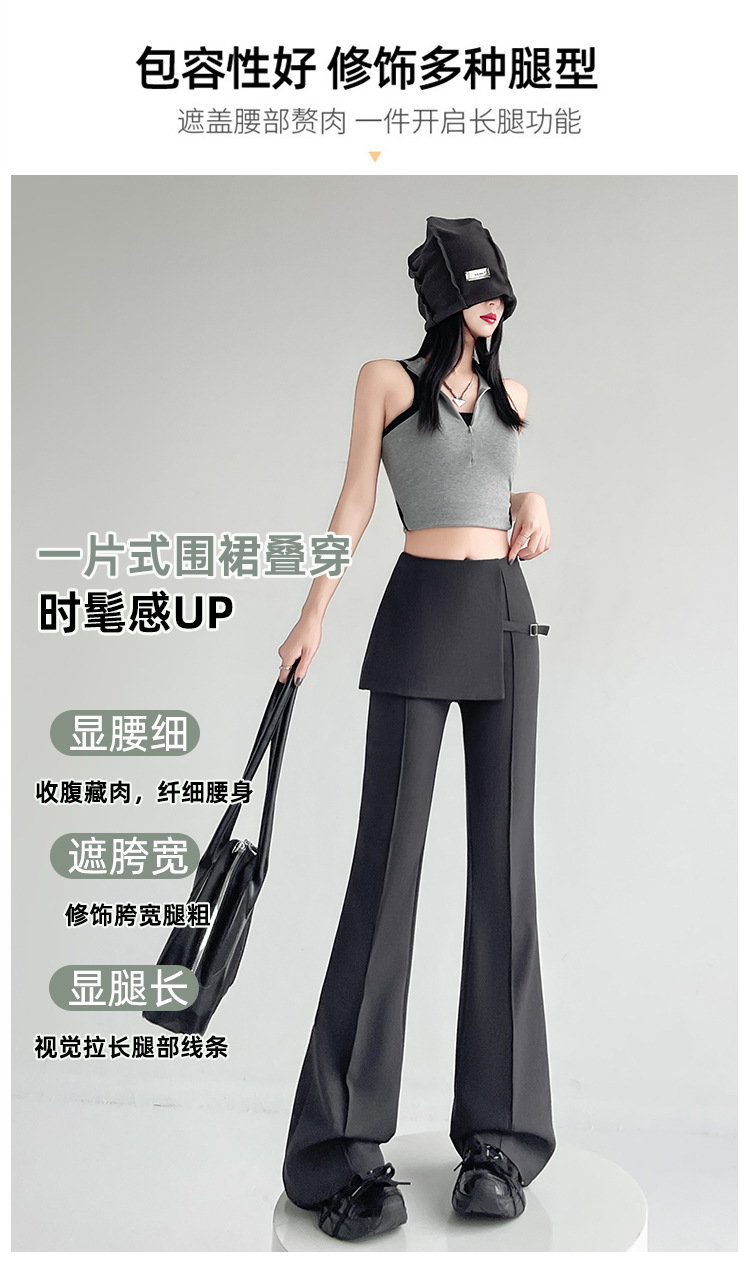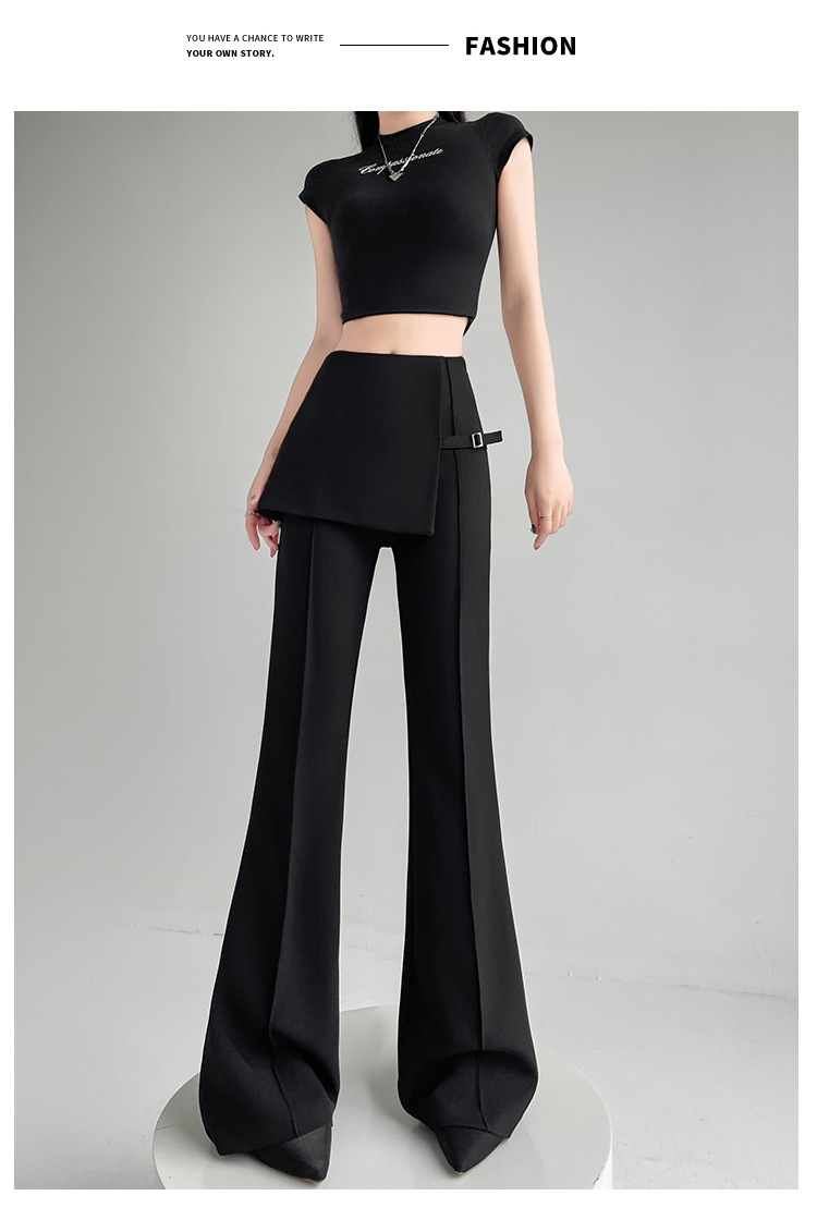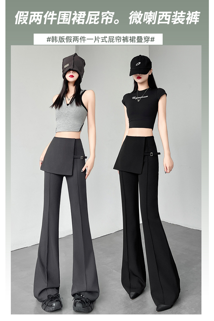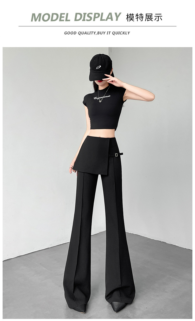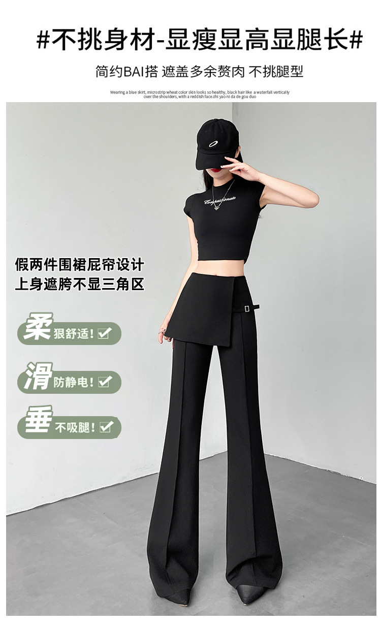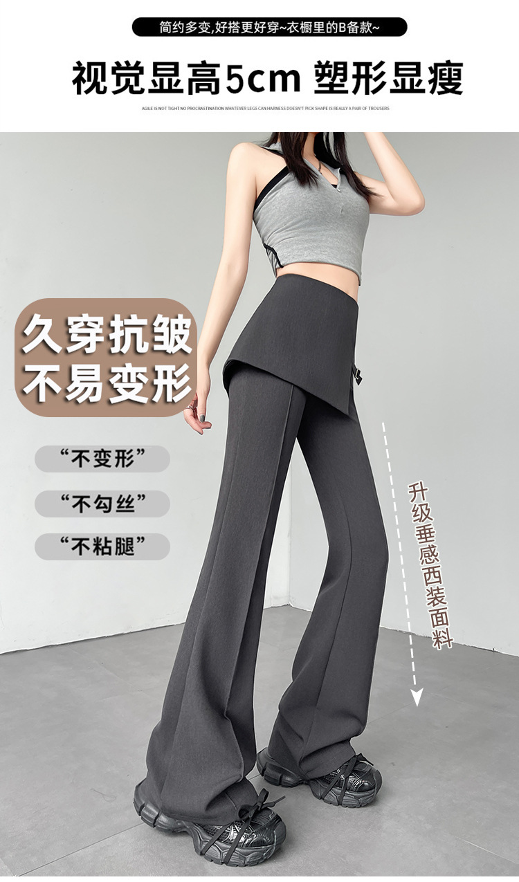 MZ19078假两件不规则屁帘微喇西装裤女夏季高腰显瘦垂感休闲拖地喇叭裤子