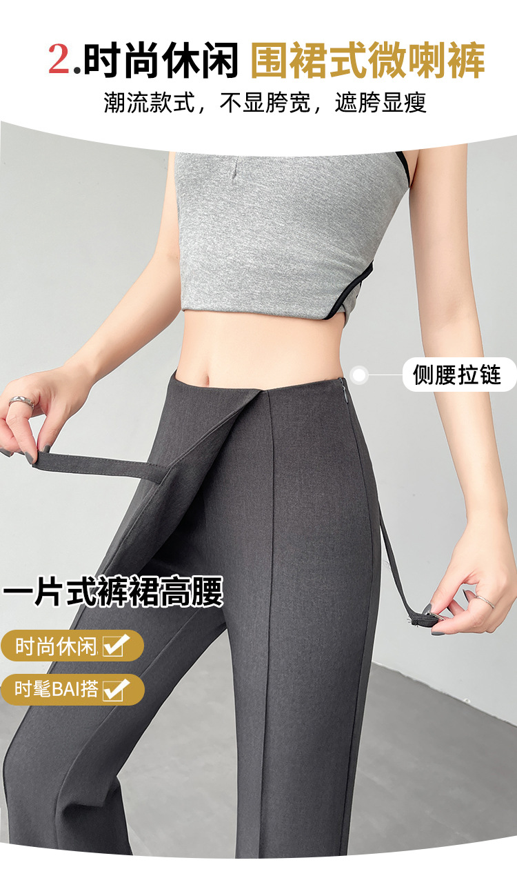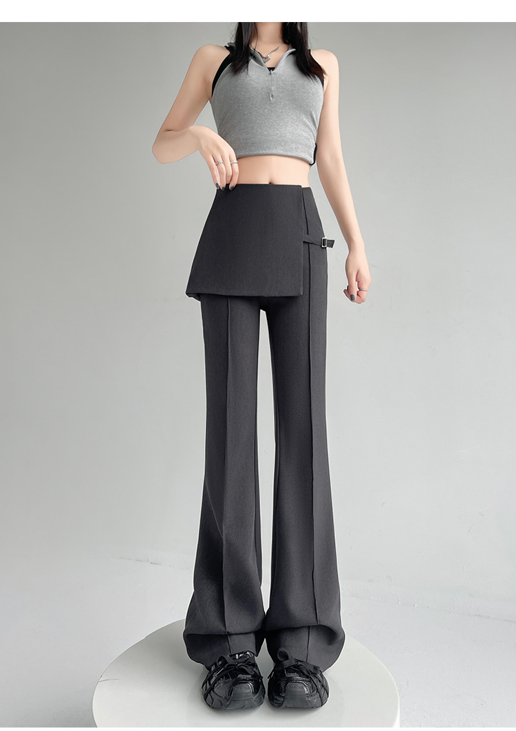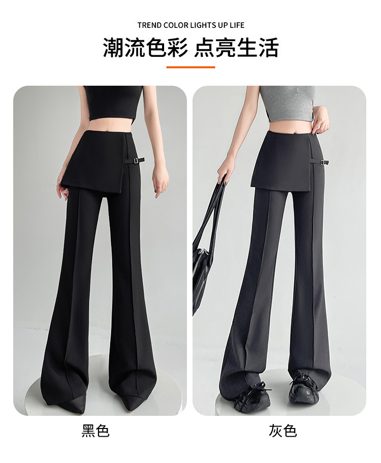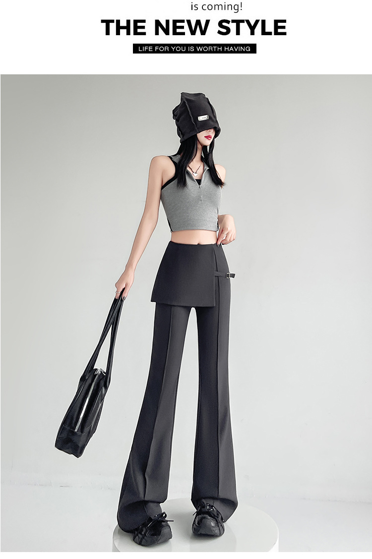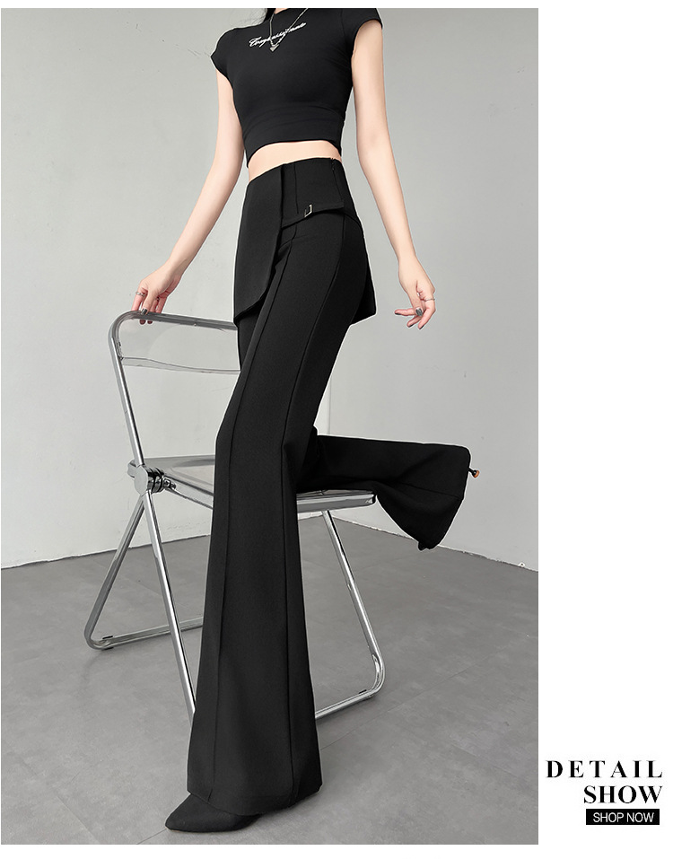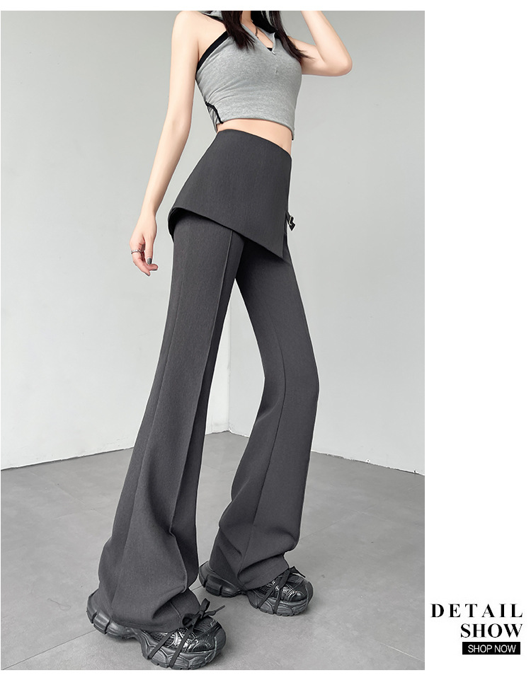 MZ19078假两件不规则屁帘微喇西装裤女夏季高腰显瘦垂感休闲拖地喇叭裤子