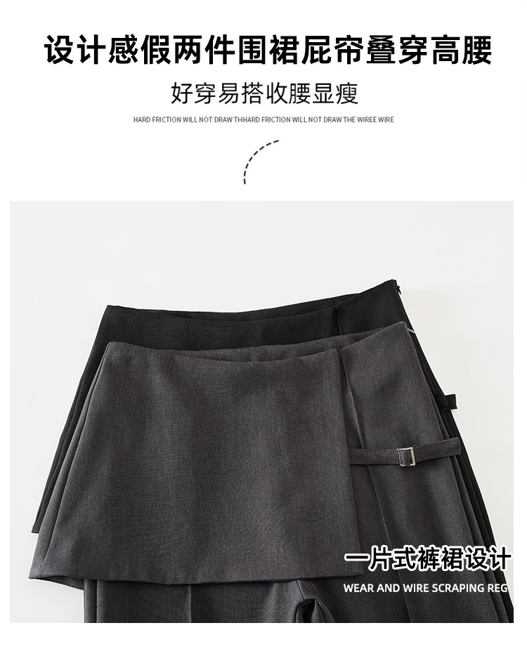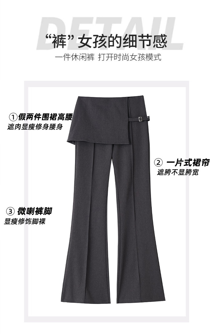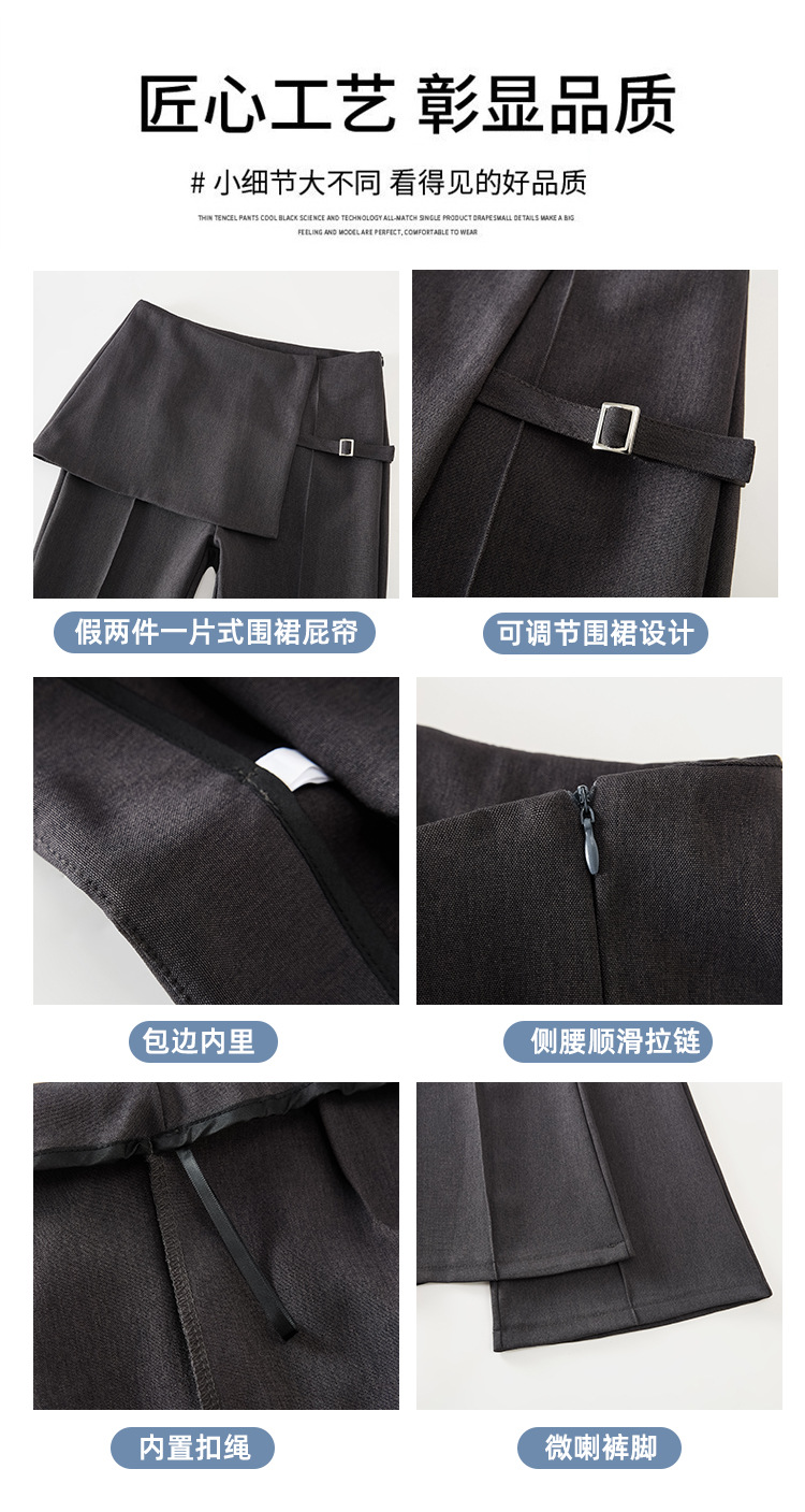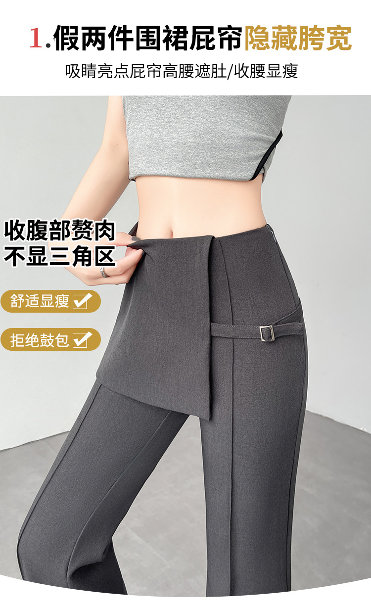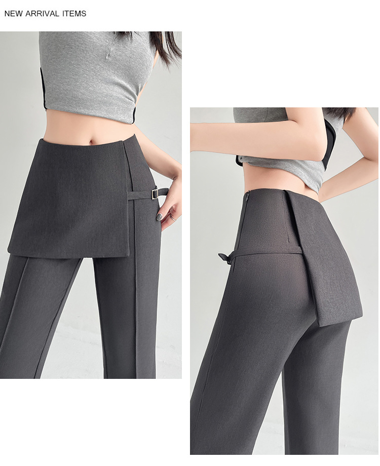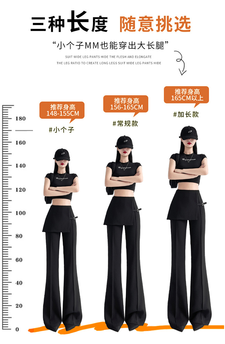 MZ19078假两件不规则屁帘微喇西装裤女夏季高腰显瘦垂感休闲拖地喇叭裤子
