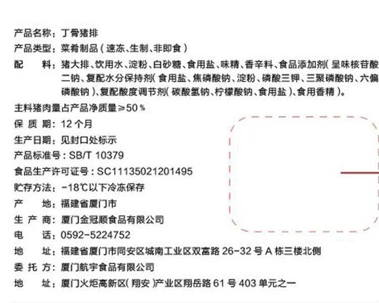 新航道丁骨猪排/1包(8片,共约800g)生产日期:25年9月补单专用