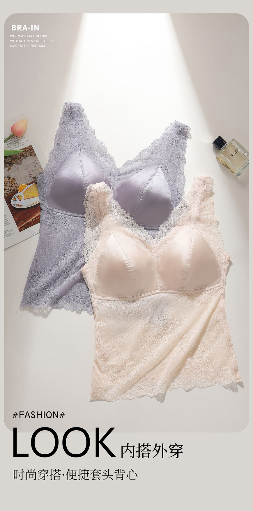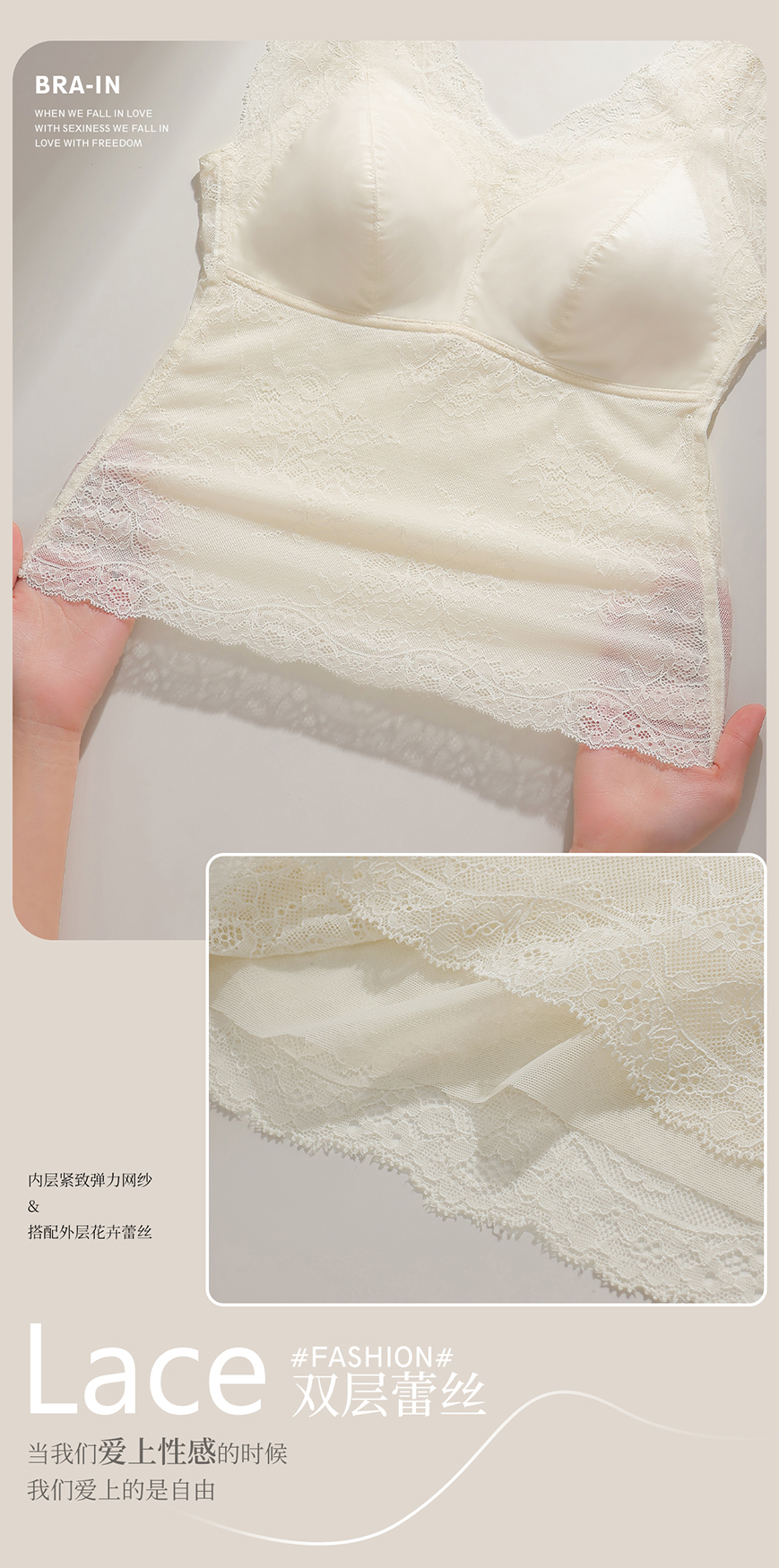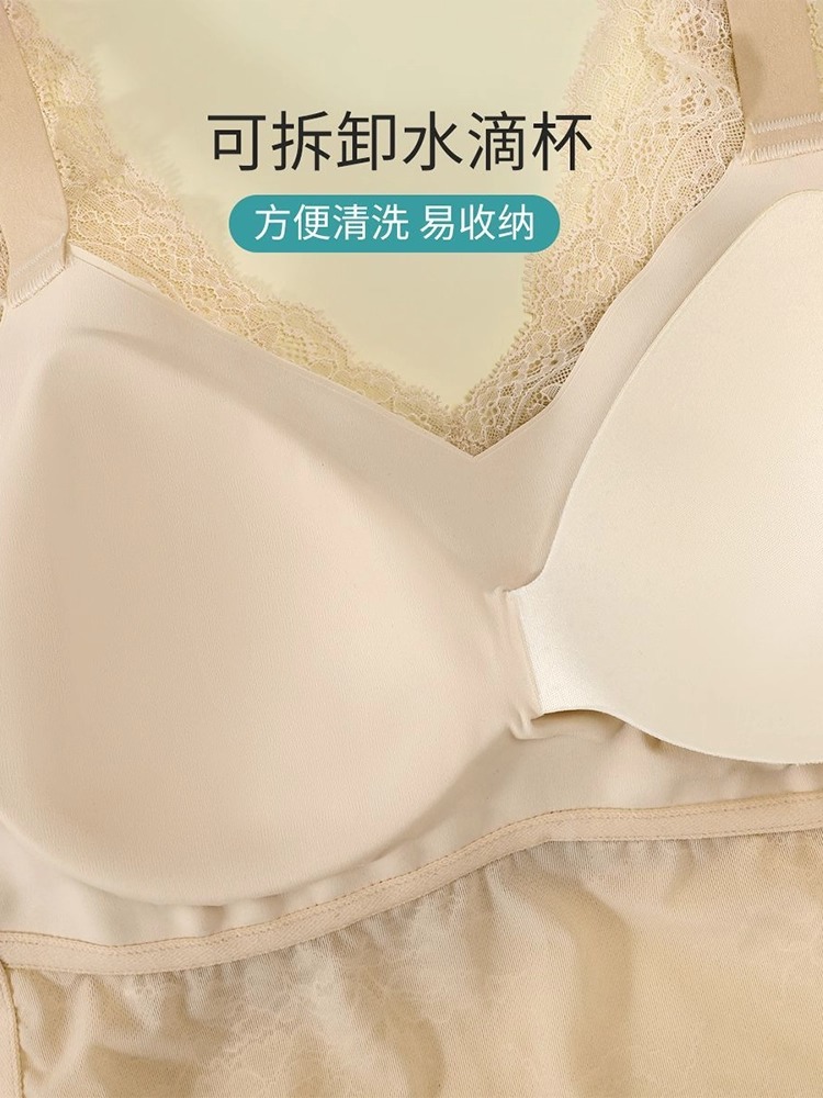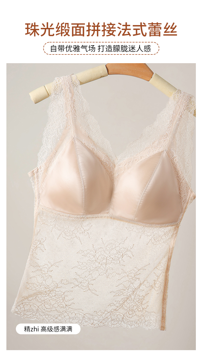 「老顾客福利」洛诗琳高定法士缎面蕾丝吊带背心2025夏季带胸垫美背文胸一体蕾丝打底背心62305