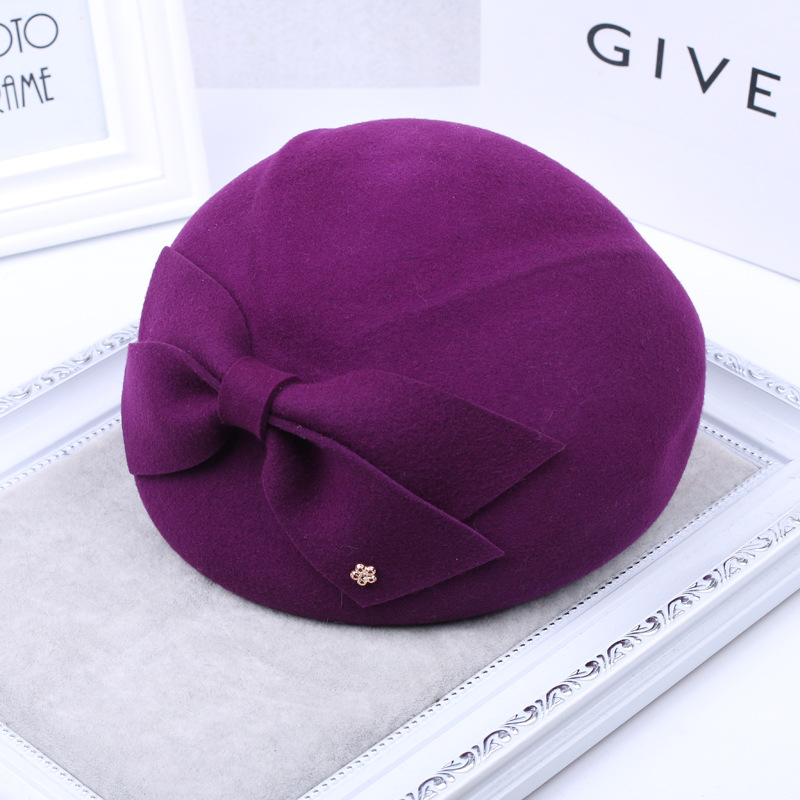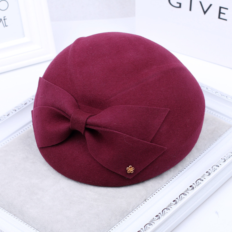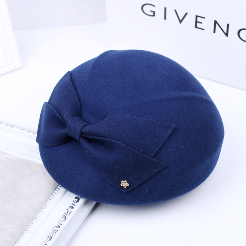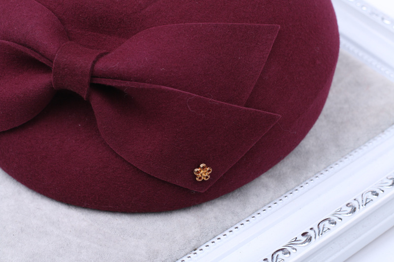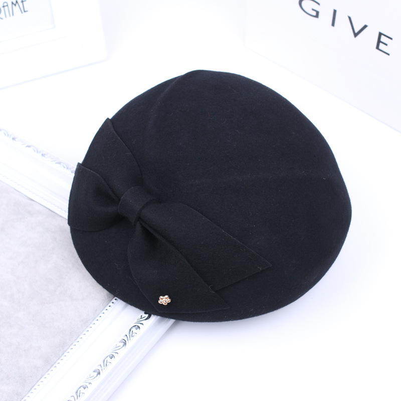 LYX-韩国女士羊毛呢帽子秋冬新款英伦复古蝴蝶结高贵礼帽贝雷帽空姐帽