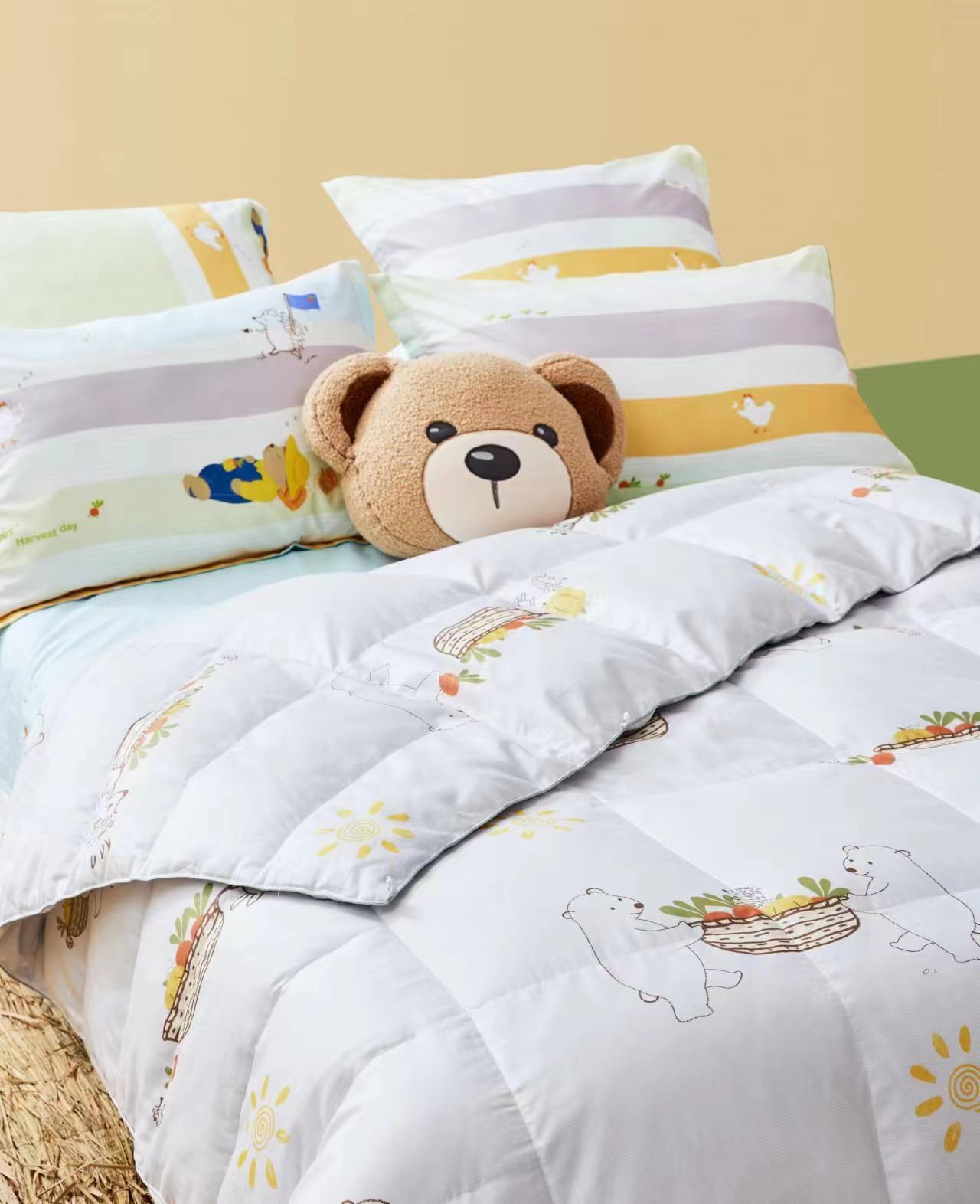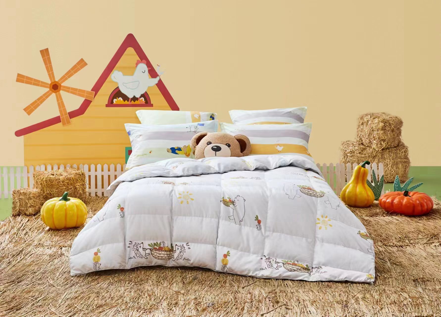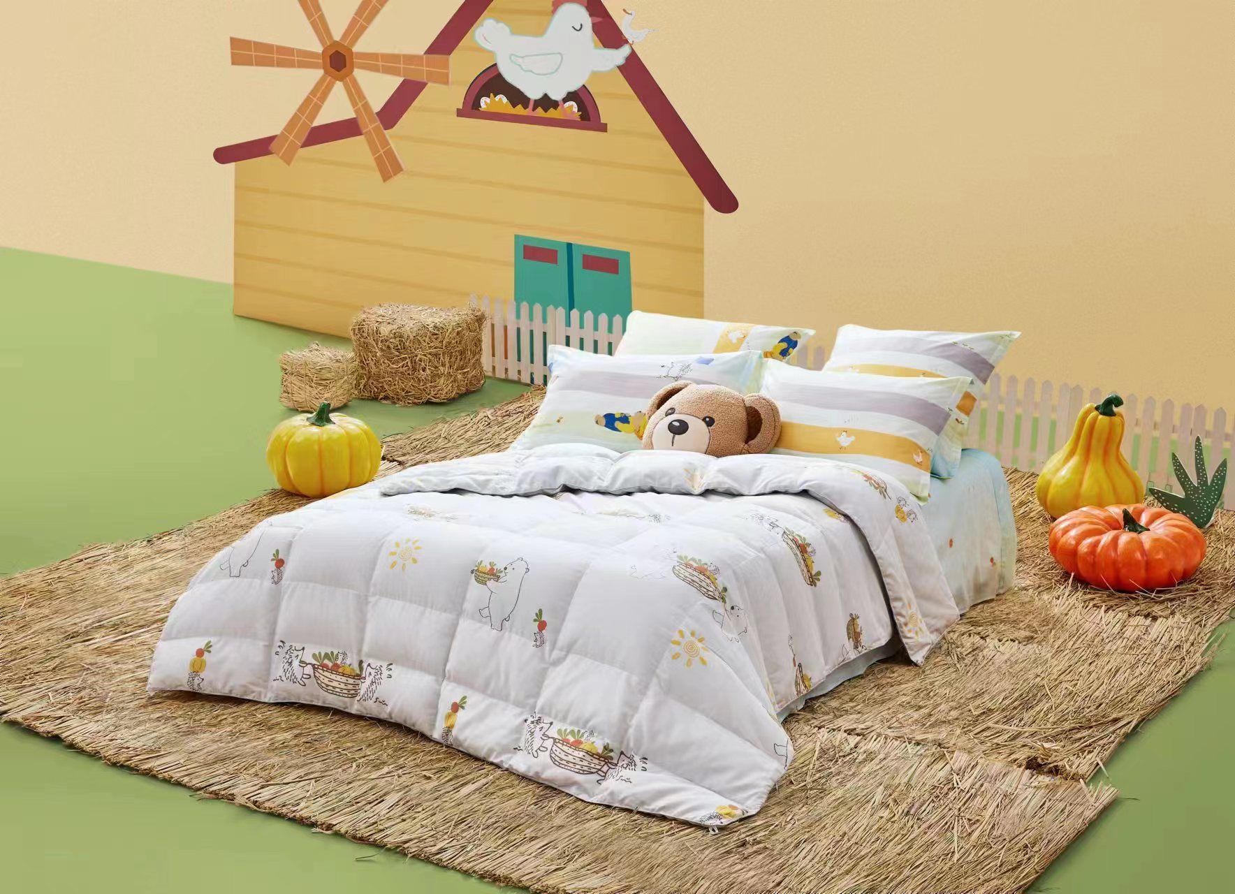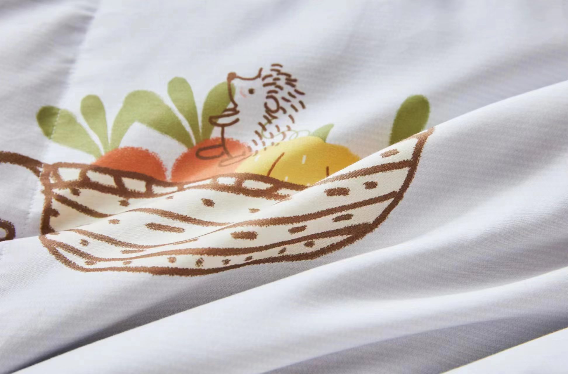 花型:本为欢乐农场主题,描绘了小熊小刺猬在农场干活的欢乐场景,童趣十足。