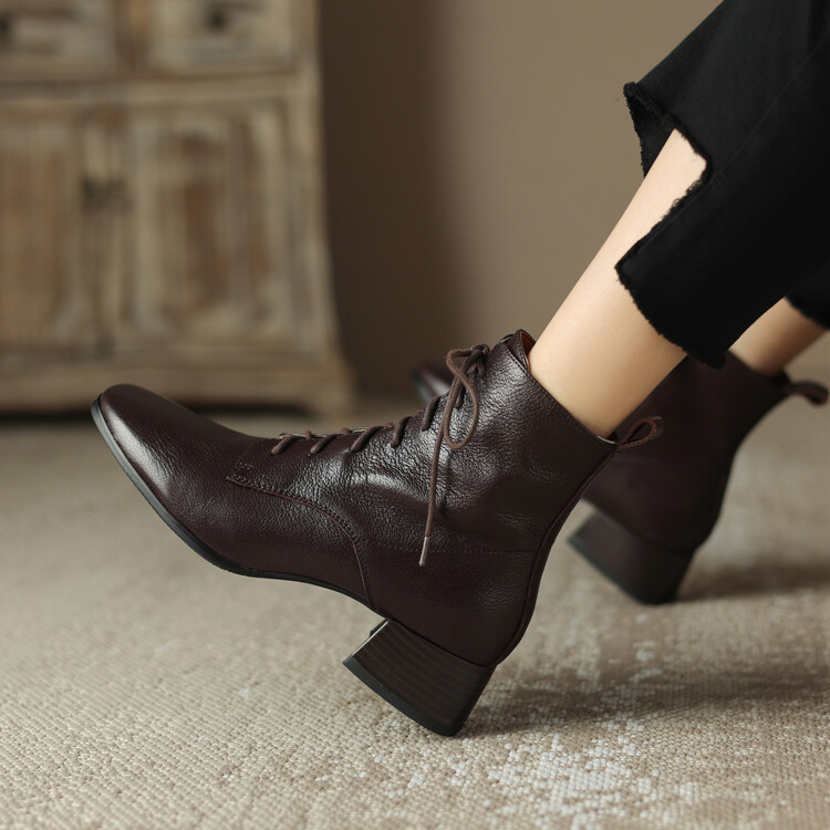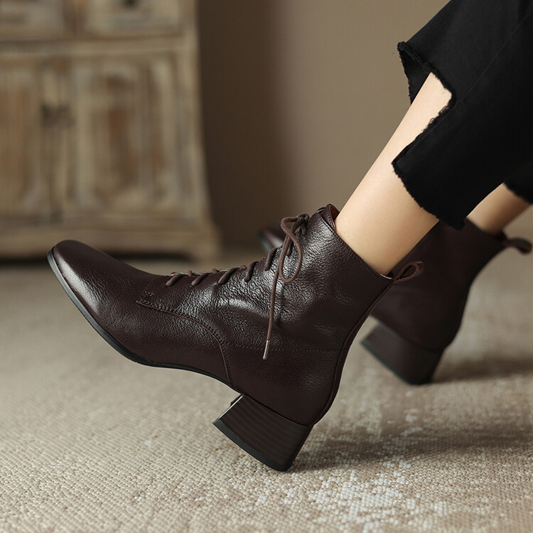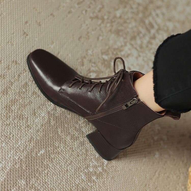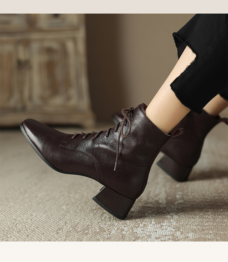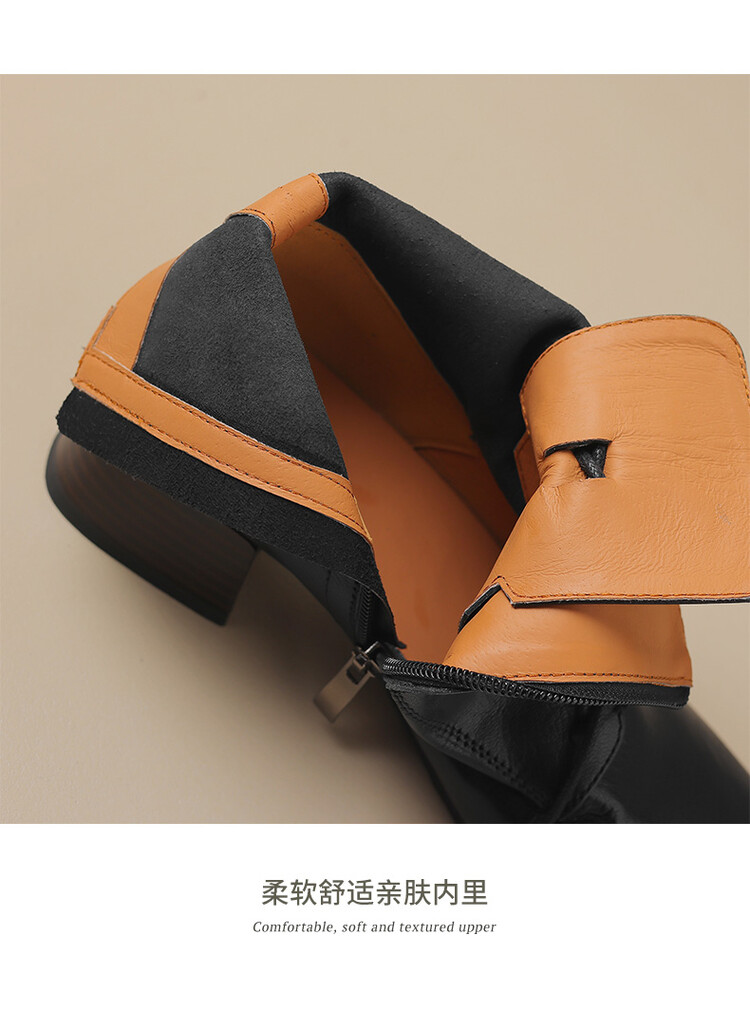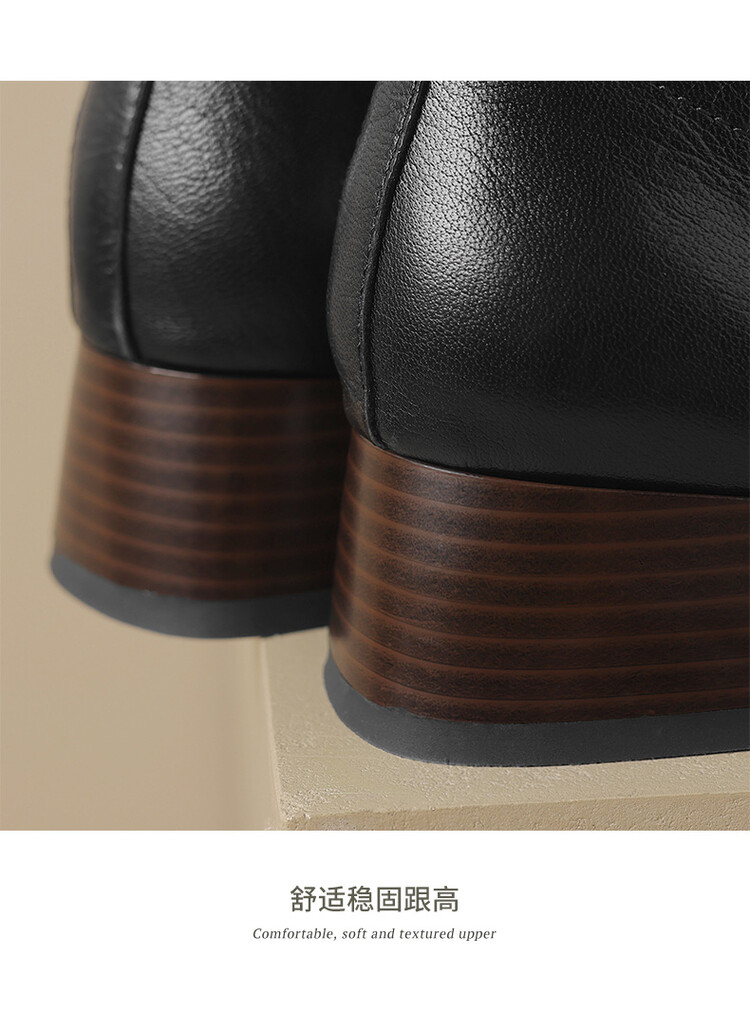 货号:A915鞋面材质:头层羊皮垫脚:猪皮内里:猪皮/保暖绒里鞋底材质:橡胶底颜色:黑色 棕色尺码:34-39跟高:4CM【制作工艺】:纯手工制作