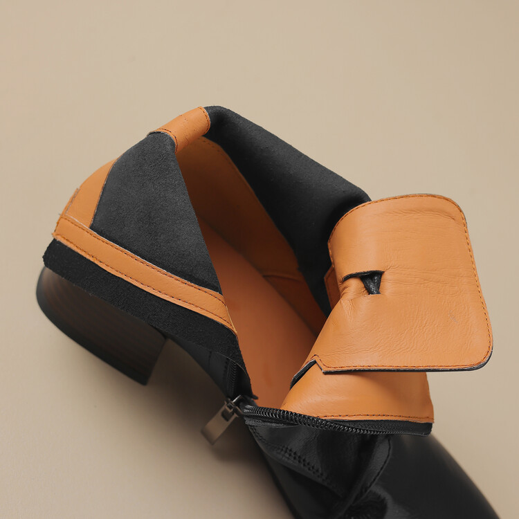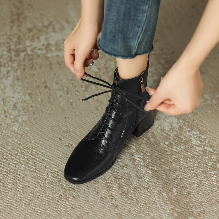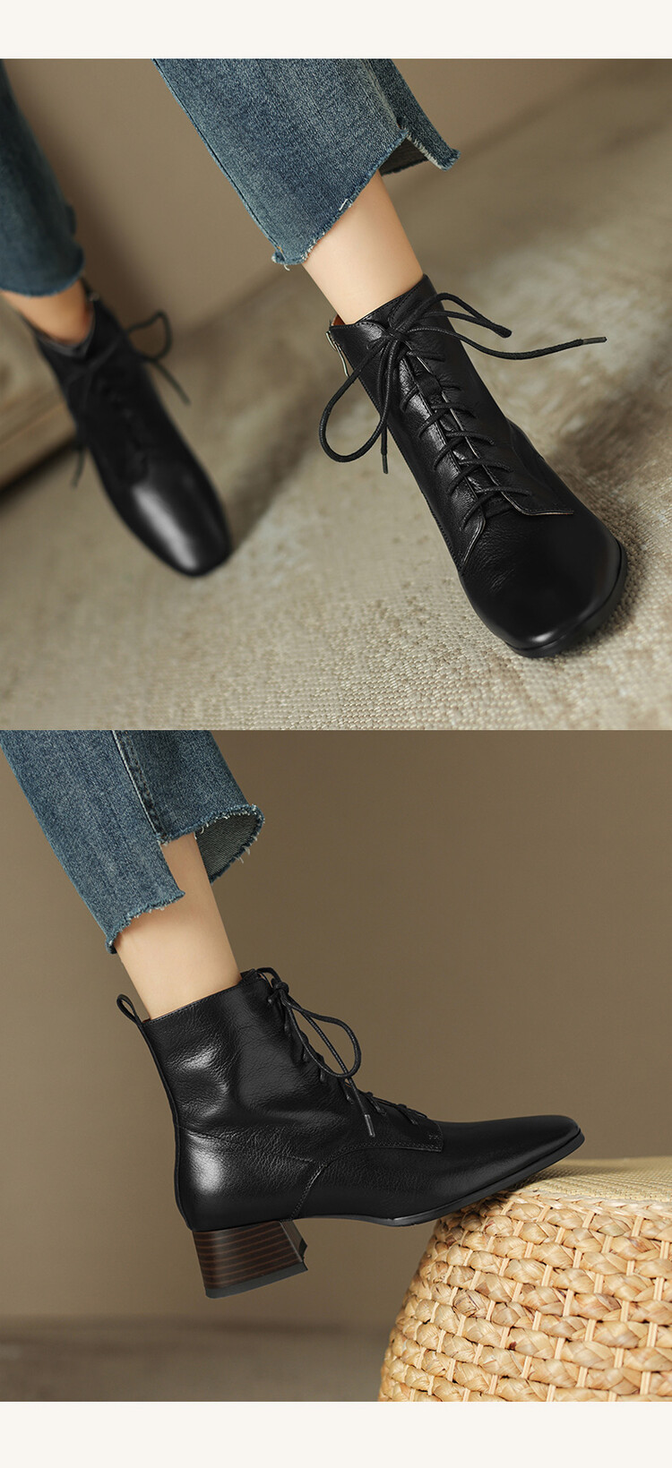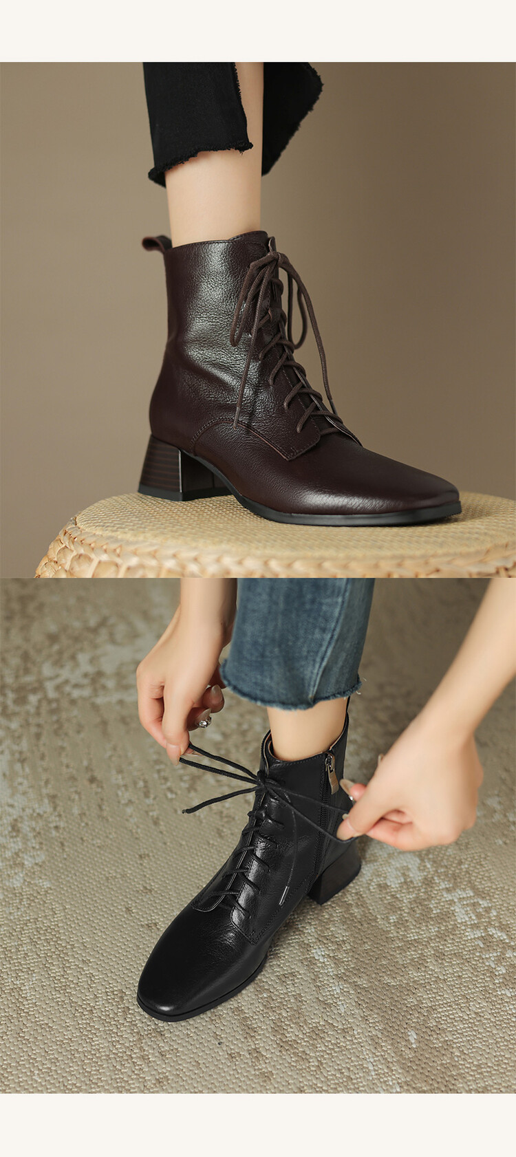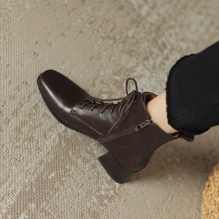 货号:A915鞋面材质:头层羊皮垫脚:猪皮内里:猪皮/保暖绒里鞋底材质:橡胶底颜色:黑色 棕色尺码:34-39跟高:4CM【制作工艺】:纯手工制作