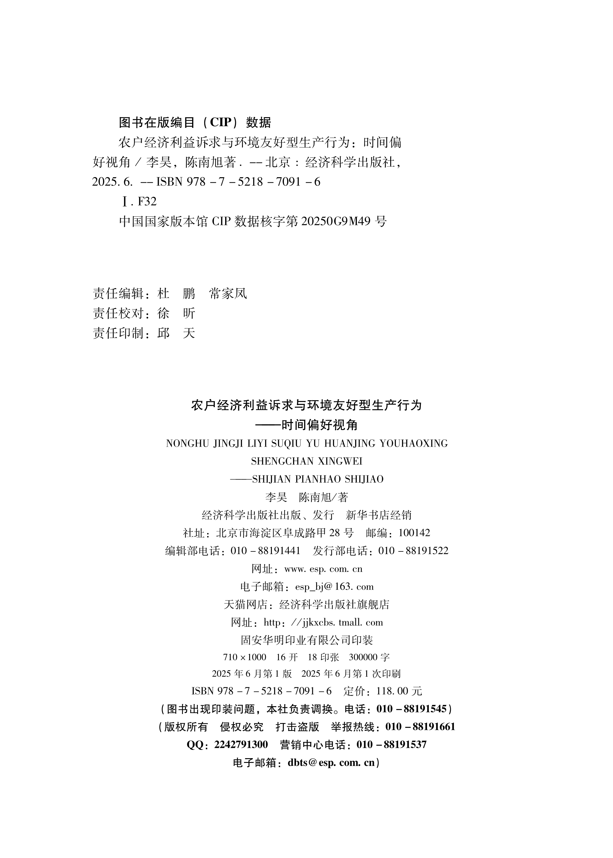 农户经济利益诉求与环境友好型生产行为---时间偏好视角