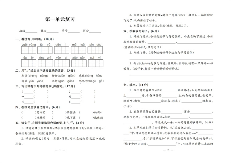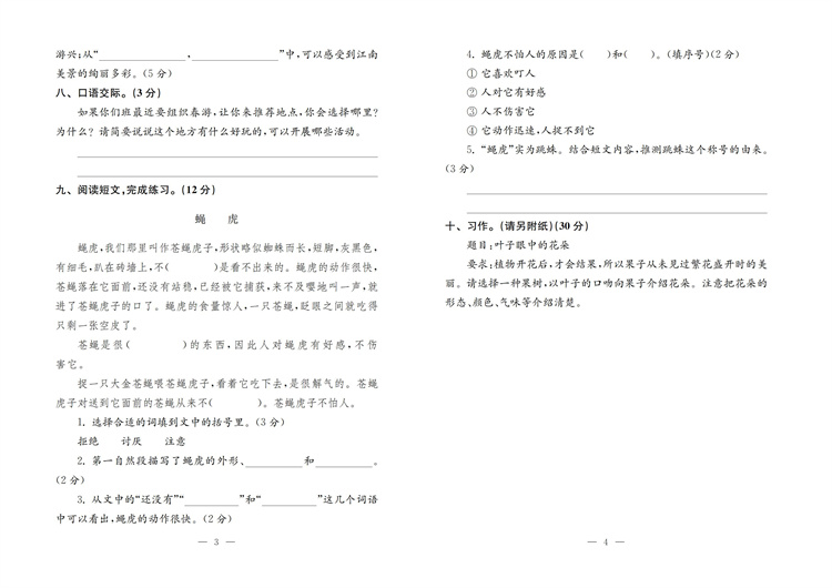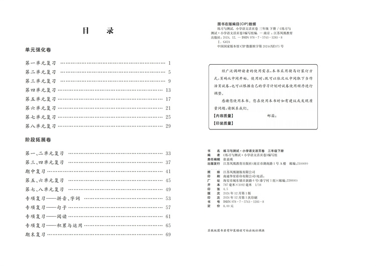2025春 练习与测试小学语文活页卷 三年级下册 同步人教版部编版 小学教辅试卷 3下小学生用书 江苏凤凰教育出版社