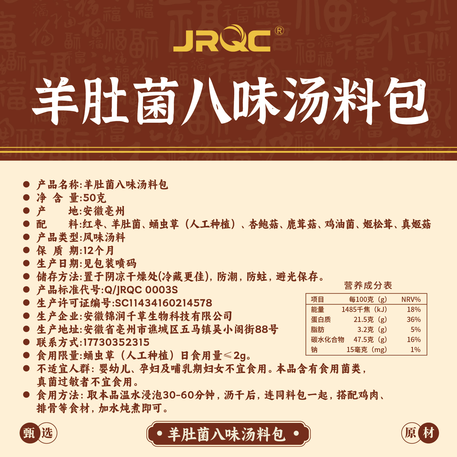 【深山珍菌】羊肚菌八珍汤慢炖鲜香滋补汤料包 50g/袋