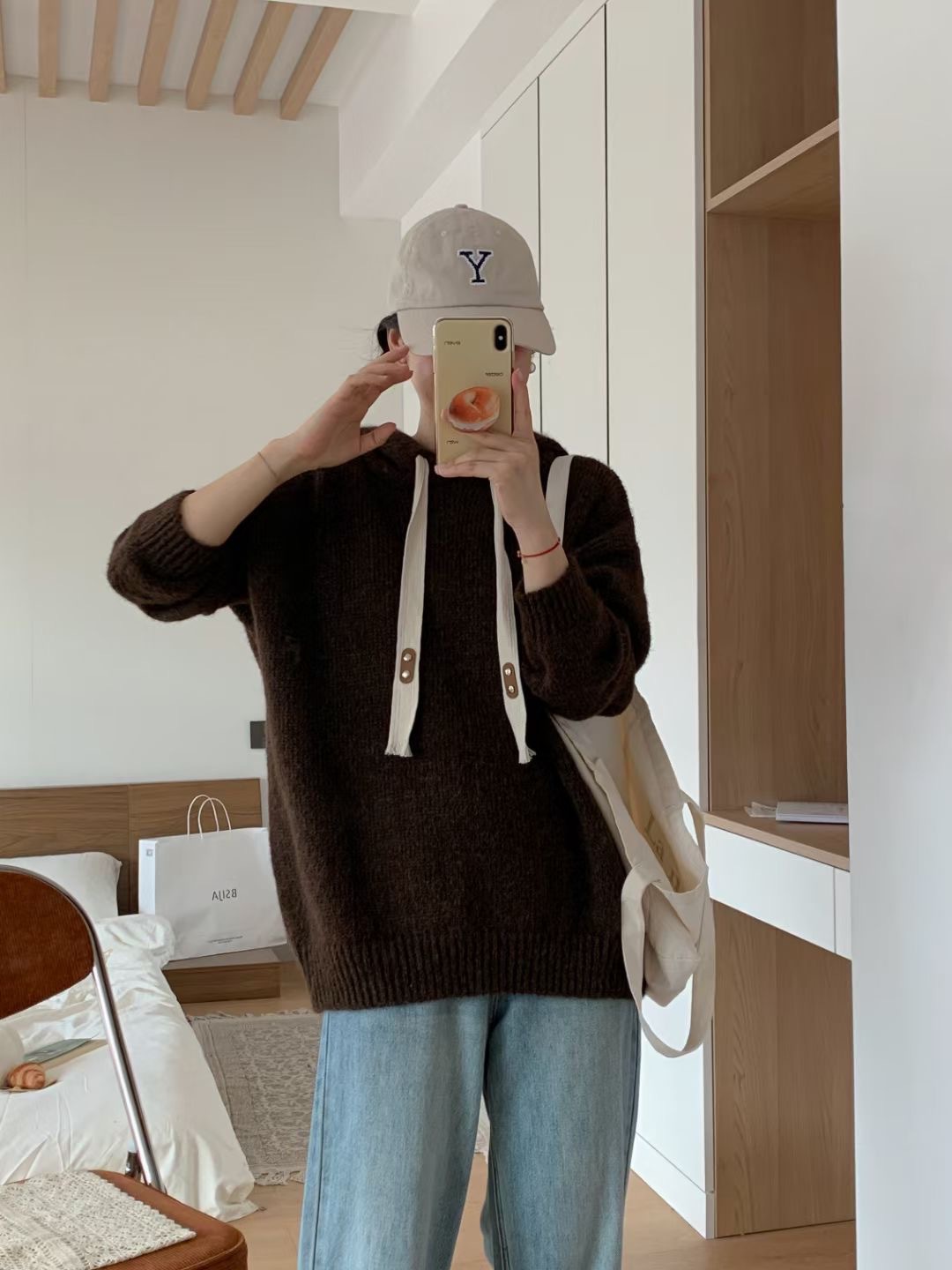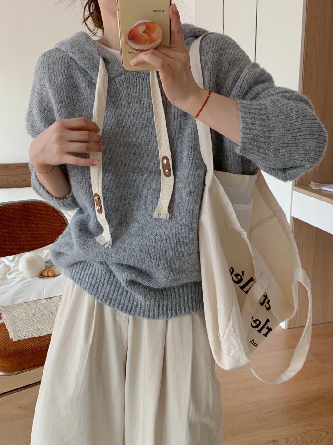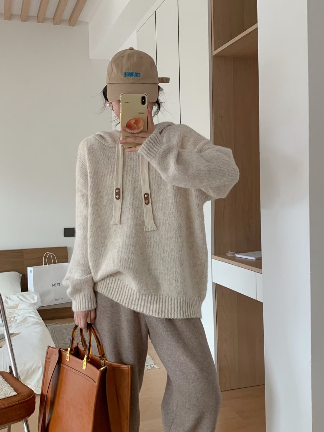 慵懒风毛衣女秋冬温柔风,连帽套头加厚外穿软糯宽松针织衫JB-YYD12