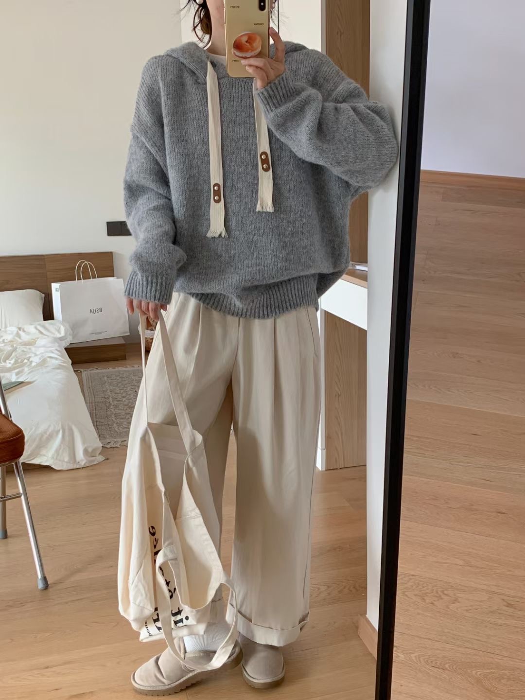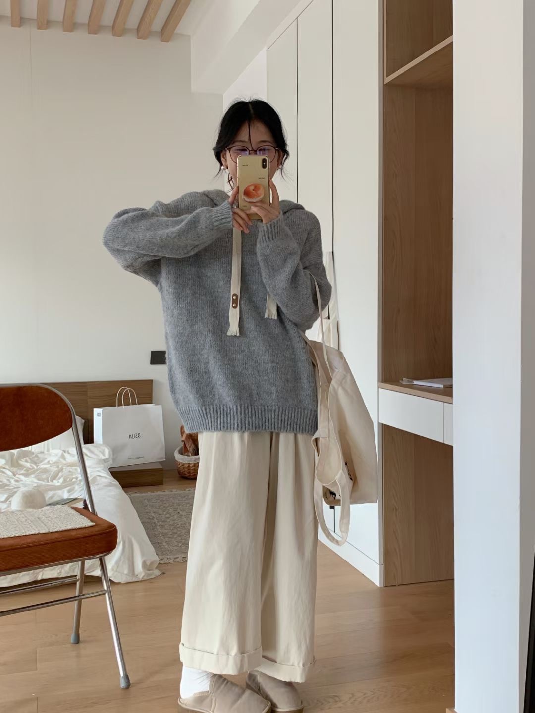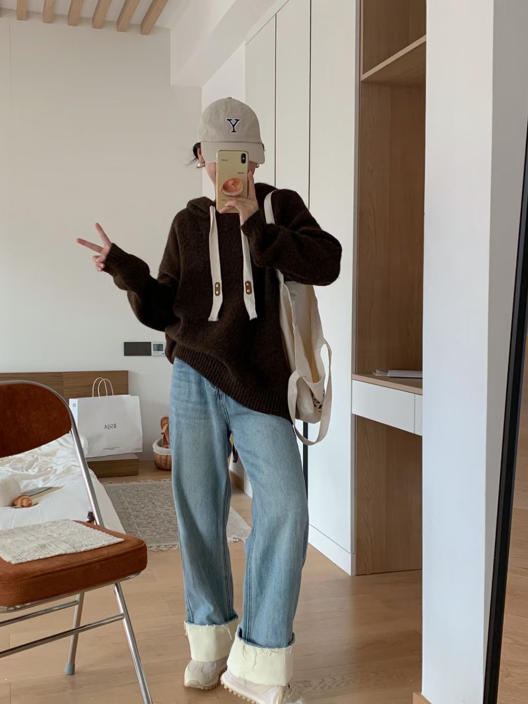 慵懒风毛衣女秋冬温柔风,连帽套头加厚外穿软糯宽松针织衫JB-YYD12