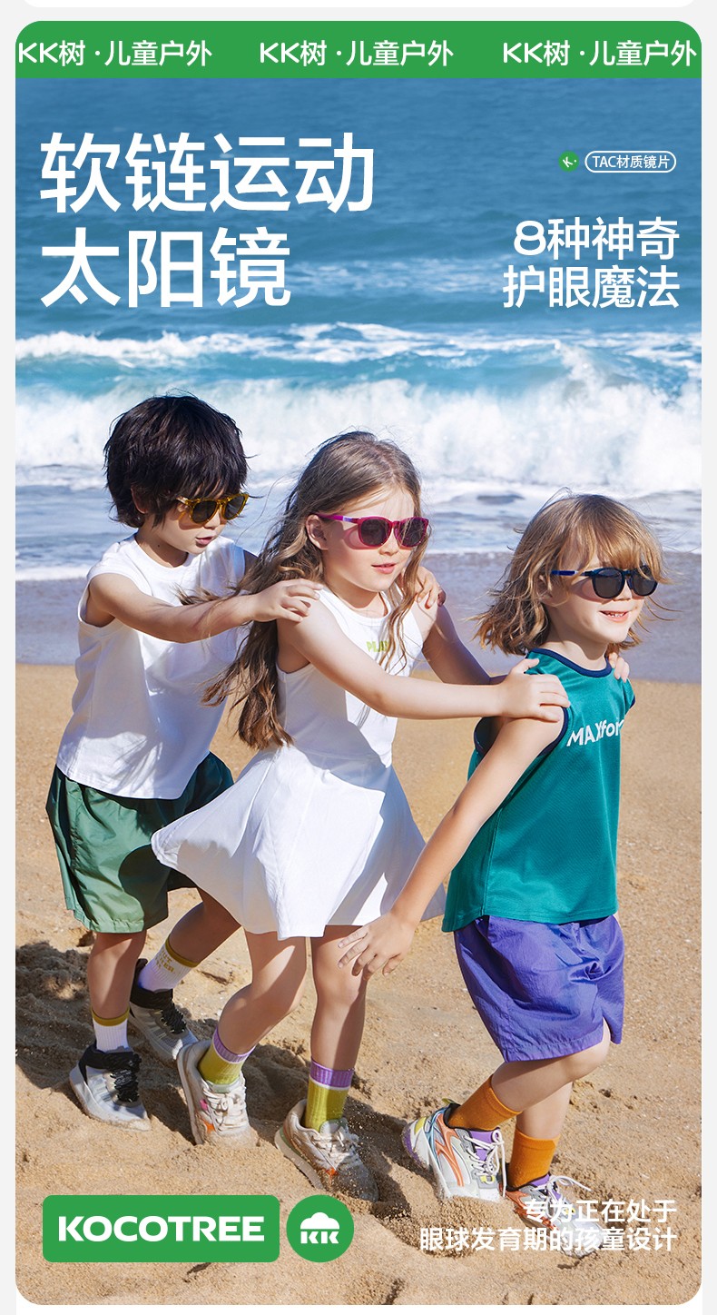 KK树儿童墨镜男童女孩偏光太阳镜宝宝防紫外线护眼潮时尚不伤眼睛尖峰之旅运动太阳镜