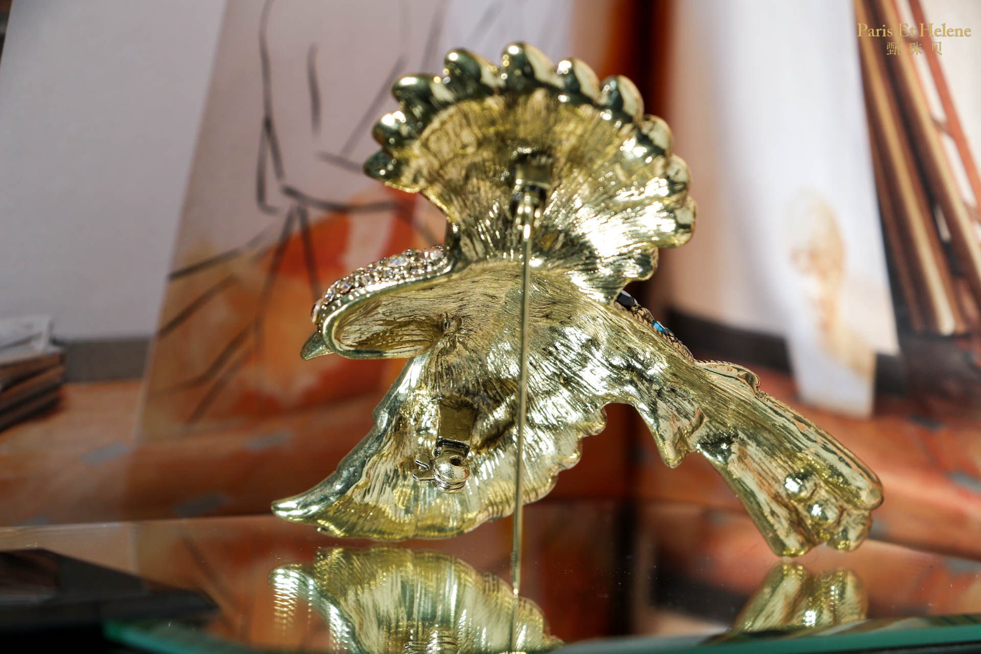 胸针都是重工工艺,整体带点做旧感,上面巧妙地排列了满满的锆石,色彩艳丽,精致到让人觉得这些胸针都会出现在欧美剧那些贵族身上。