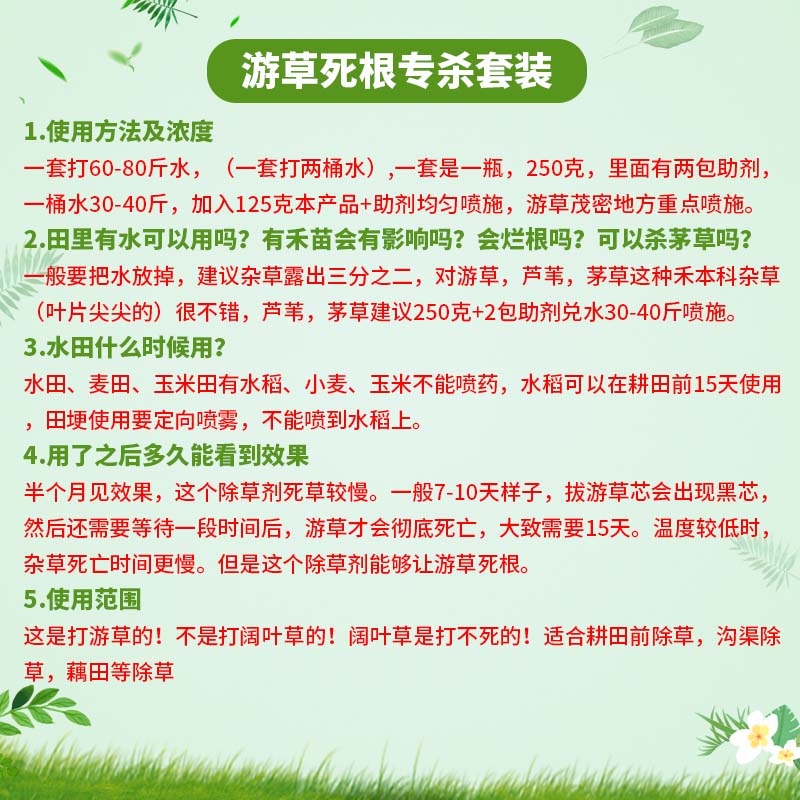 游草专杀套餐 高效氟吡甲禾灵升级版 专杀空心游草芦苇茅草除草剂