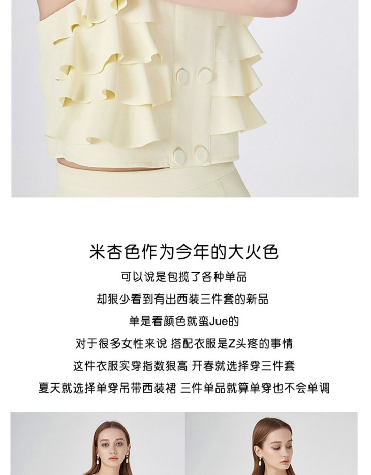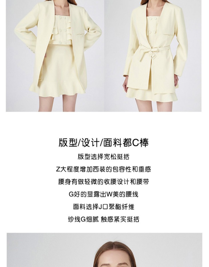 【M1】臣禾西装套装通勤【时髦小众】职业修身气质简约【浅色三件套】T211010229【奥莱】
