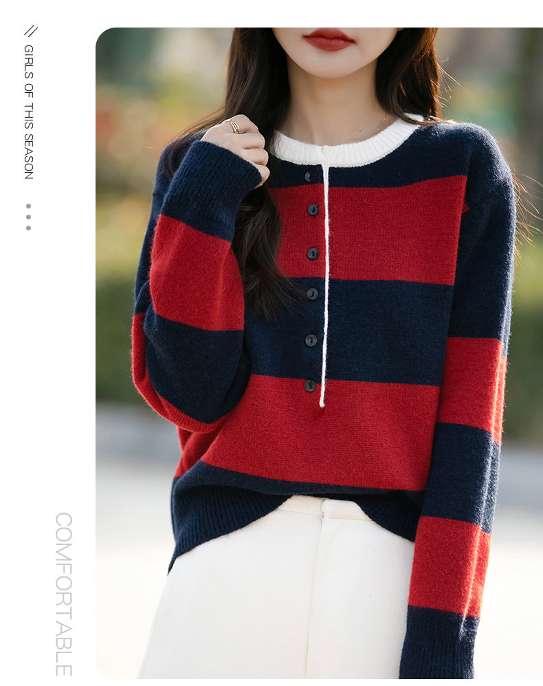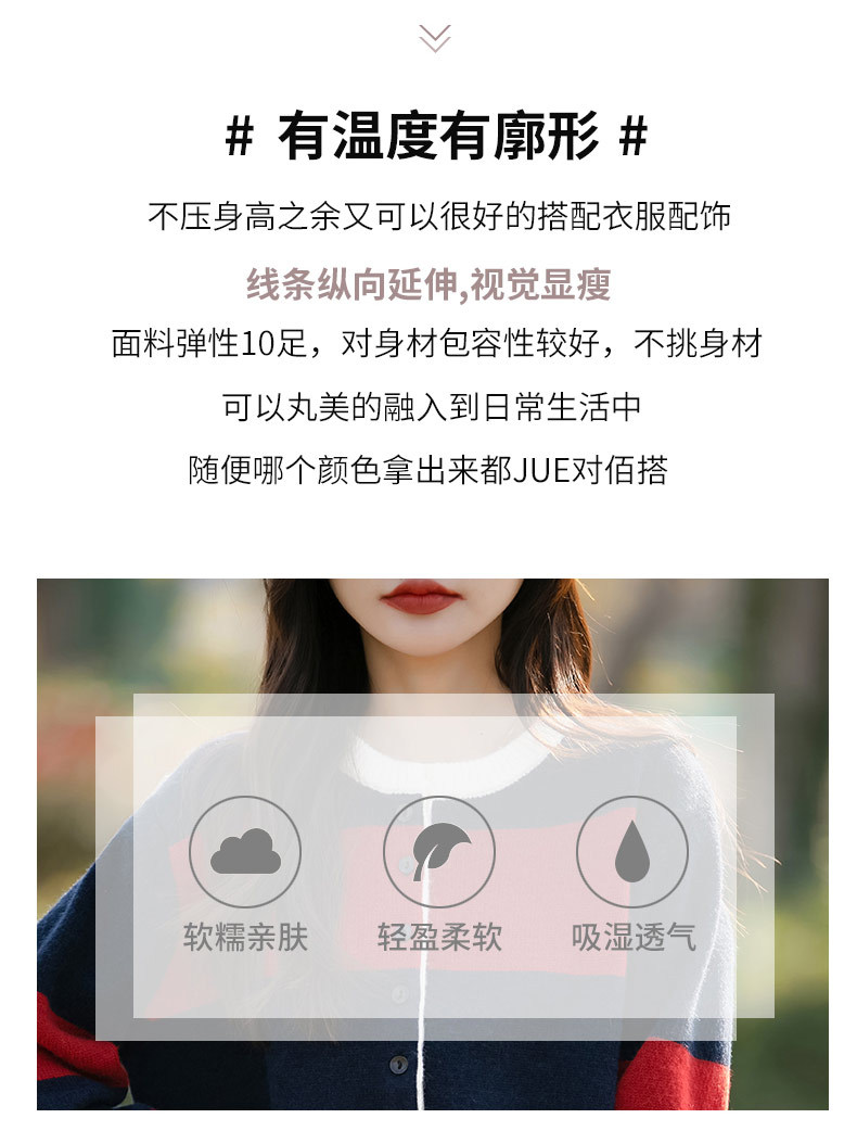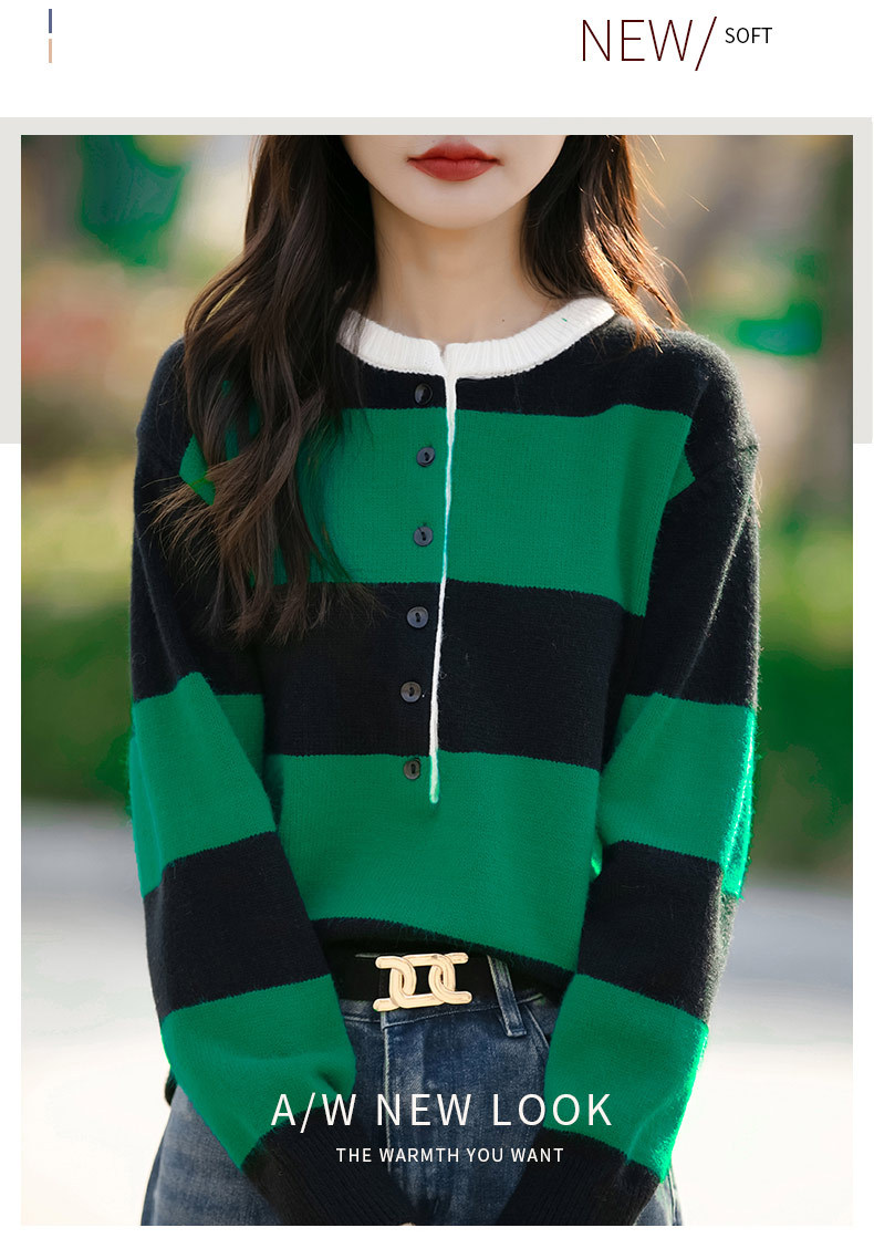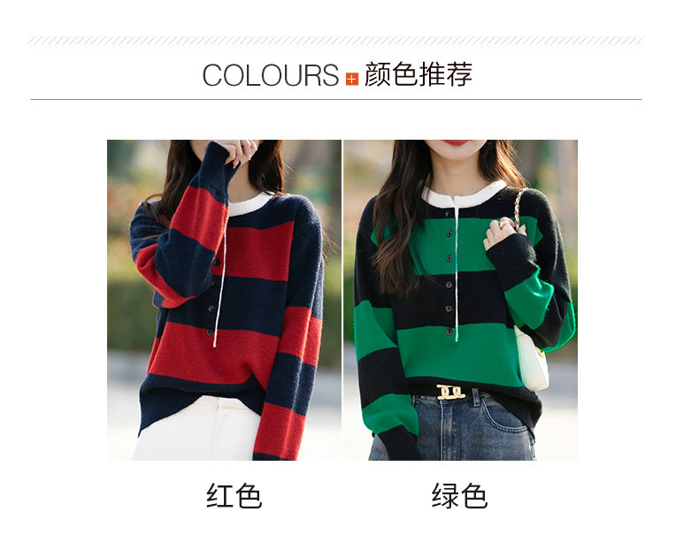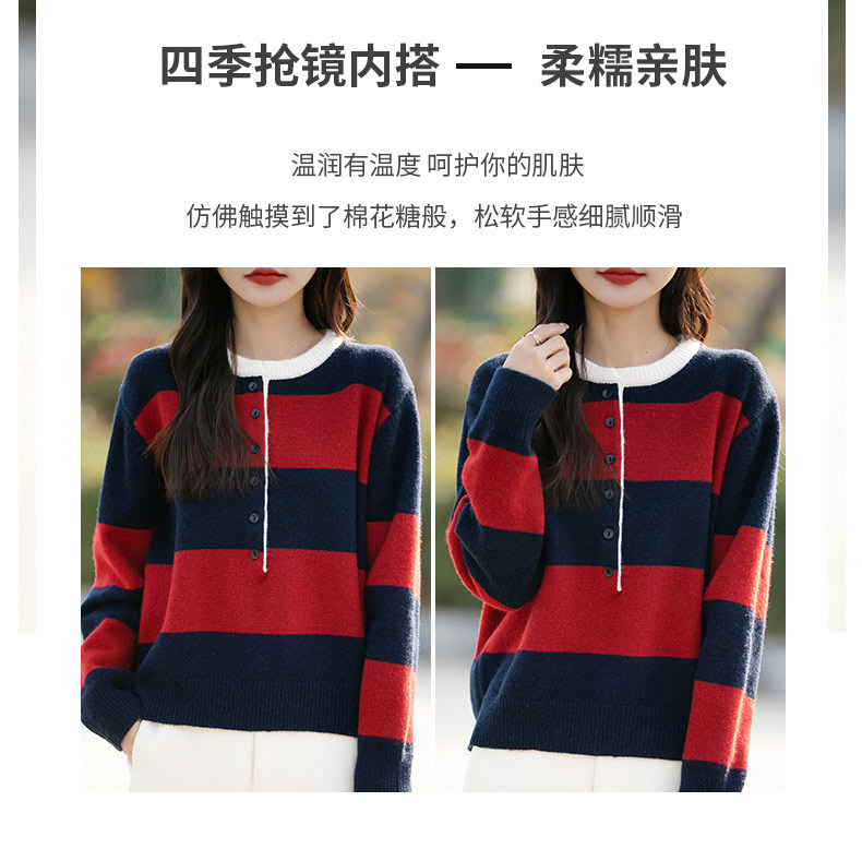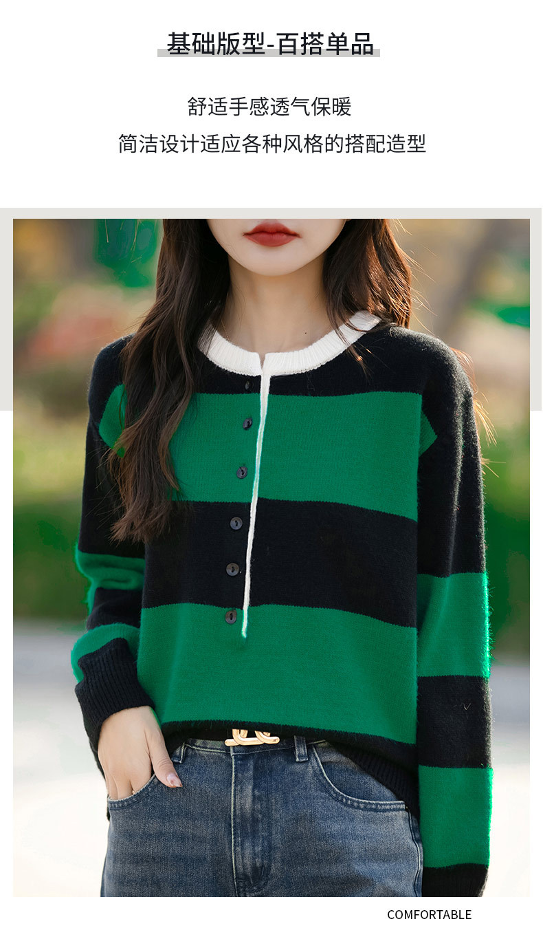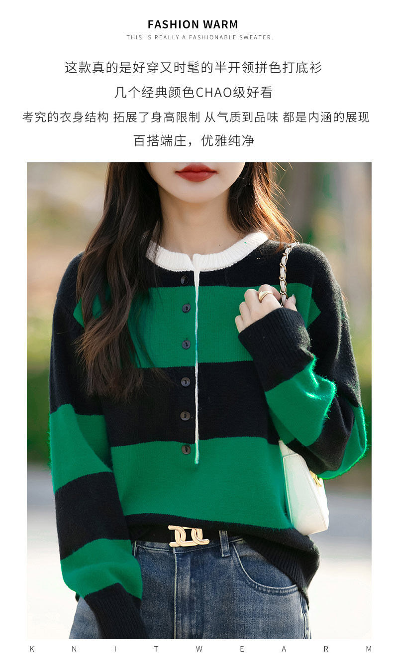 QHJY-JY8188新款条纹半开襟长袖针织衫上衣圆领安迪绒打底毛衣大码女装