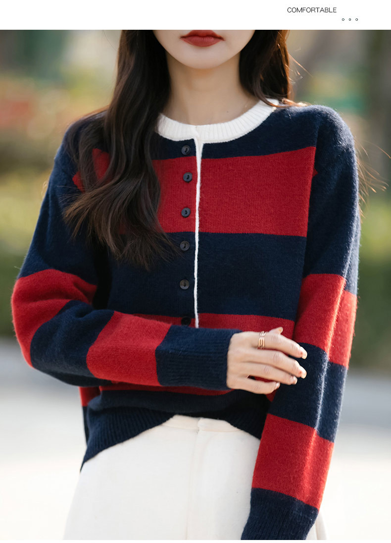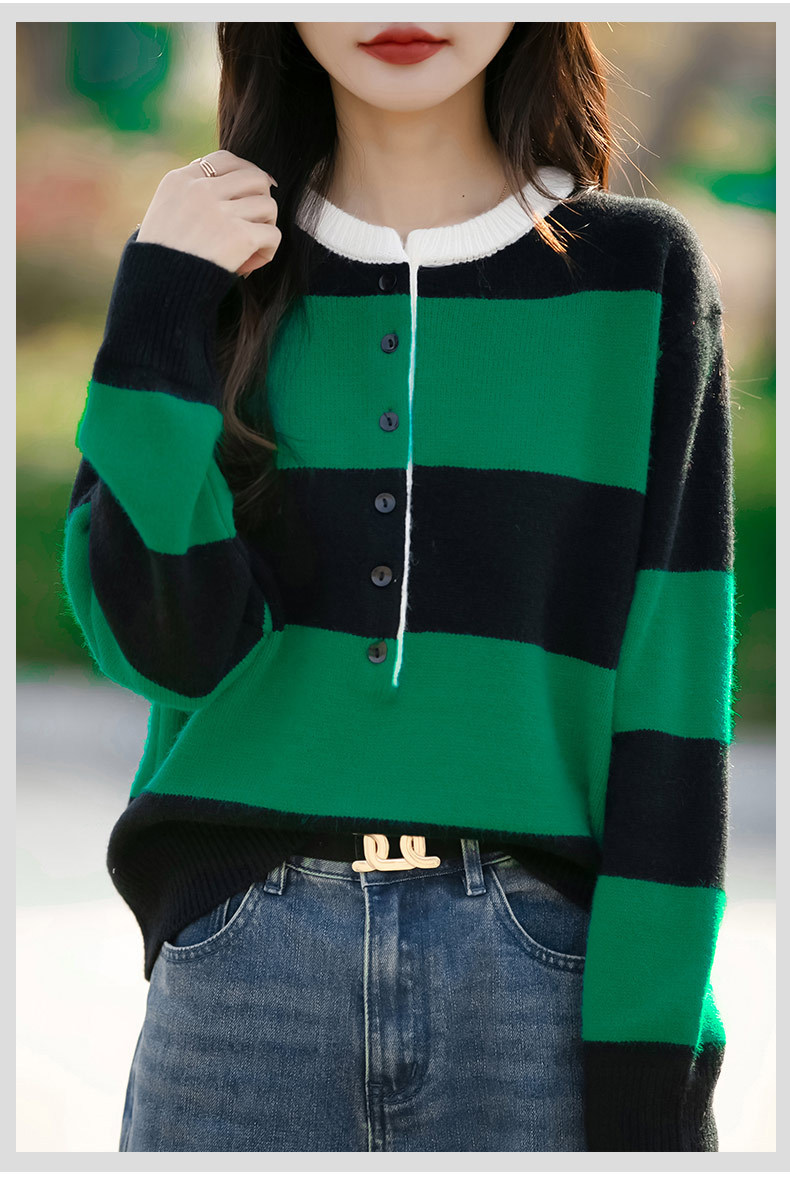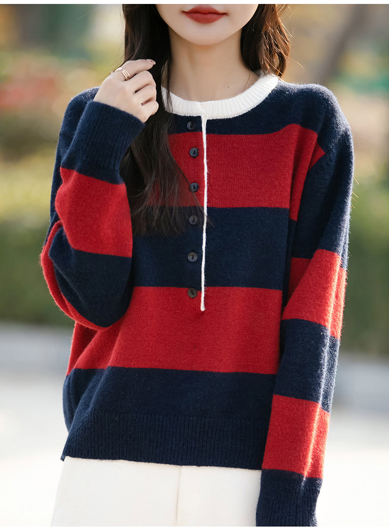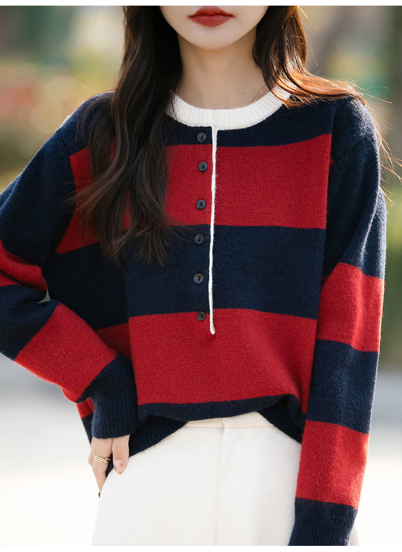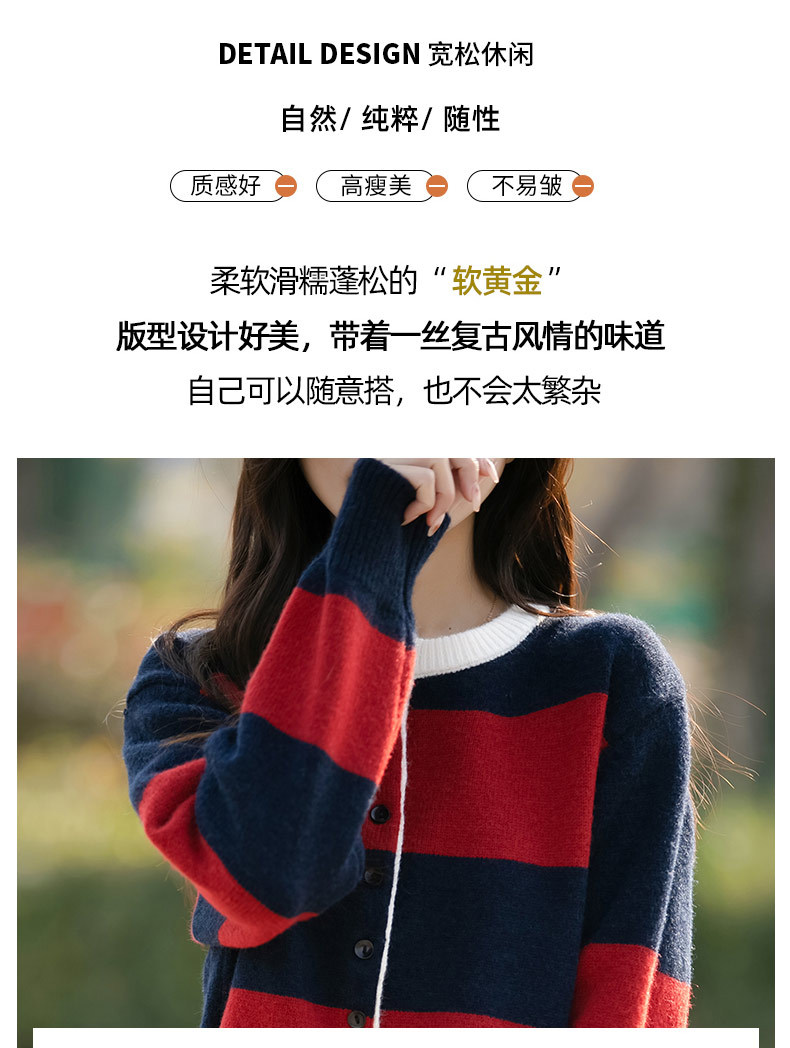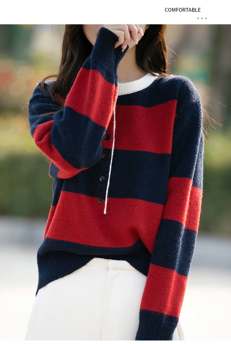 QHJY-JY8188新款条纹半开襟长袖针织衫上衣圆领安迪绒打底毛衣大码女装