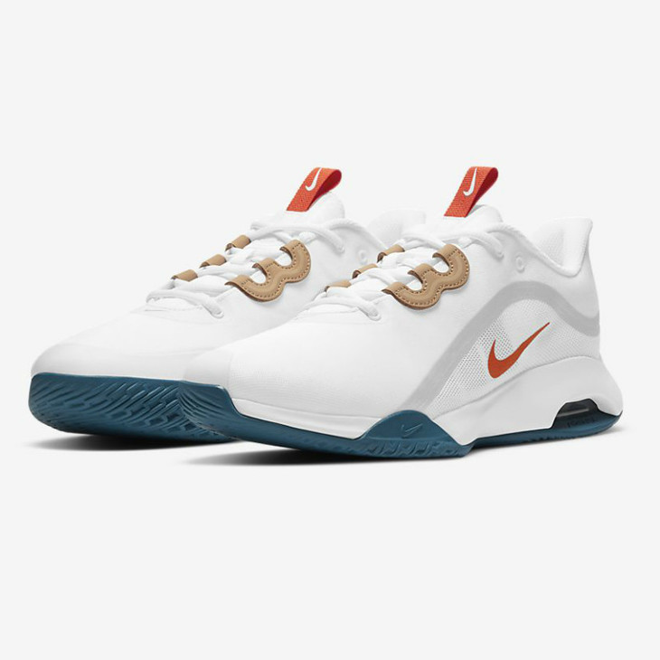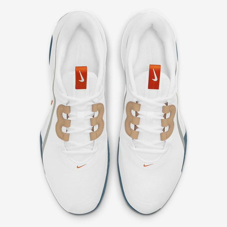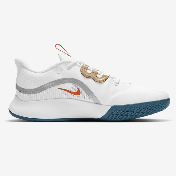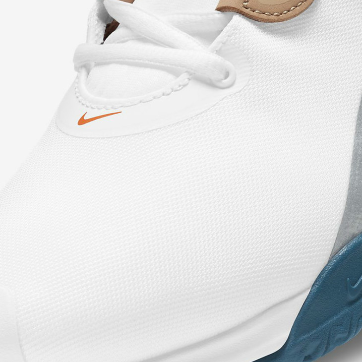 该鞋款采用弧形线条设计,模仿网球截击后的飞行球迹。弧线下方采用轻盈透气细节。弧线上方的设计则注重耐穿性和稳定性。