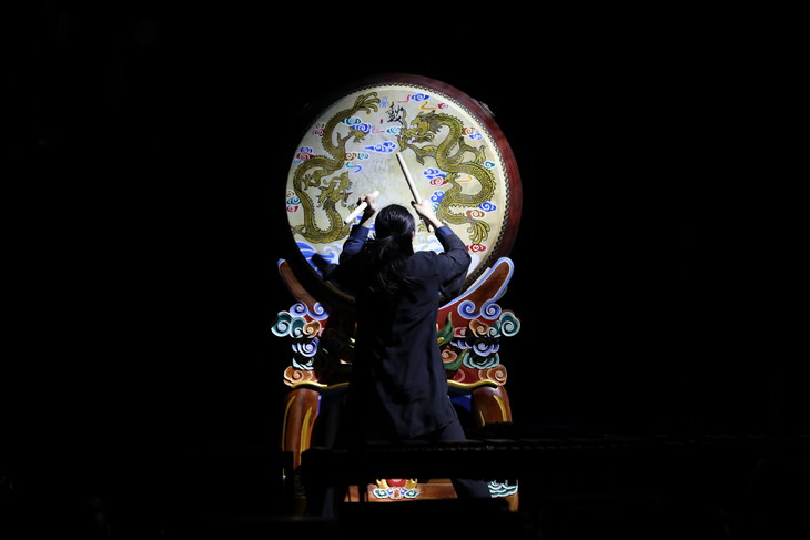 打击乐的演奏者王佳男用音符与旋律,