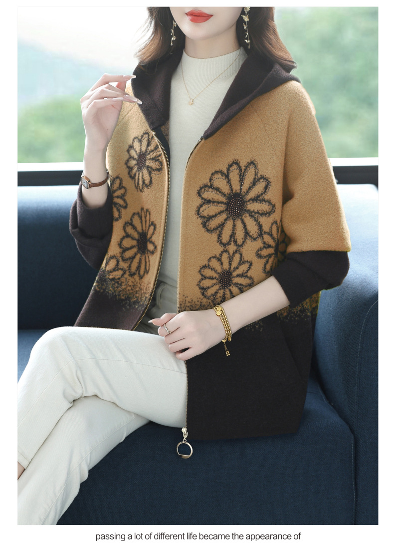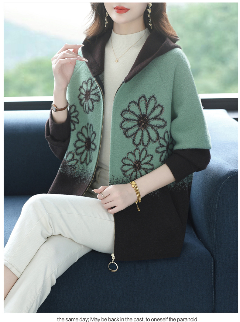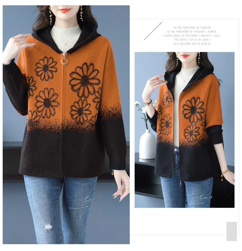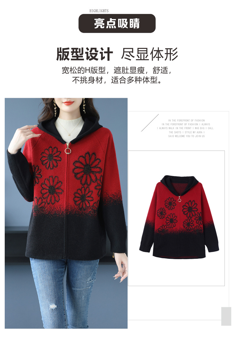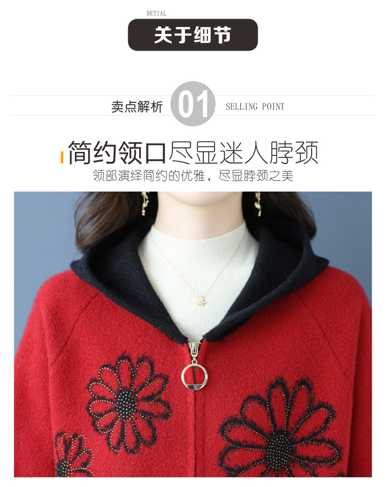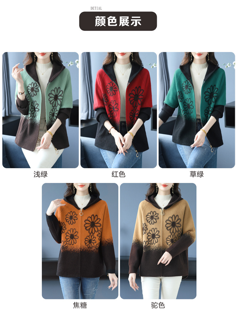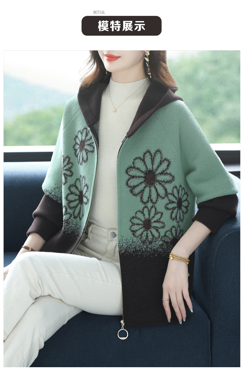 YY-2727-218大码中老年女装毛呢外套2025新款秋冬装时尚妈妈连帽开衫遮肚子