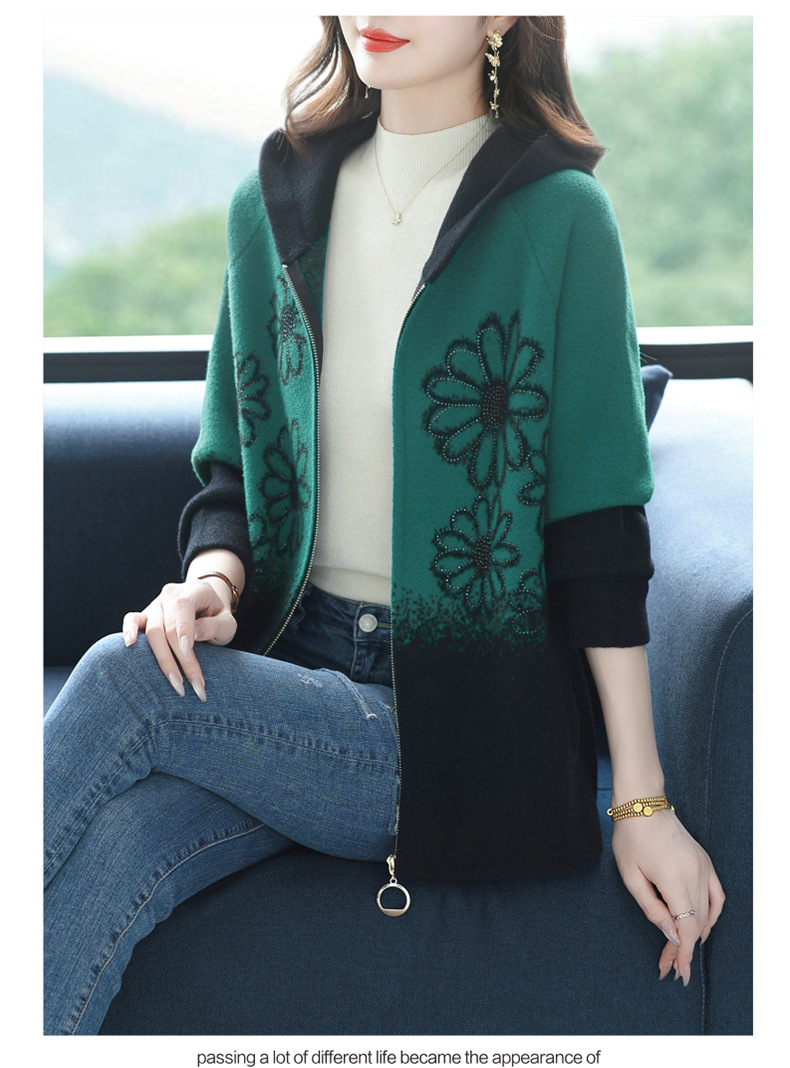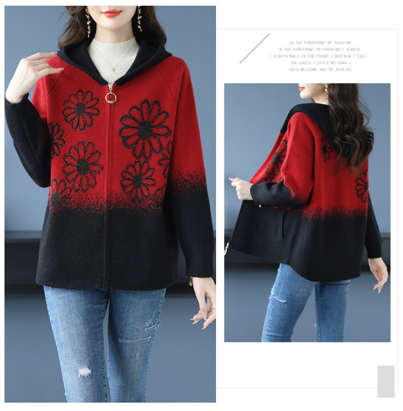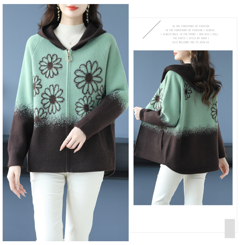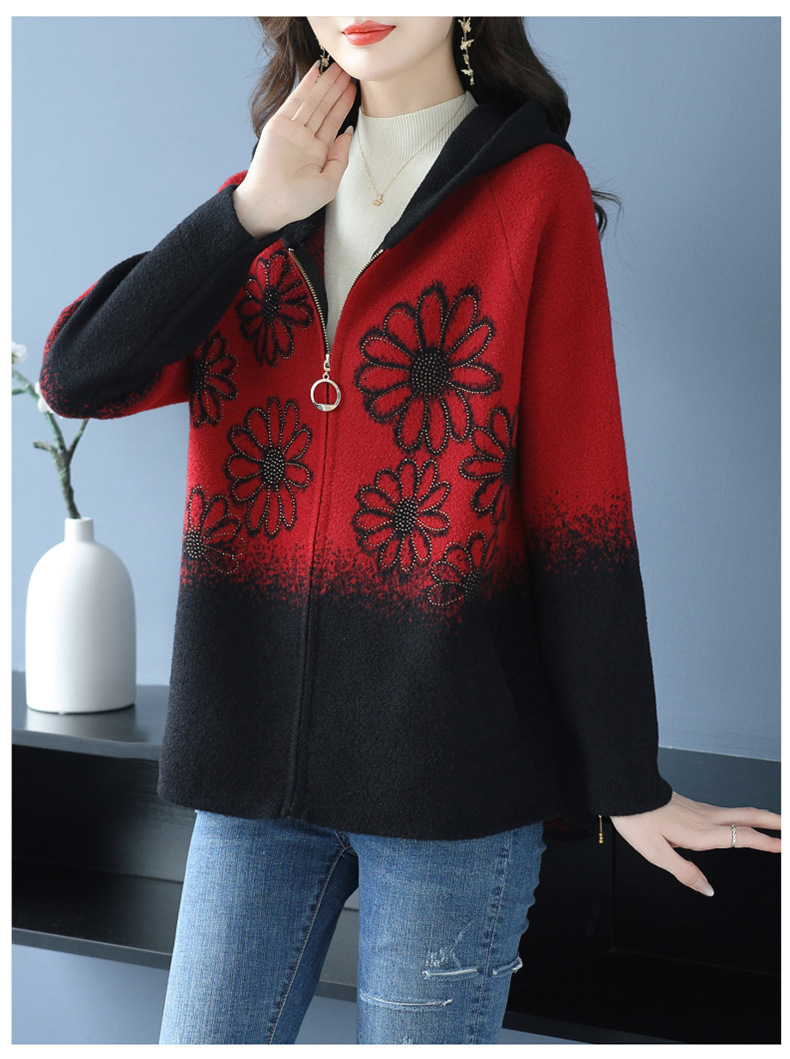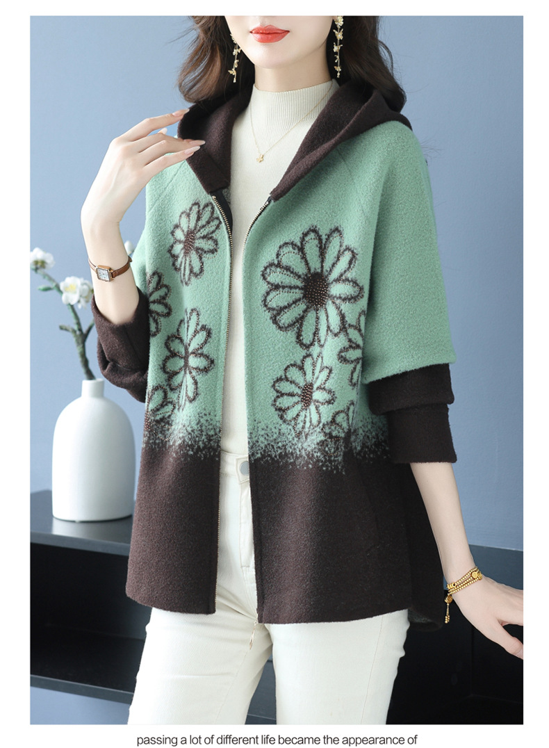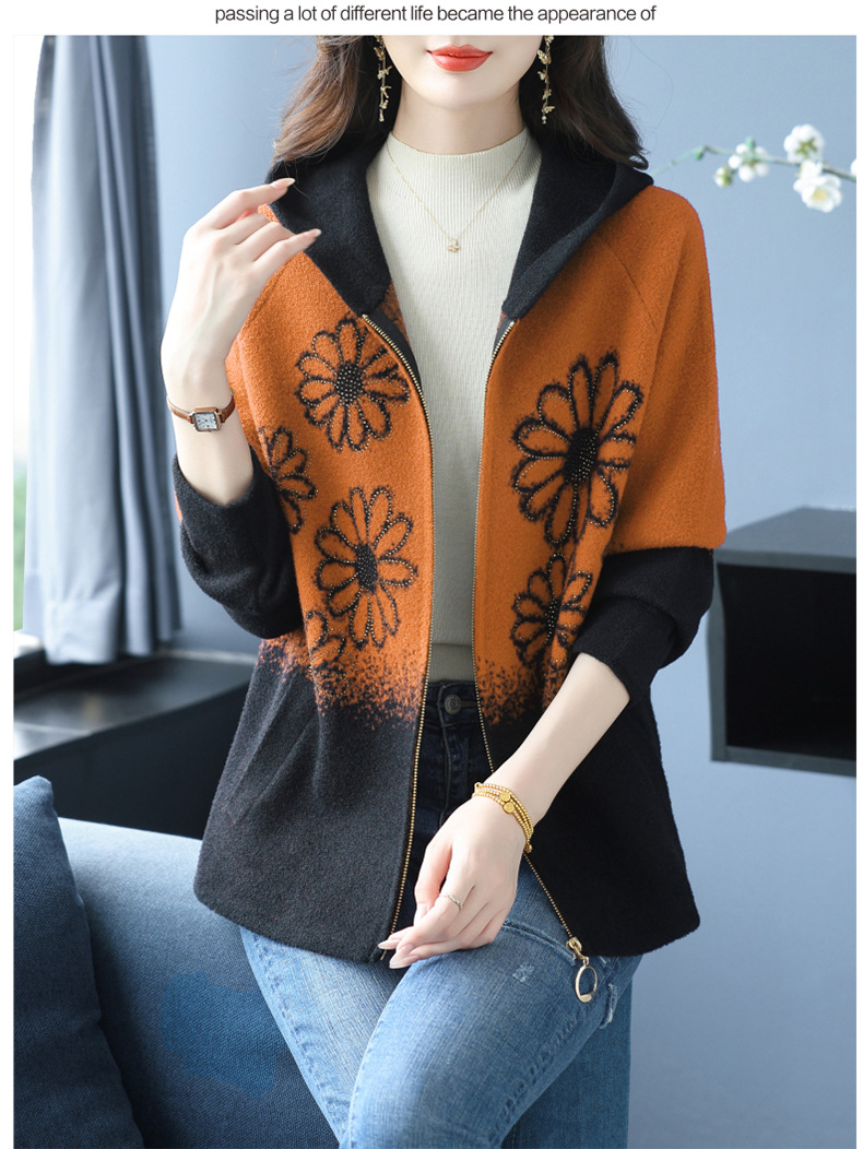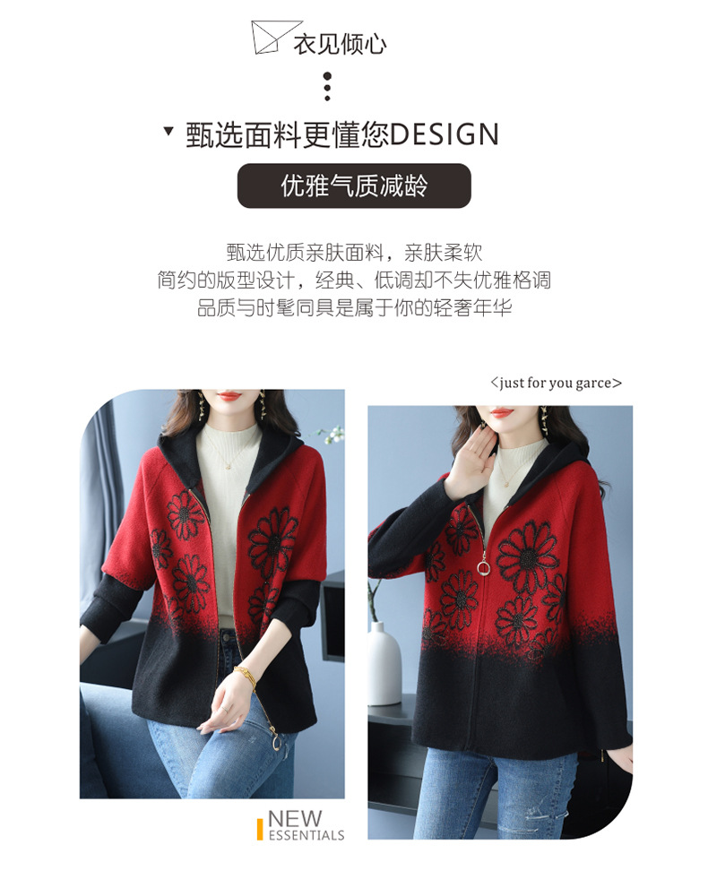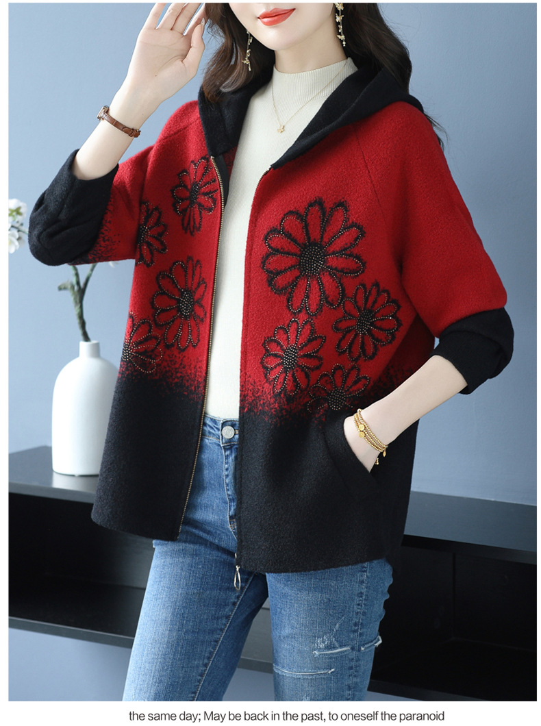 YY-2727-218大码中老年女装毛呢外套2025新款秋冬装时尚妈妈连帽开衫遮肚子