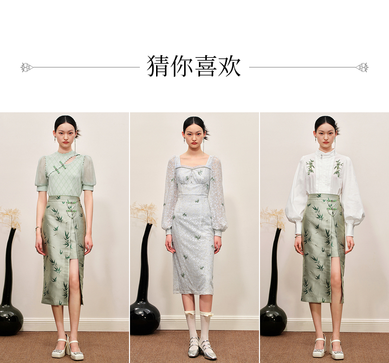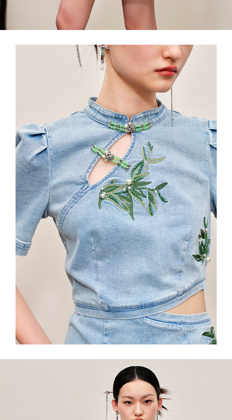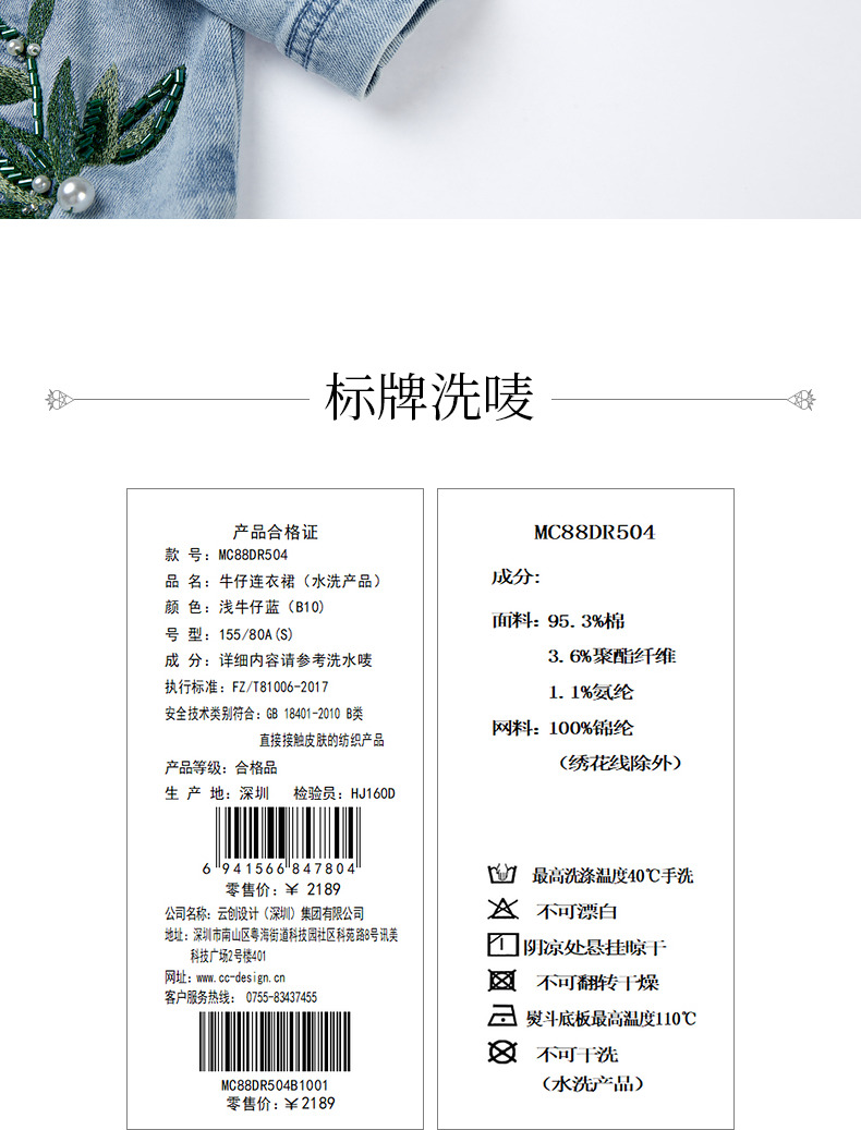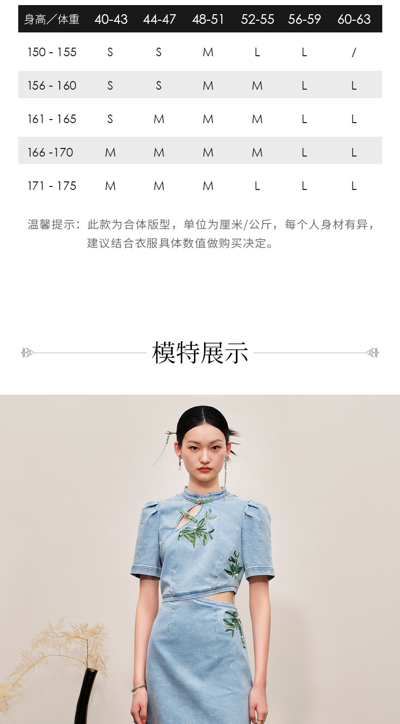 MAXRIENY新中式竹叶提花镂空牛仔连衣裙(货号:MC88DR504)