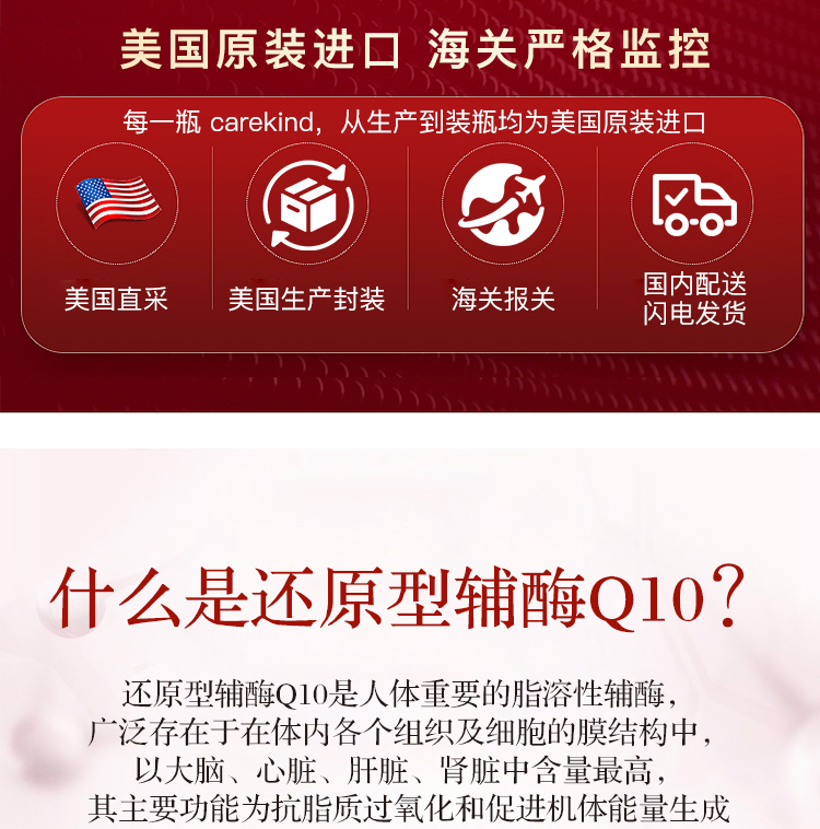 美国原装进口CareKind 辅酶Q10复合片 60粒/瓶