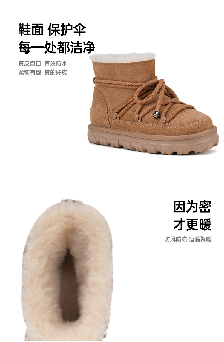 【梅花出品】帕奢利中帮系带羊皮毛一体雪地靴HZ0024P