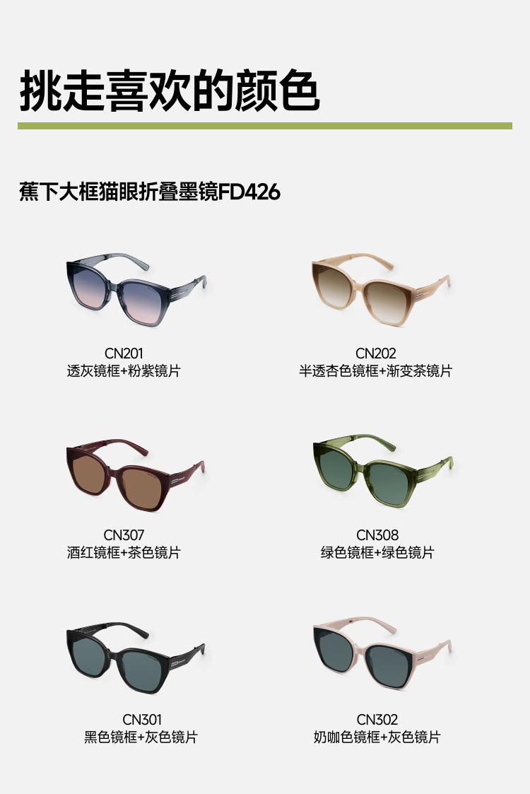 【25年新品】蕉下大框猫眼折叠墨镜FD426