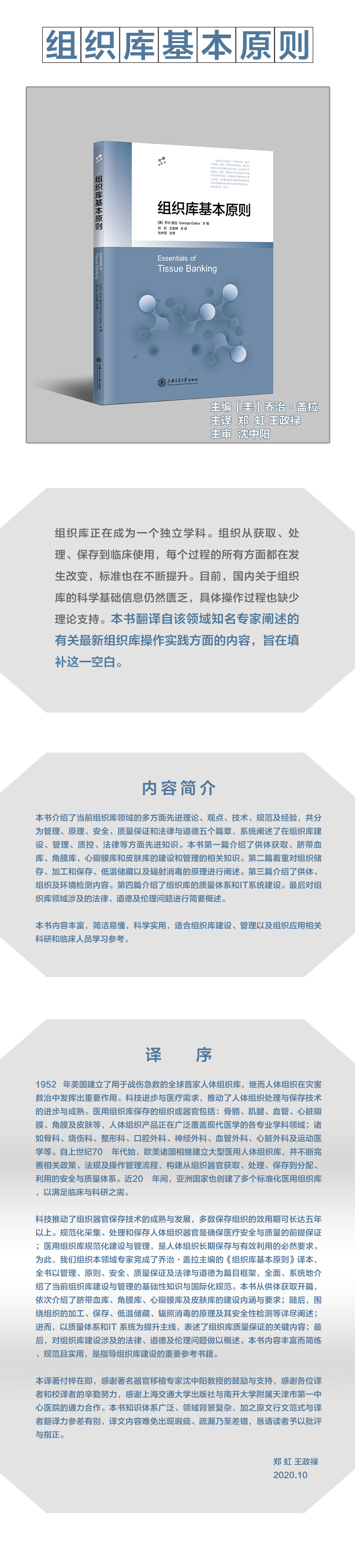 组织库基本原则 9787313234926 乔治·盖拉 郑虹 王政禄 沈中阳 组织移植 移植准则