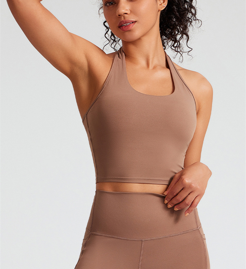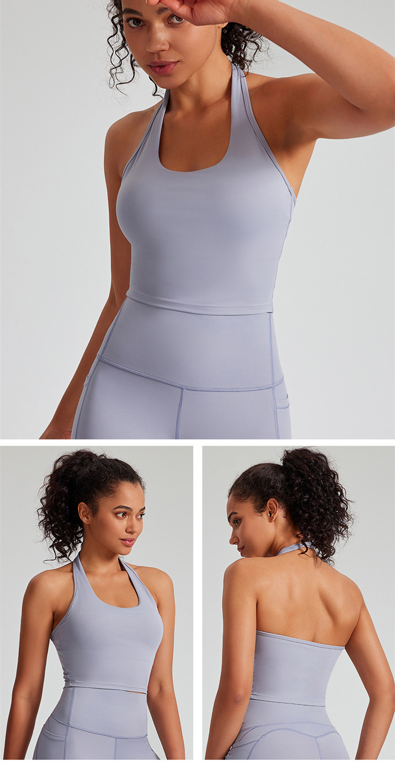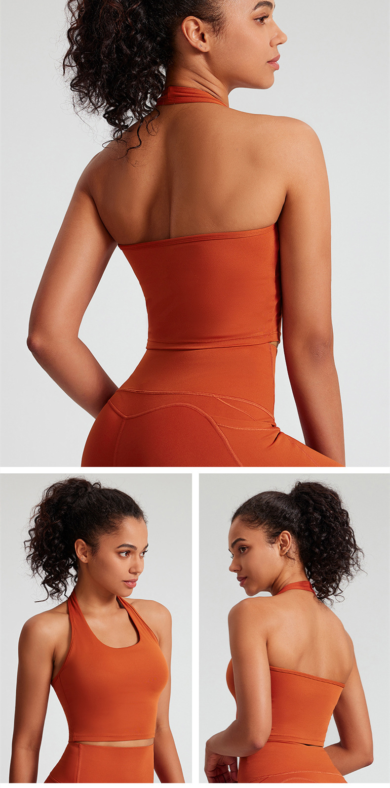 跃牌【轻匀系列】强支撑挂脖美背瑜伽健身露脐背心60056